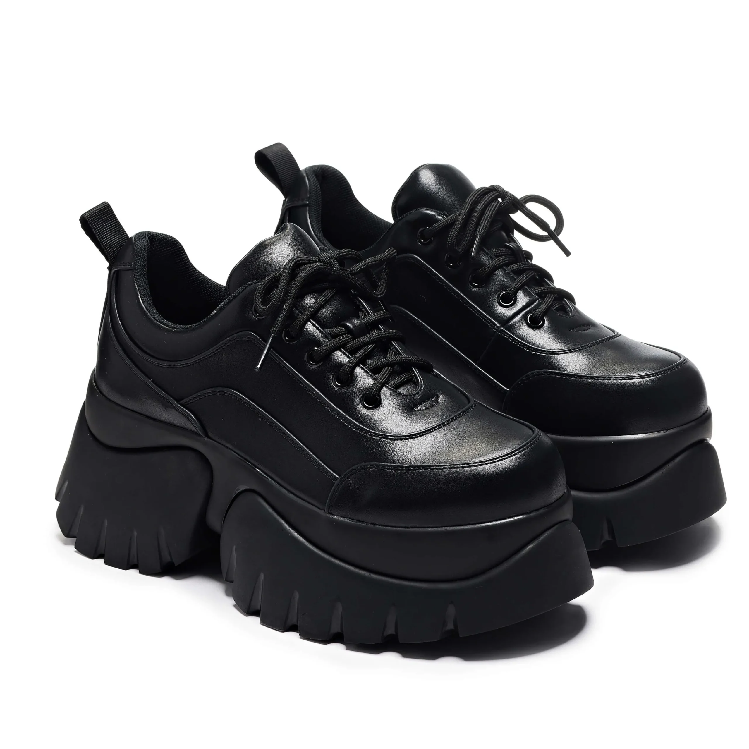 Every wardrobe needs the perfect all black trainers – so why not go all-out and try KOI’s chunky platform sneaker? These women’s trainers are all black and have cushioned comfort due to the soft vegan leather, to keep you comfy and protected all day long, even in the summer showers. These chunky trainers feature intricate stitching, too. Take the world by storm – lace up and get ready to go!