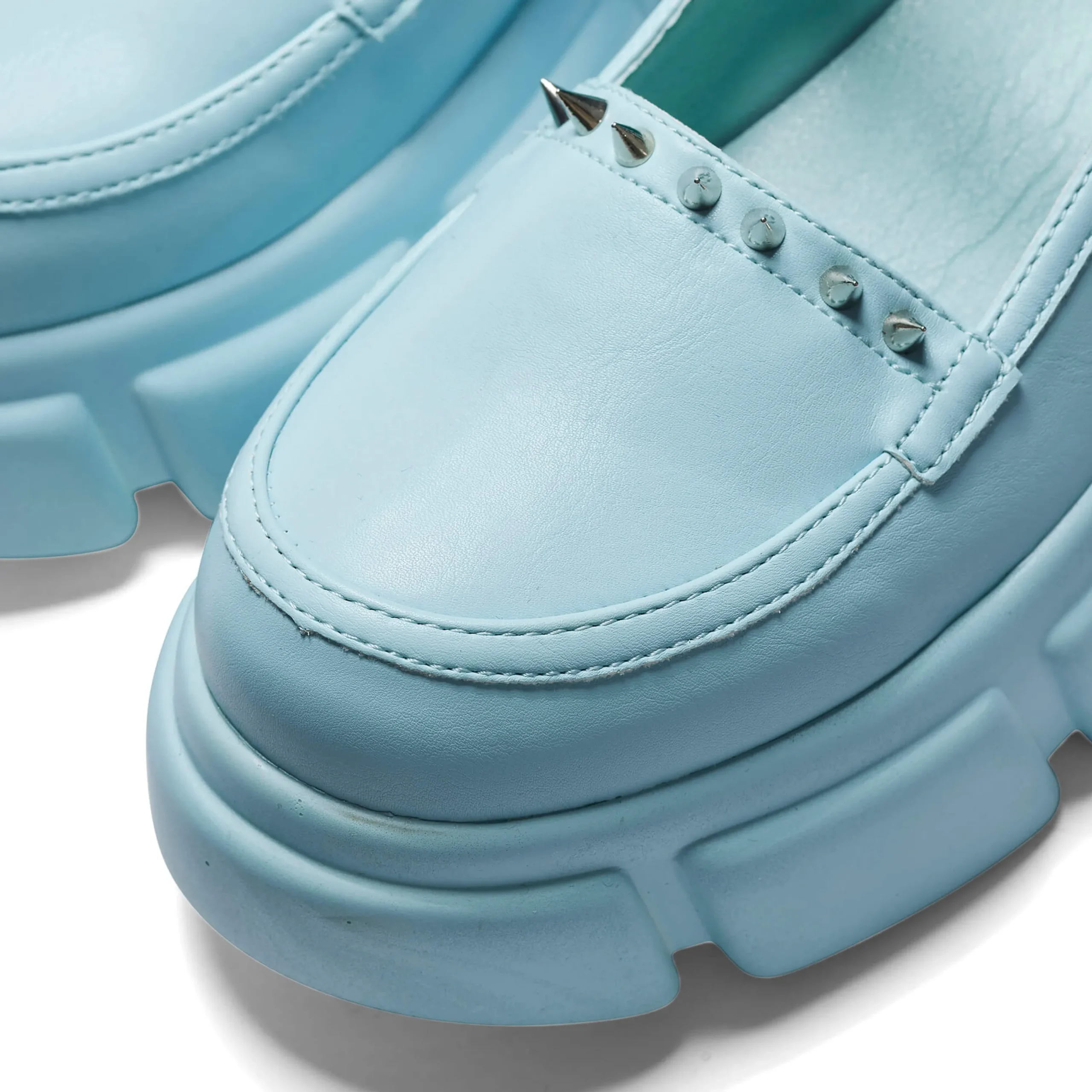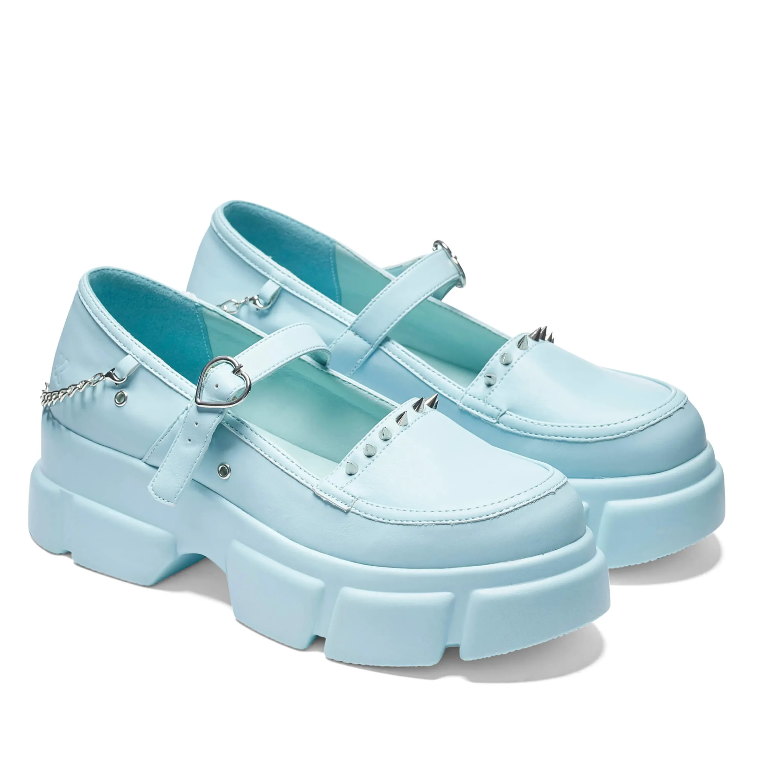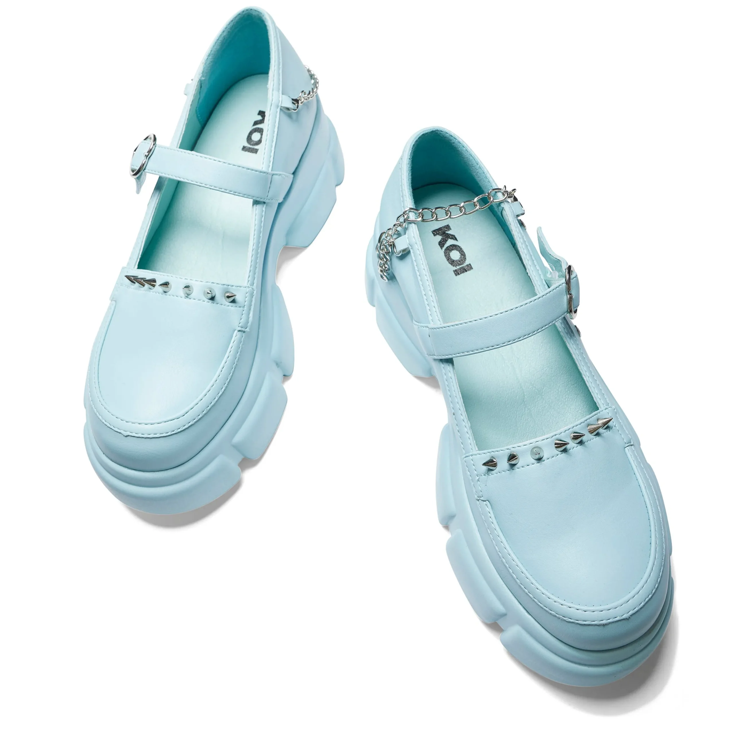 Elevate your shoe game with our Cloud Mist Chunky Shoes in Baby Blue. The chunky platform provides stability and style, while the chains and spikes add an edgy touch. Embrace the kawaii trend with these statement shoes.