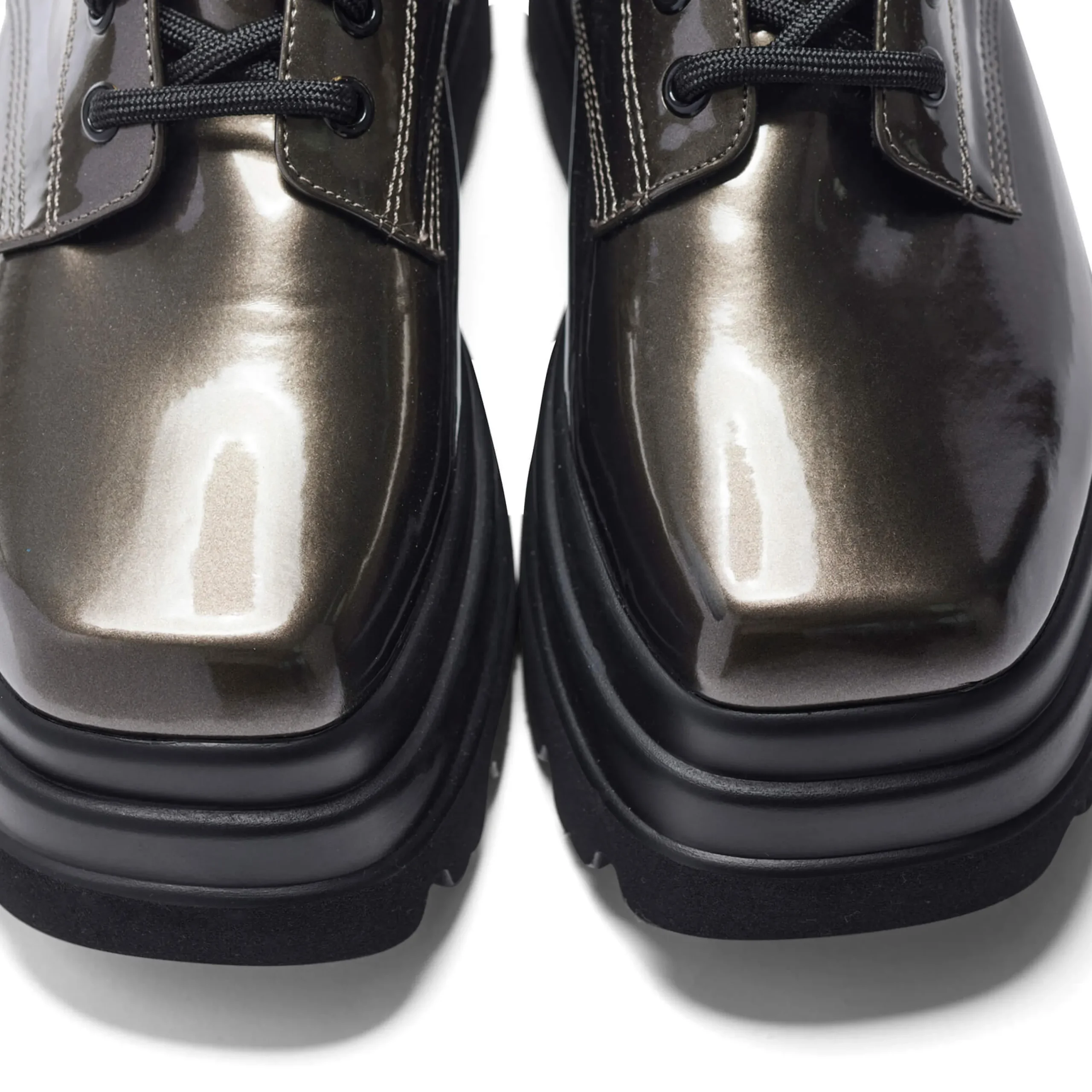 Elevate your style with Deathwatch Trident Platform Boots! These ankle boots feature a chunky platform for added height and a metallic finish for a touch of shine. Lace them up for a secure fit and make a bold statement wherever you go.