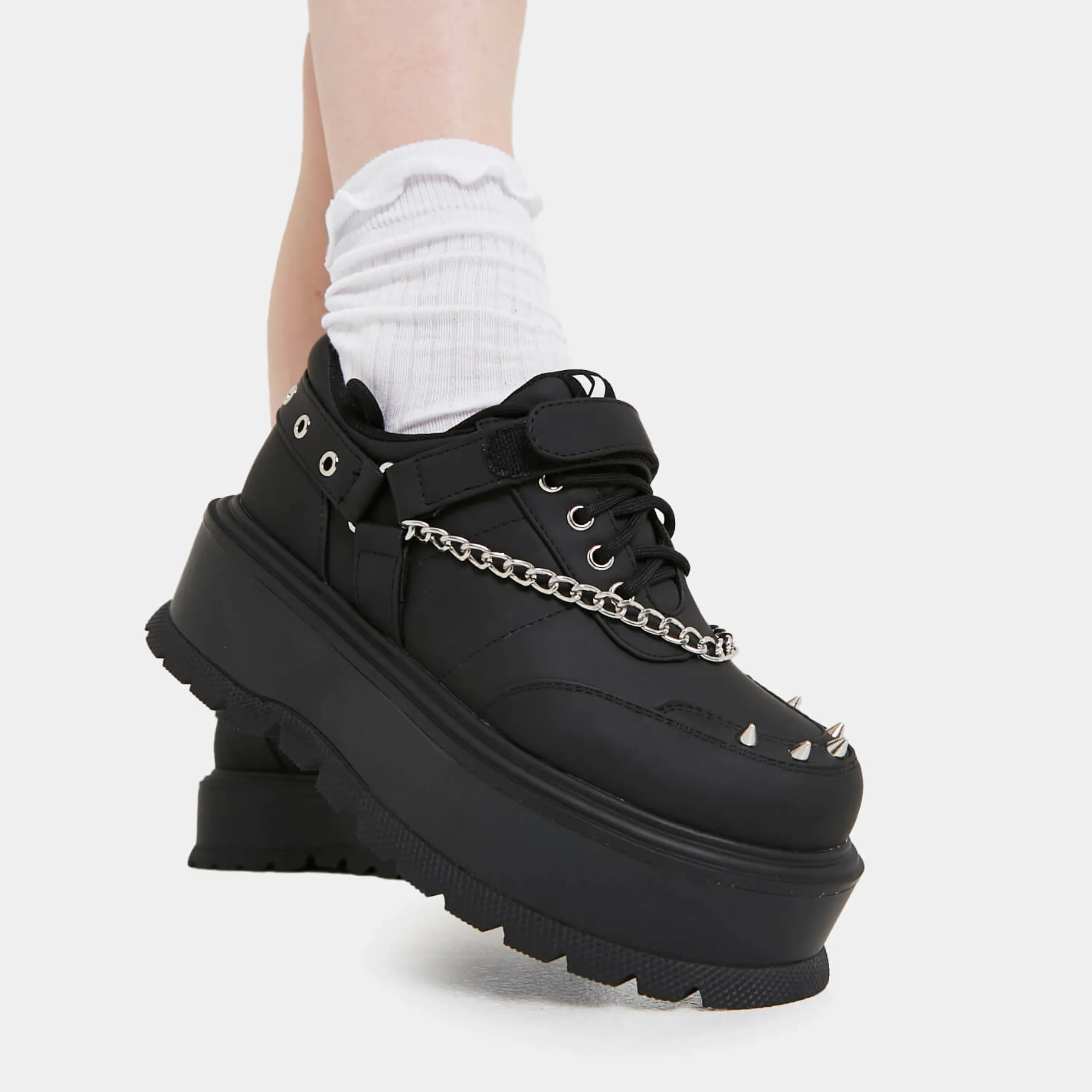 This is one for the goths and the punks. Koi Footwear will never let you down when it comes to added details, which is why we’ve created this all-black vegan leather 2-inch platform with a chain, ankle strap, velcro strap and lace-up features. It’s time to rebel – so get inspired and live a little – the first step is figuring out which rules you want to break (after getting these chunky shoes for women, of course).