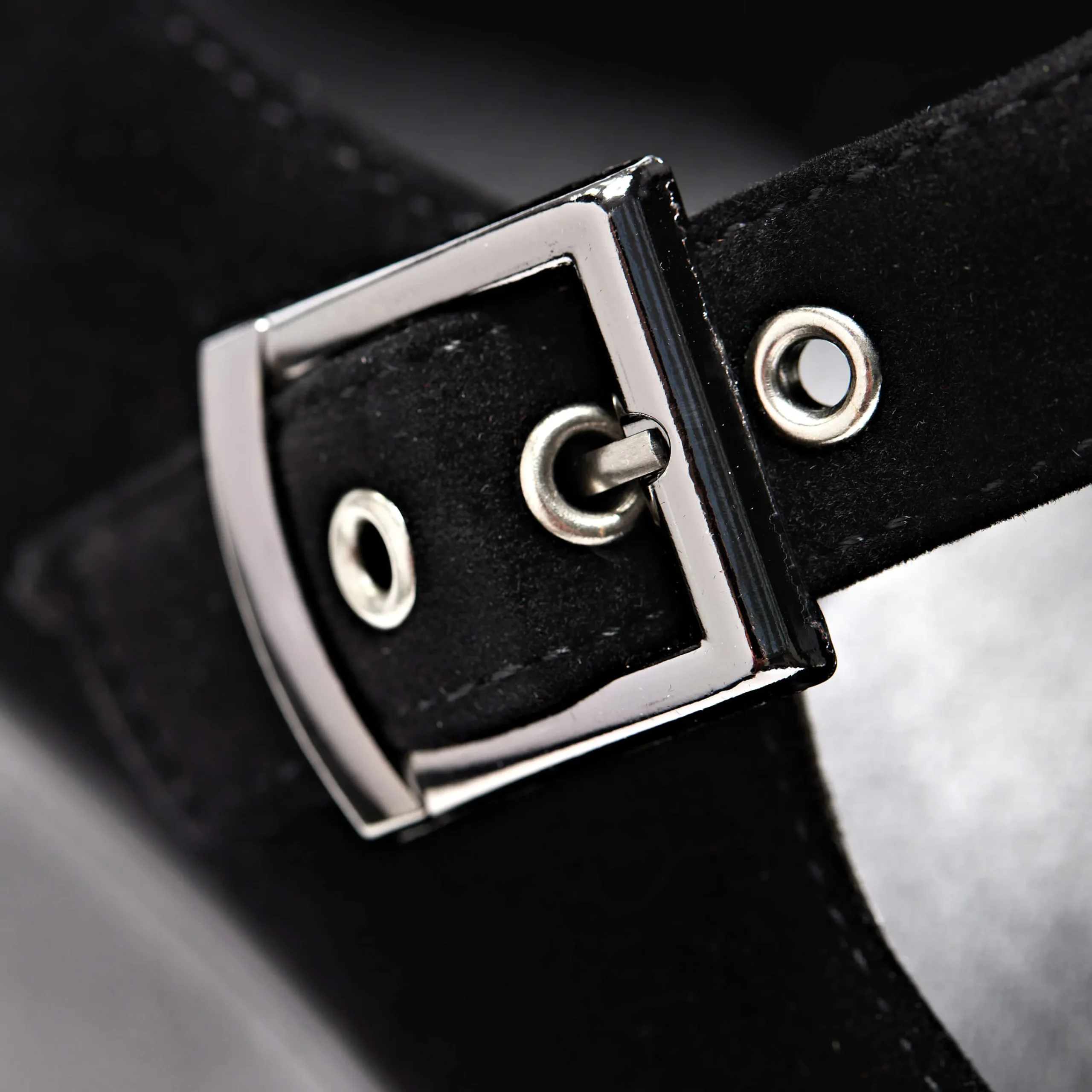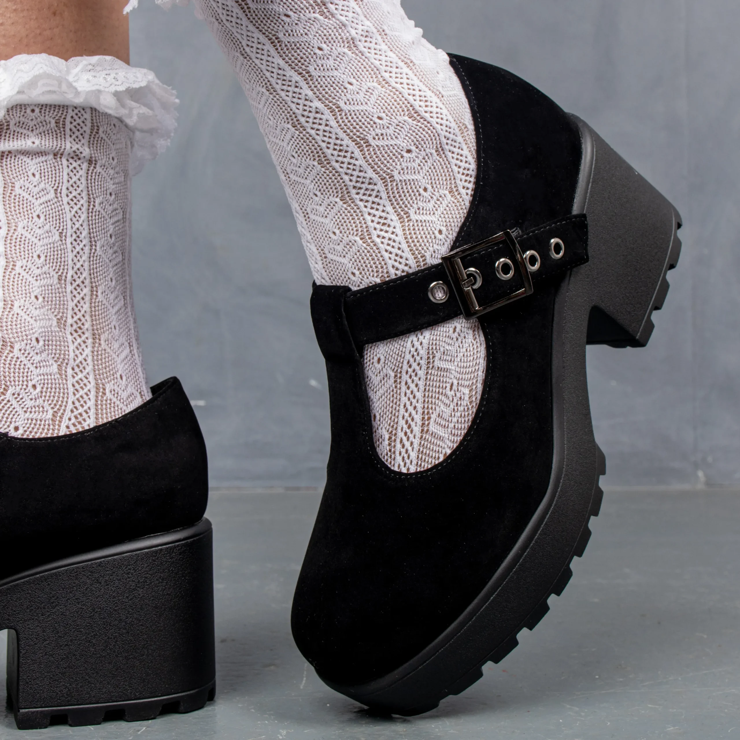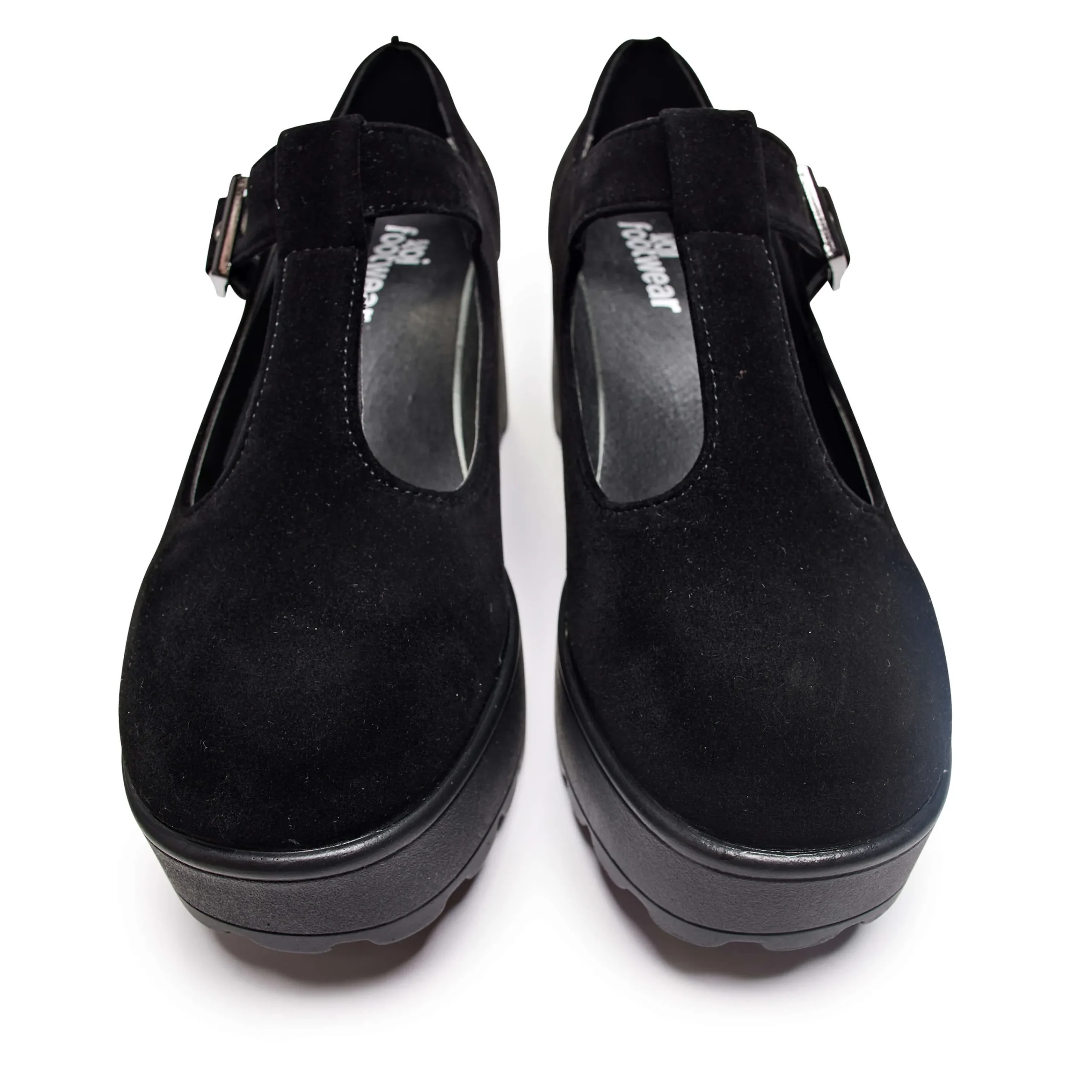 These Vegan Black Suede T-Bar Chunky Platform Mary Janes are made from a velvety smooth faux suede offering a sleek matte finish. The insole is padded throughout, matched with PU lining make these a pair you can wear comfortably all day.