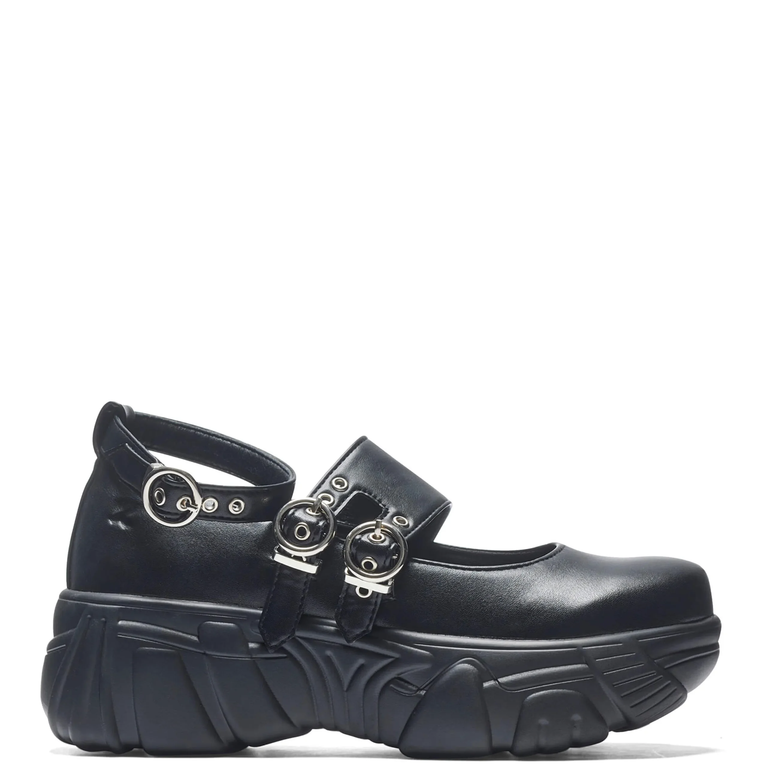 The Seraphon Mystic Buckle Chunky Shoes offer a bold yet refined look with their chunky platform and sleek buckles. Crafted from vegan leather, these black shoes are perfect for those looking for cruelty-free and fashion-forward options. Elevate your style with these statement-making shoes.