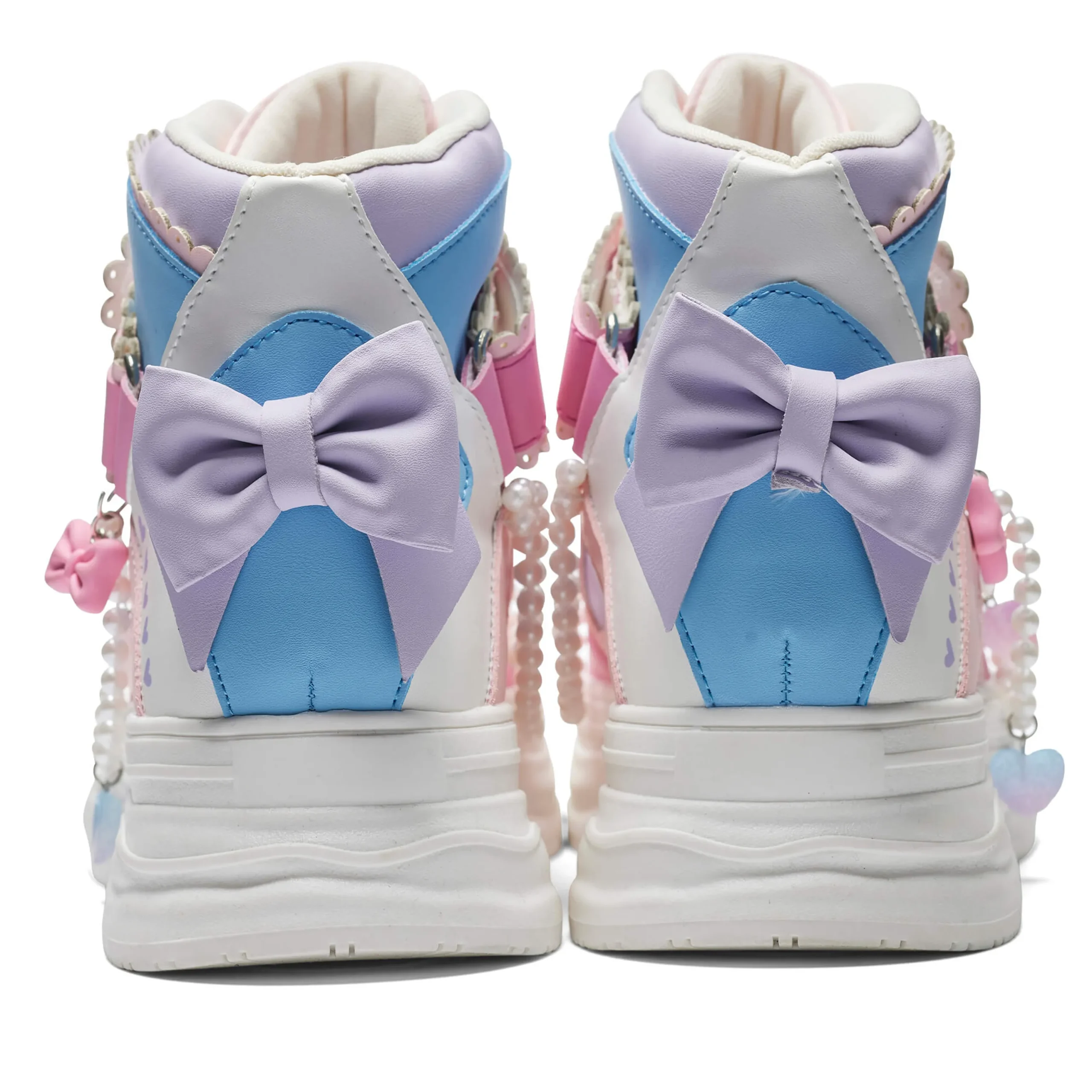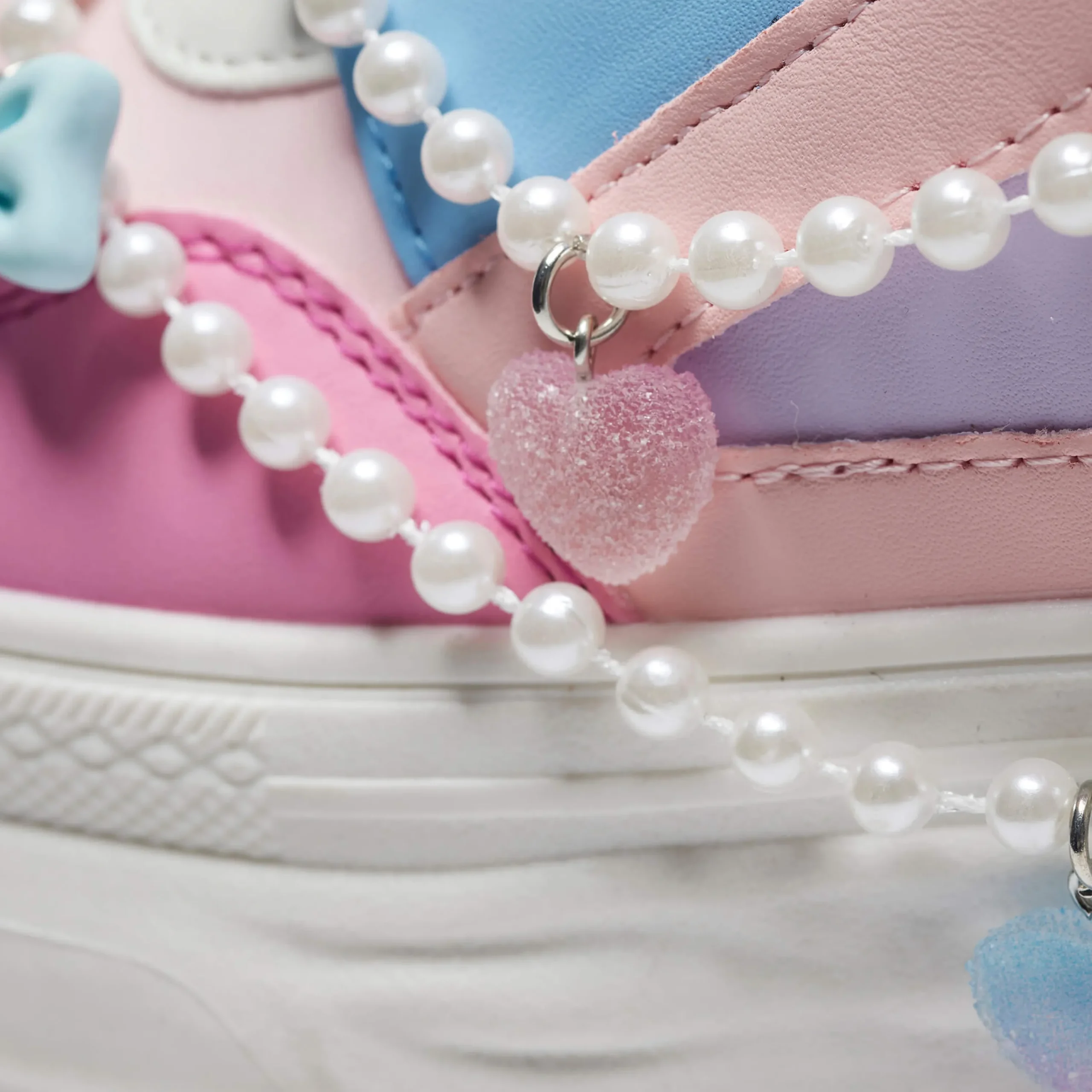 Introducing the Sugar Wishes Chunky Hi Top Trainers, these shoes channel your inner Harajuku princess! These are all about kawaii vibes and living out our pastel fantasies. Look further in and you will see a set of realistic sweet charms that’ll tempt you to take a bite!