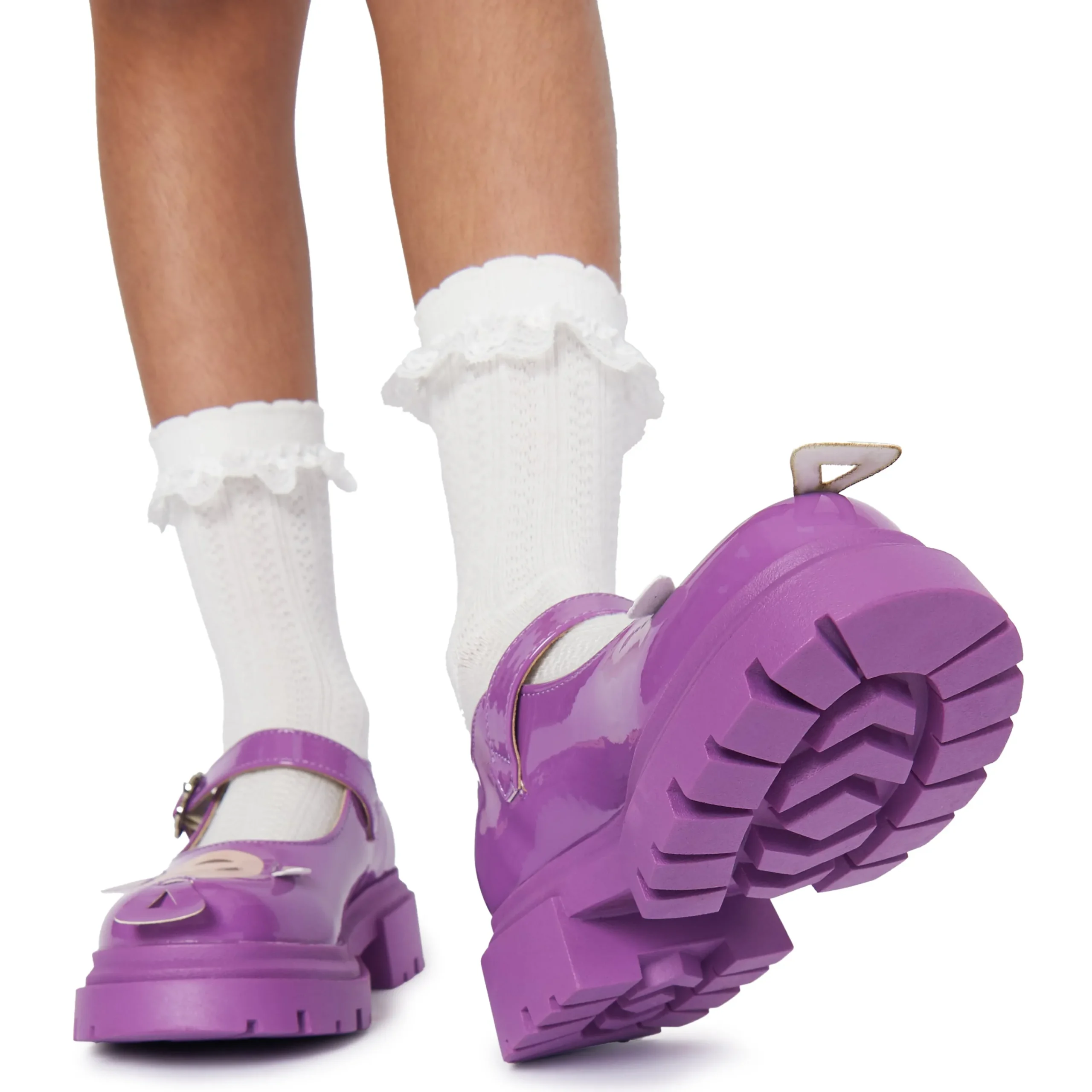 Step out in whimsical style with Tinky Winky Teletubbies Kidz Mary Janes! These playful purple shoes feature an adjustable strap for a comfortable fit and the lovable face of Tinky Winky himself. Perfect for little ones who love to have fun (and stand out).