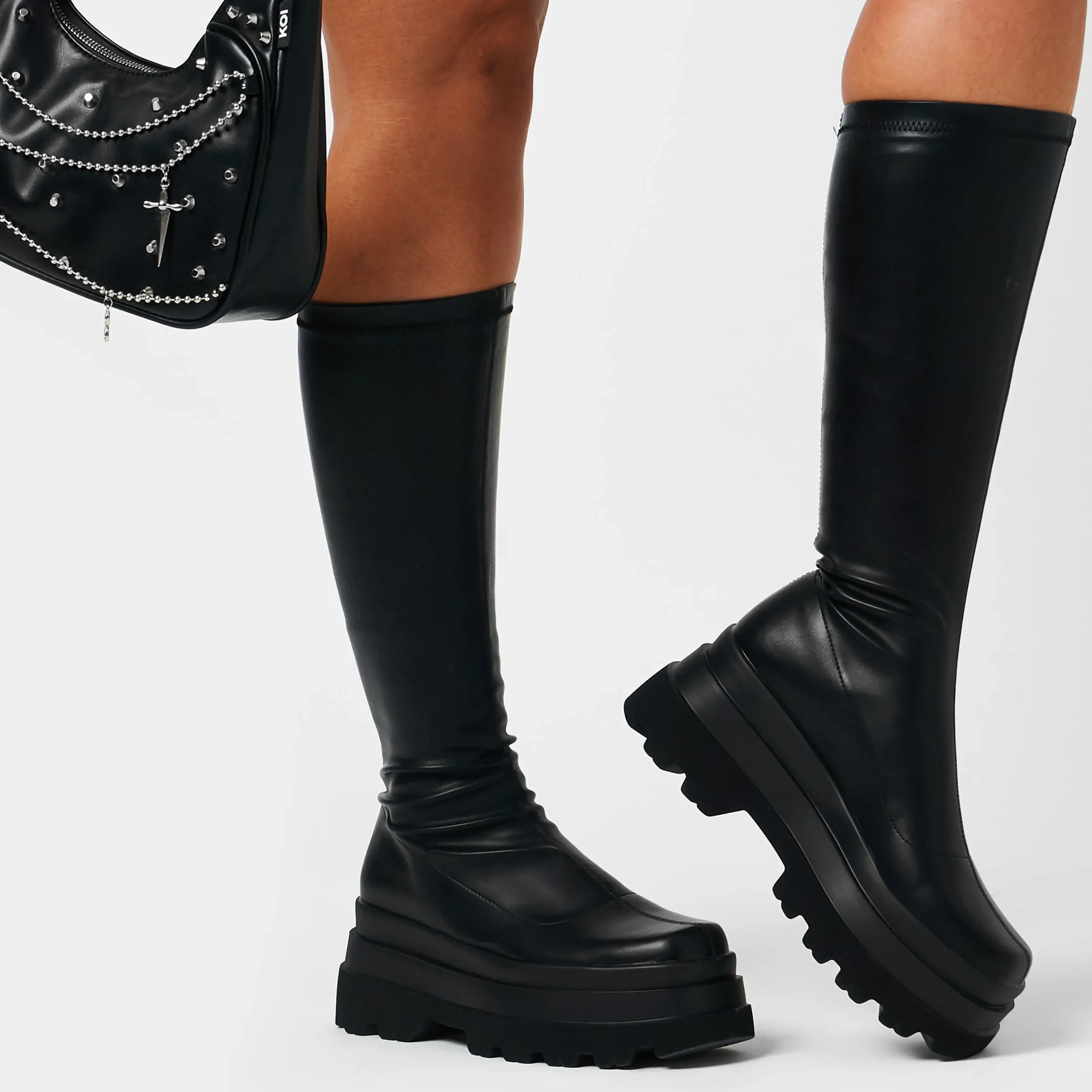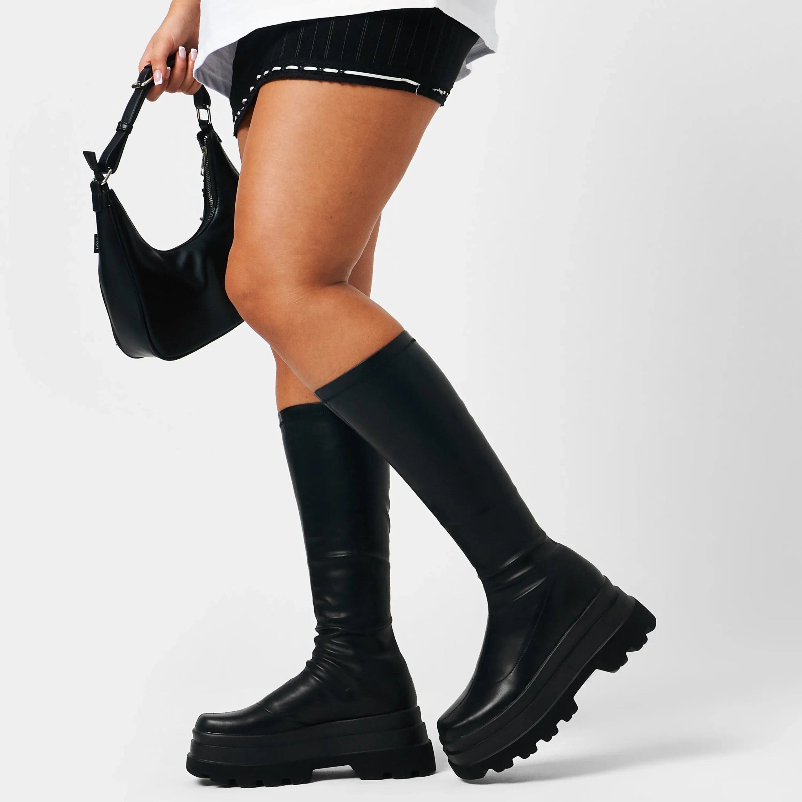 Funky punky and chunky boots have arrived just in time for the cold season! These all black vegan boots are perfect for drinks and festive outings. Pair your chunky knee high boots with a mini dress and fluffy coat for cute cosy vibes without compromising on style. Not a heels kinda person? Well, these platform boots will add height whilst giving you the comfort of flats.