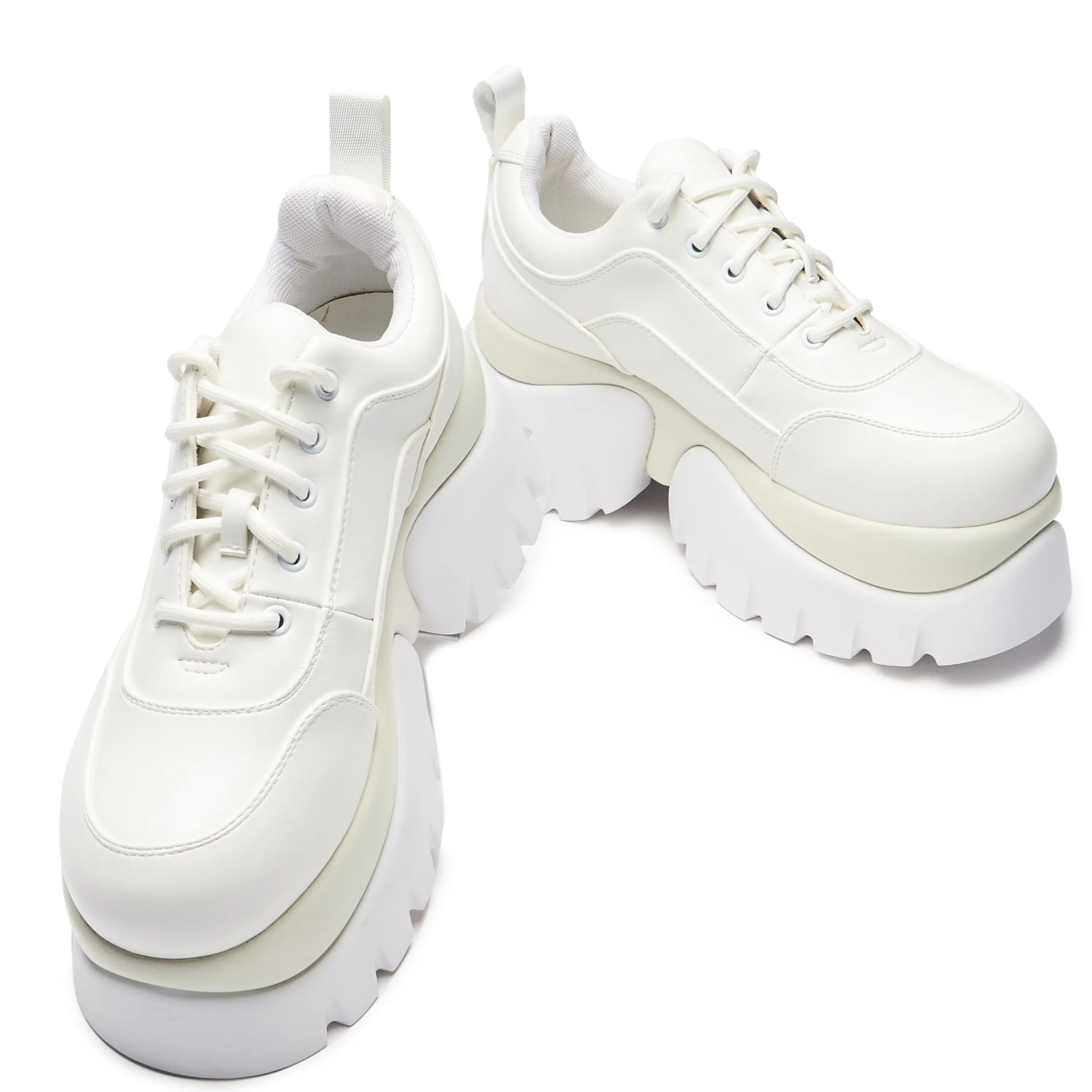 The Chronicles is our staple super chunky platform shoe, featuring a solid Rubber & PU outsole, a latex padded insole and extra cushioning around the ankle. We made these to be a platform shoe that does not compromise on comfort. You guys loved the black ones so much we have brought it out in white as well.