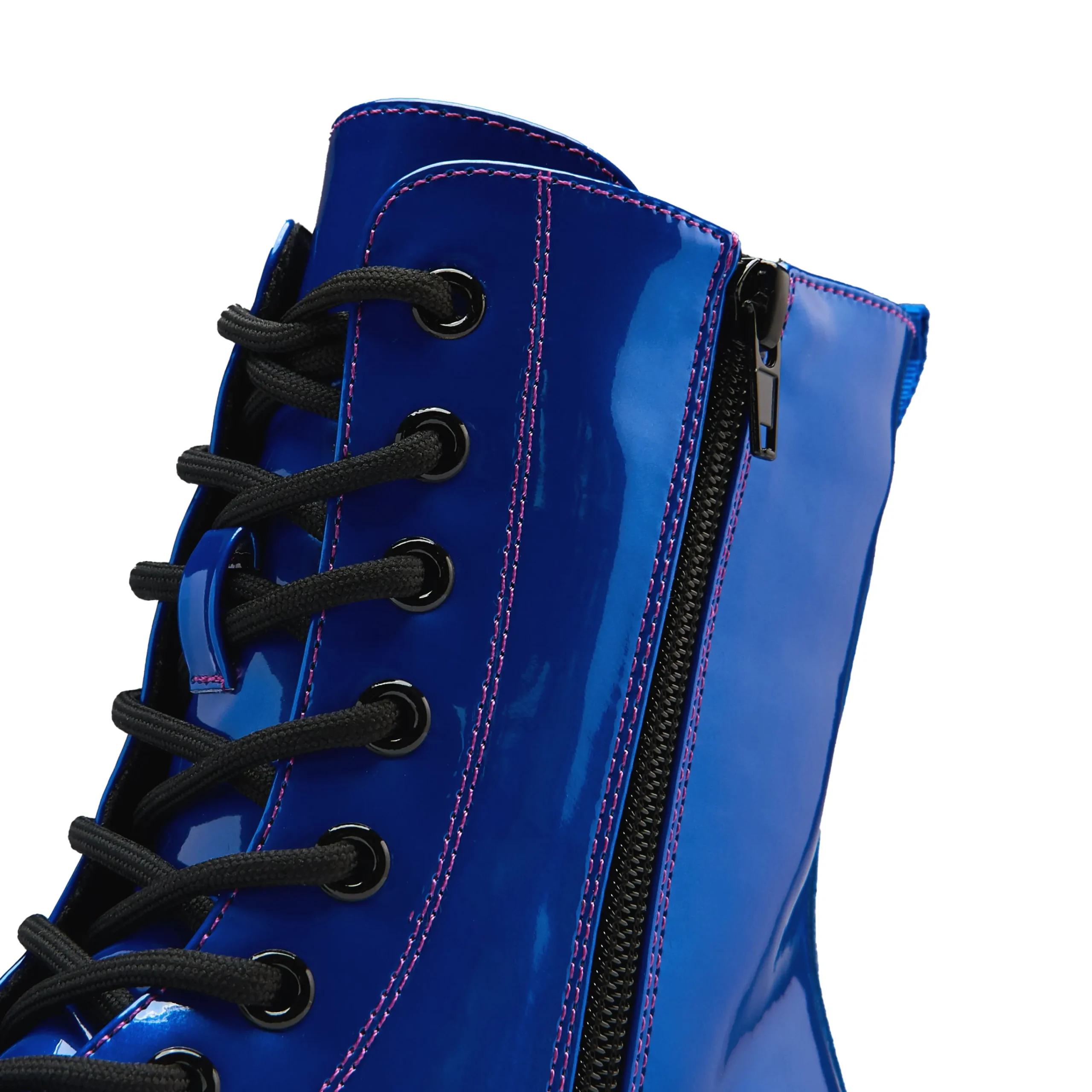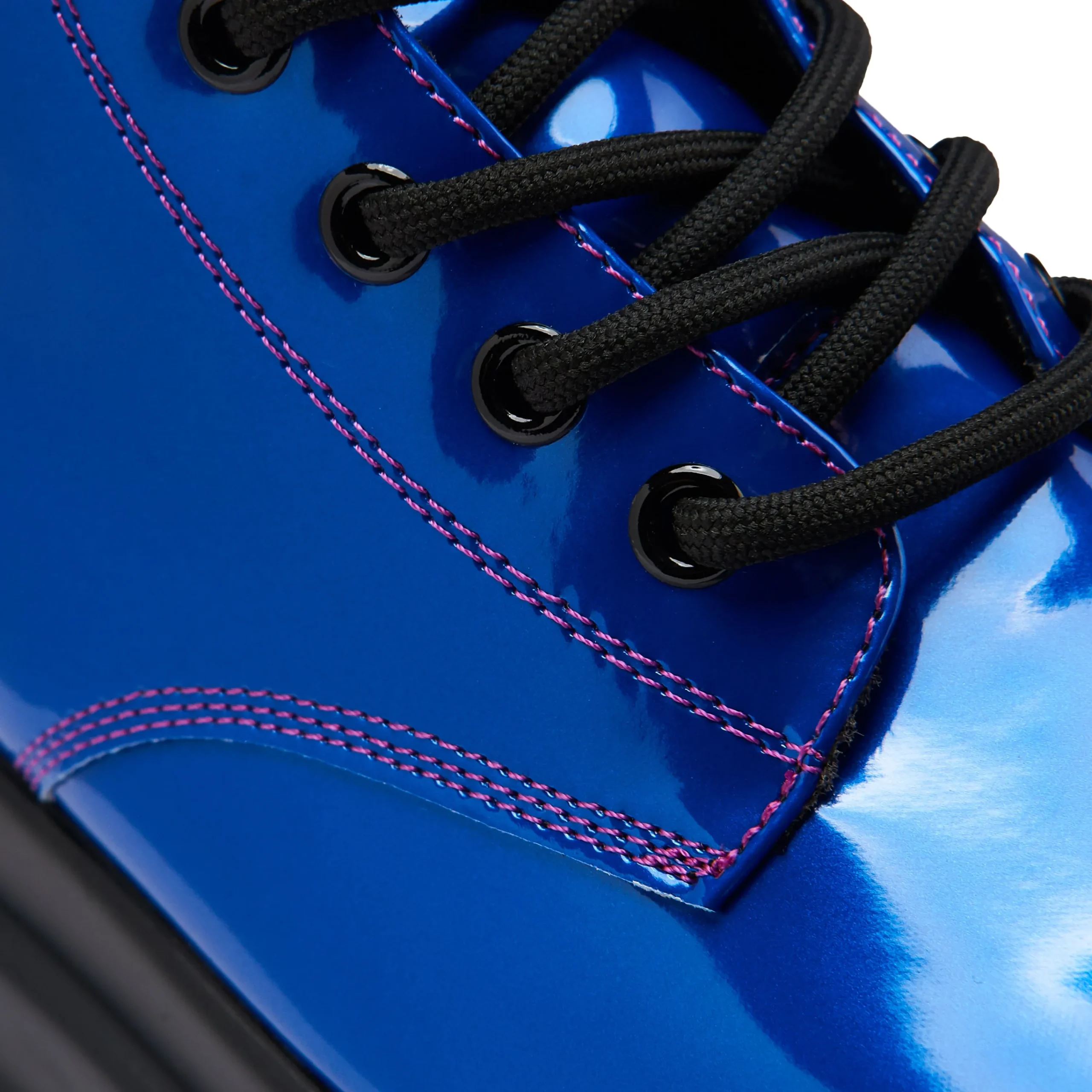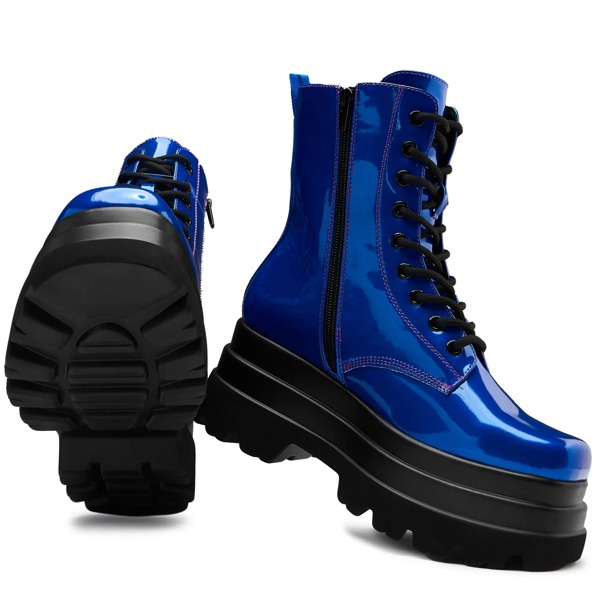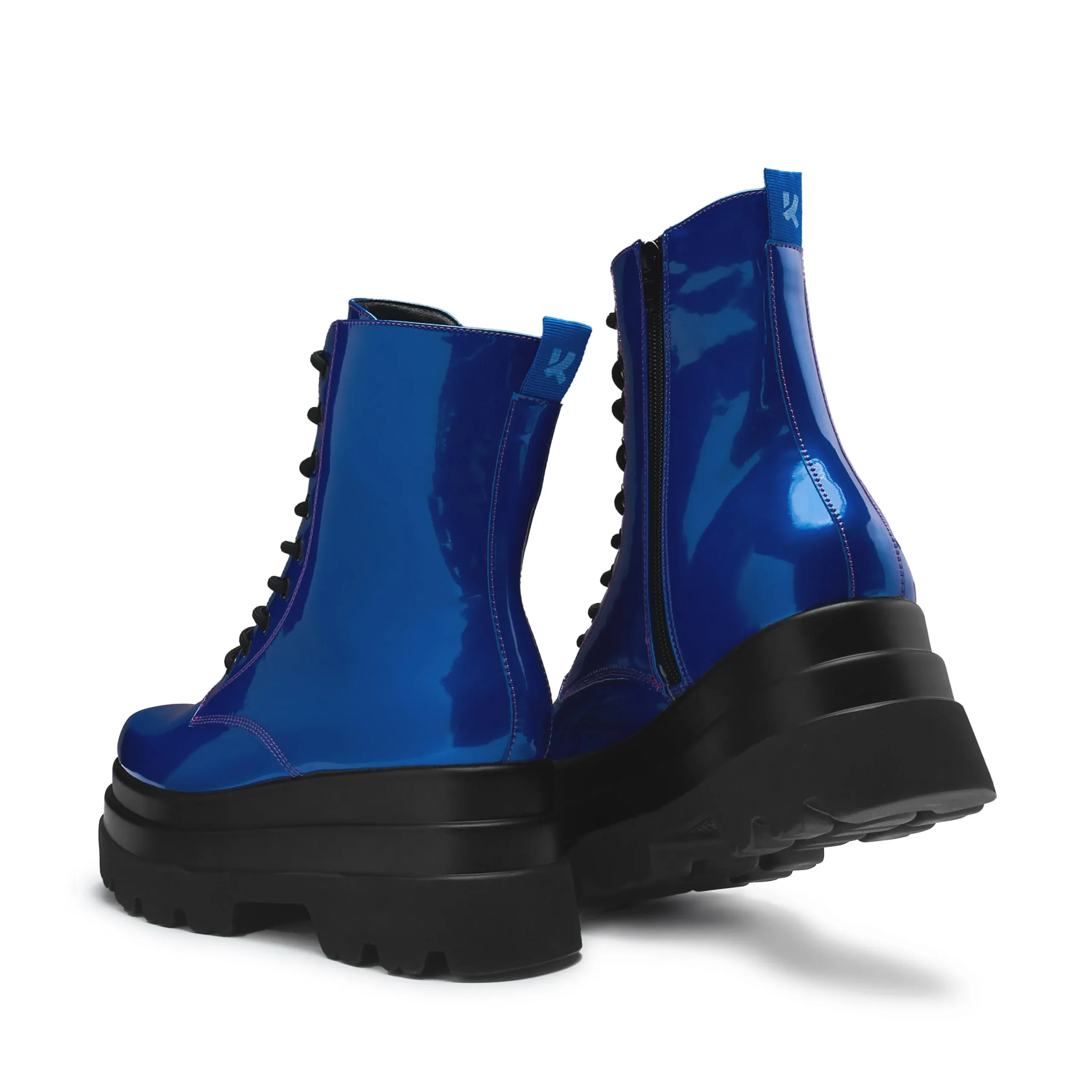 The Deathwatch boots have a mean and chunky silhouette, it’s one of our core, statement styles in all black. We created this limited edition colourway fresh for AW24, the colour here is a deep blue with a metallic sheen all the way through. This material shifts from subdued elegance to an electrifying glow, depending on how the light hits it. We experiement each season with new colourways, designed for those who refuse to blend in.