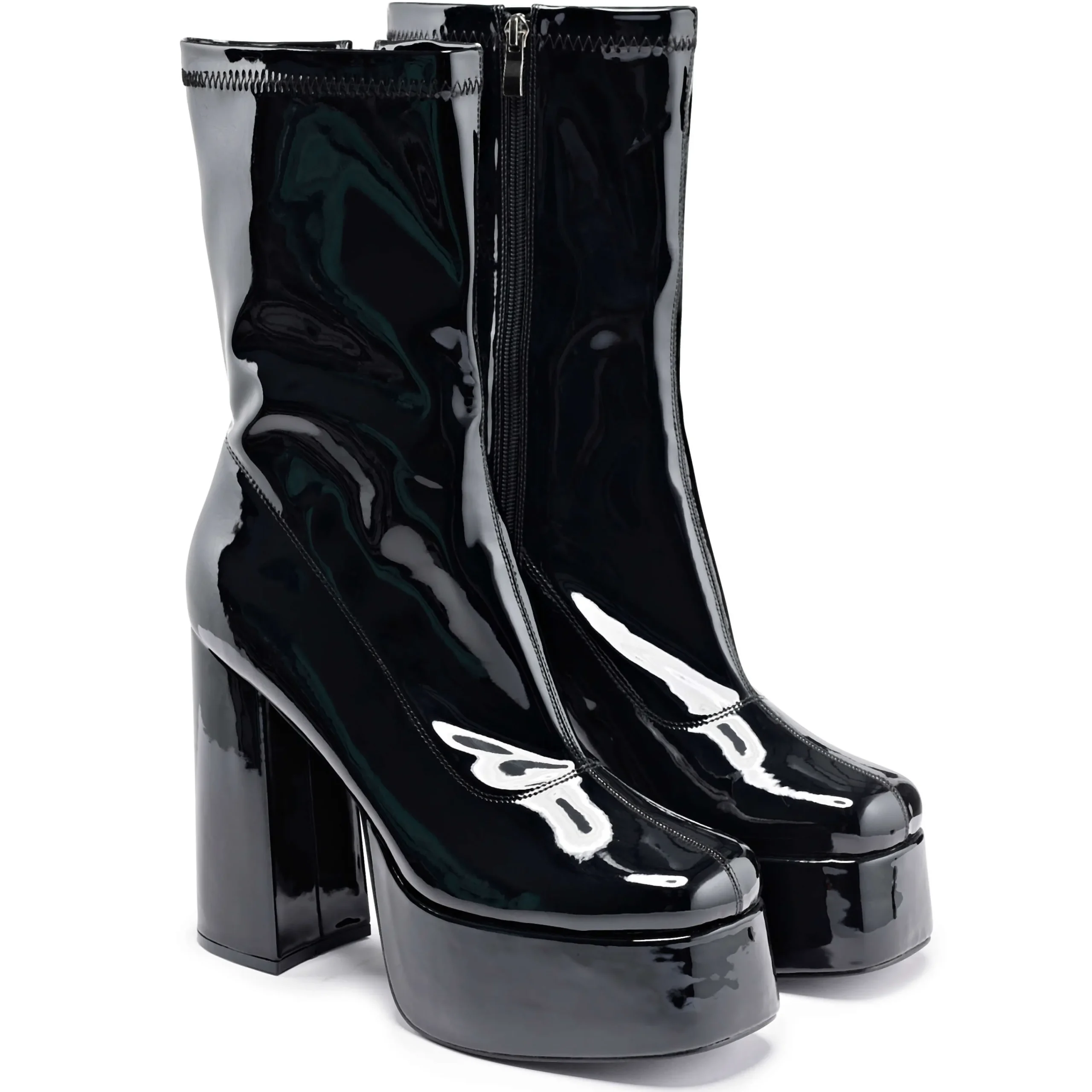 The Delano Men’s Black Patent Platform Heeled Boots fits true to size. This feedback is based on tests done on different types of people.