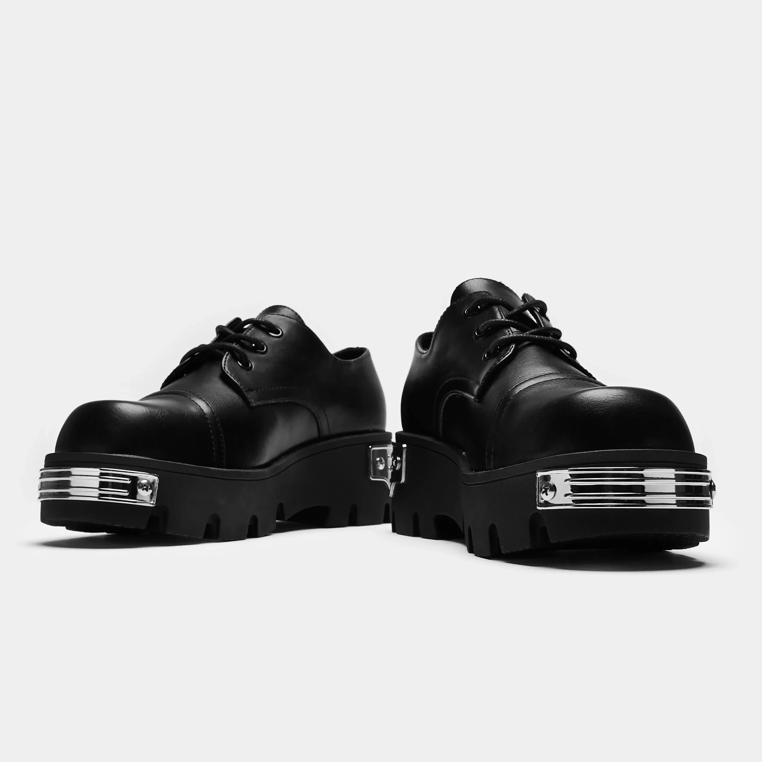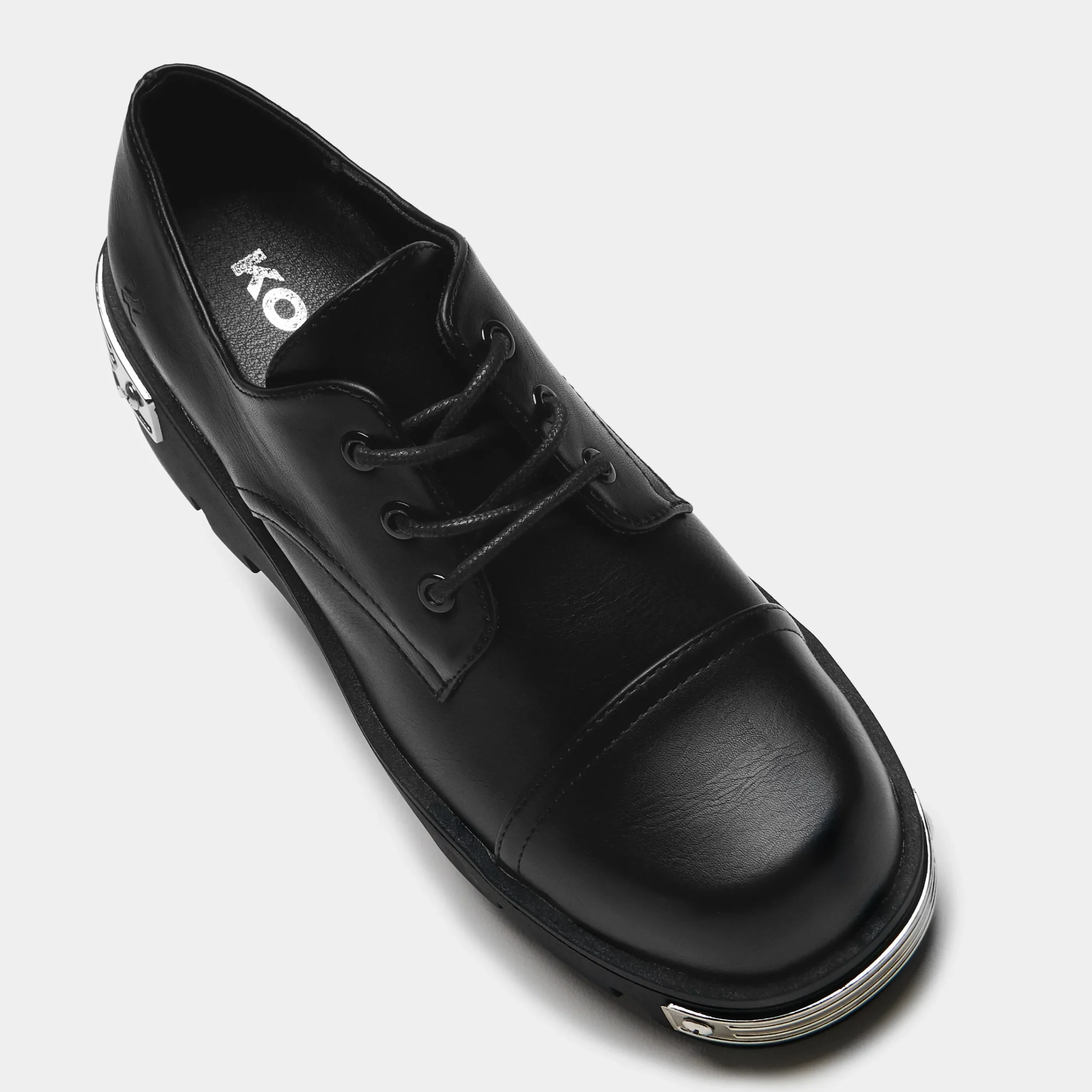 This is a fresh addition to our updated Core range for AW24. We set out to design a classic shoe with a unique silhouette and shape. The flatter toe gives it that squared-off look, but without going too sharp. The chunky sole is sturdy, yet comfortable, built for everyday wear. The custom molded metal plates at the front and back bring just the right touch of utility and grunge. We wanted these to be the ultimate lace-up shoes for those who crave something practical but with that unmistakable grungy edge.