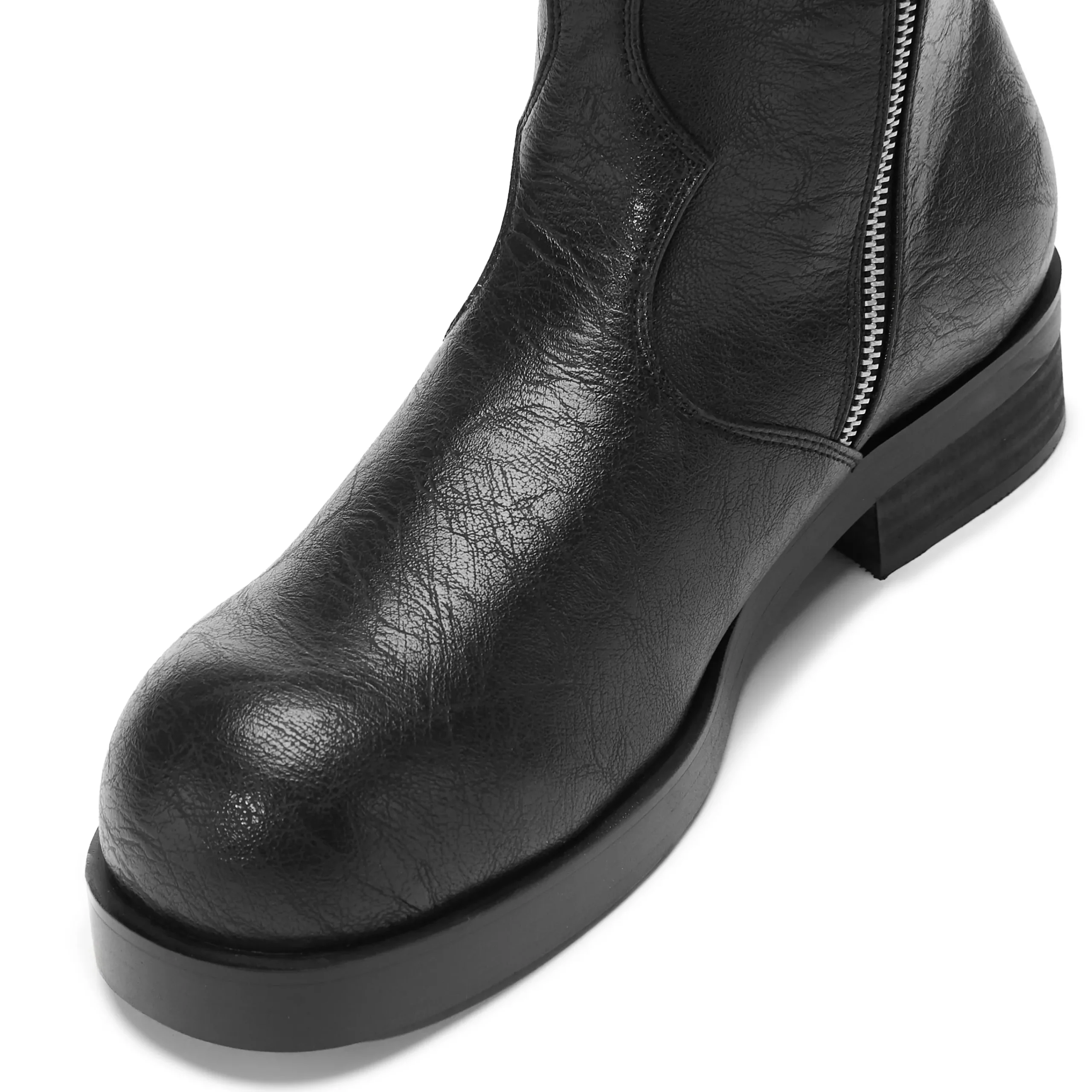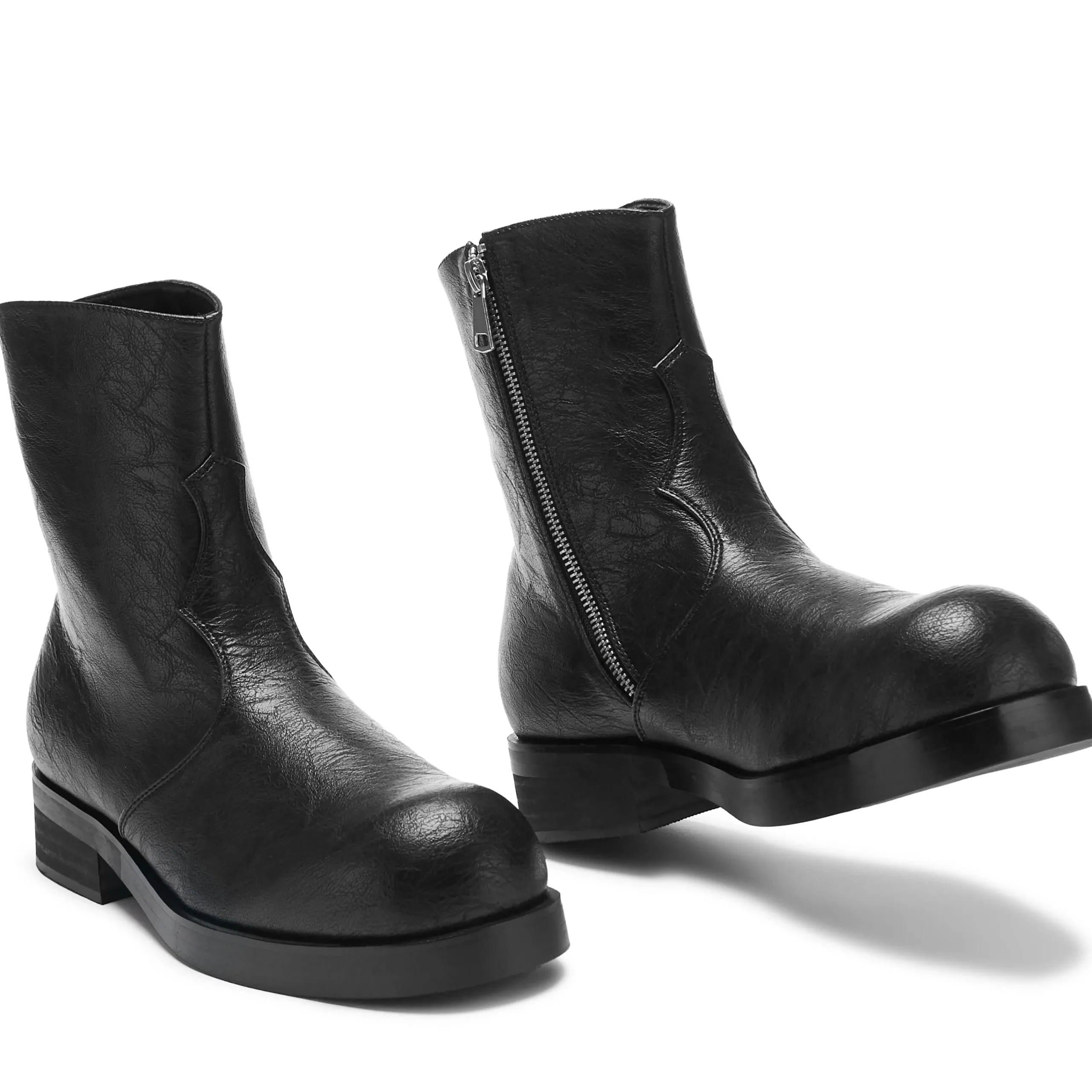 The Fateless boots are all about the silhouette. We’ve been working on this shape for a while, creating a slightly bulbous toe shape that pairs perfectly with the chunky stacked sole, giving the boot a purposeful look.