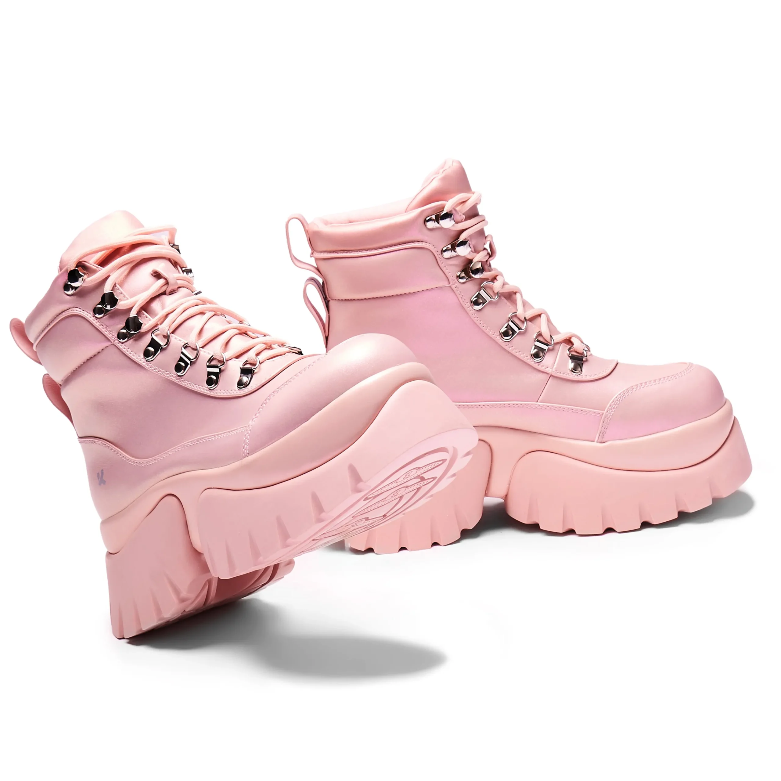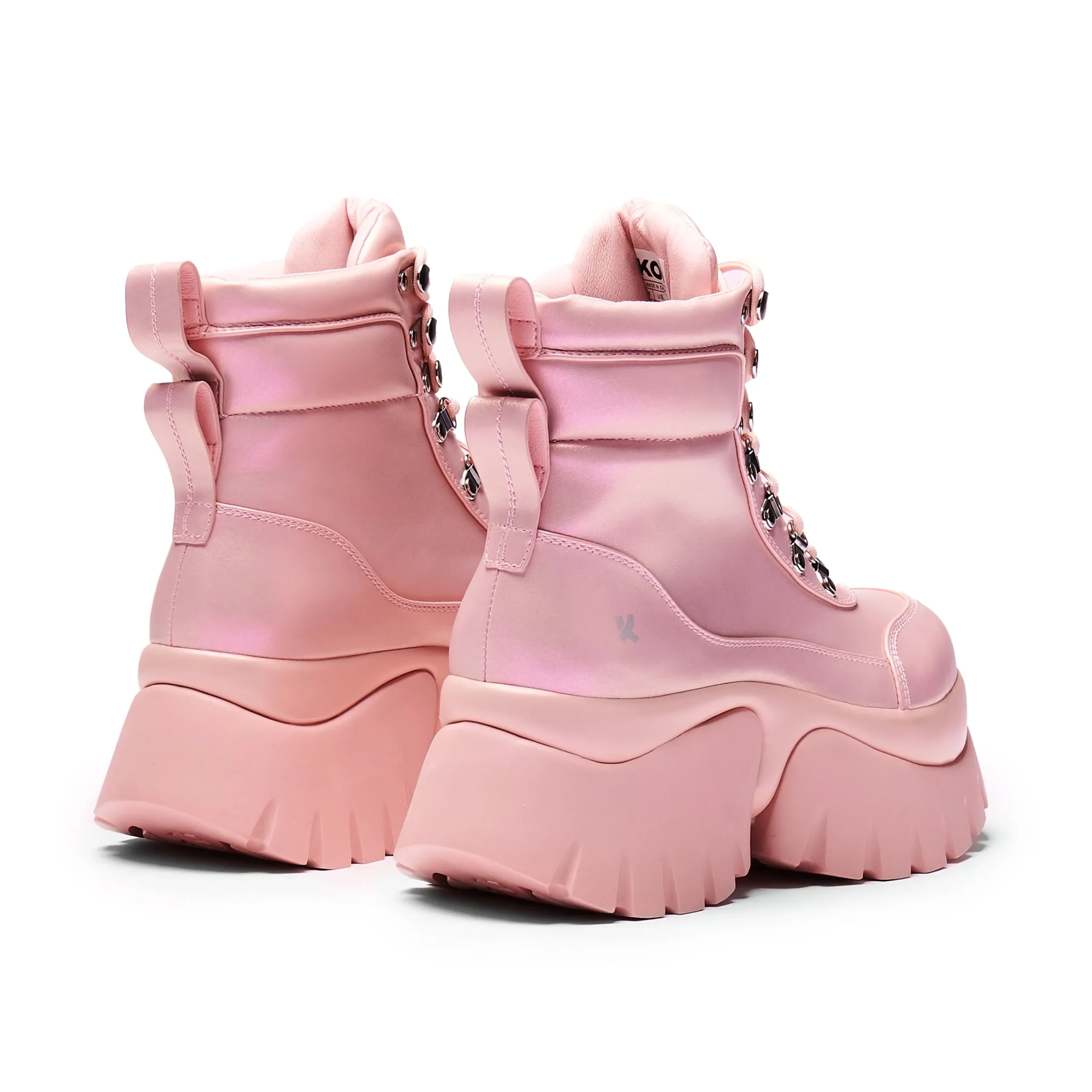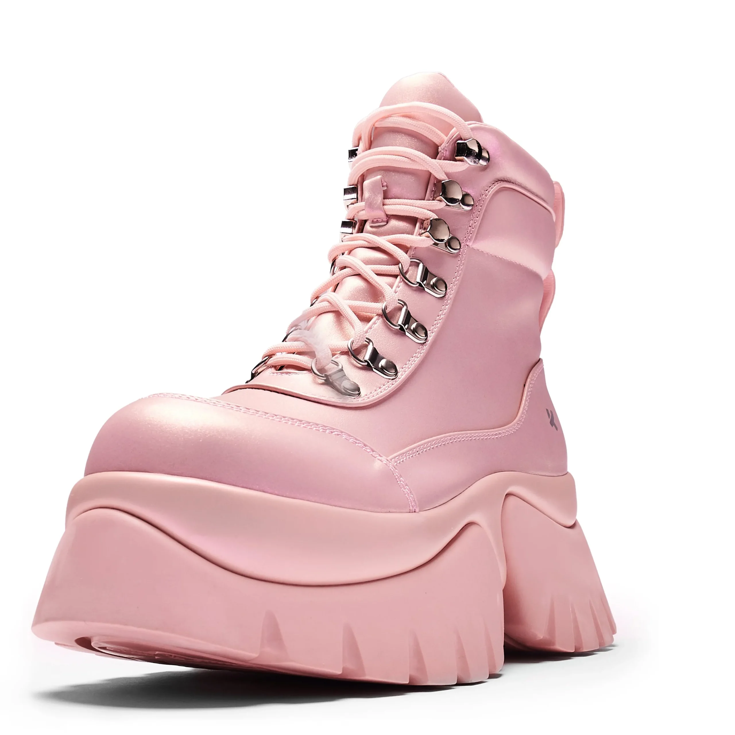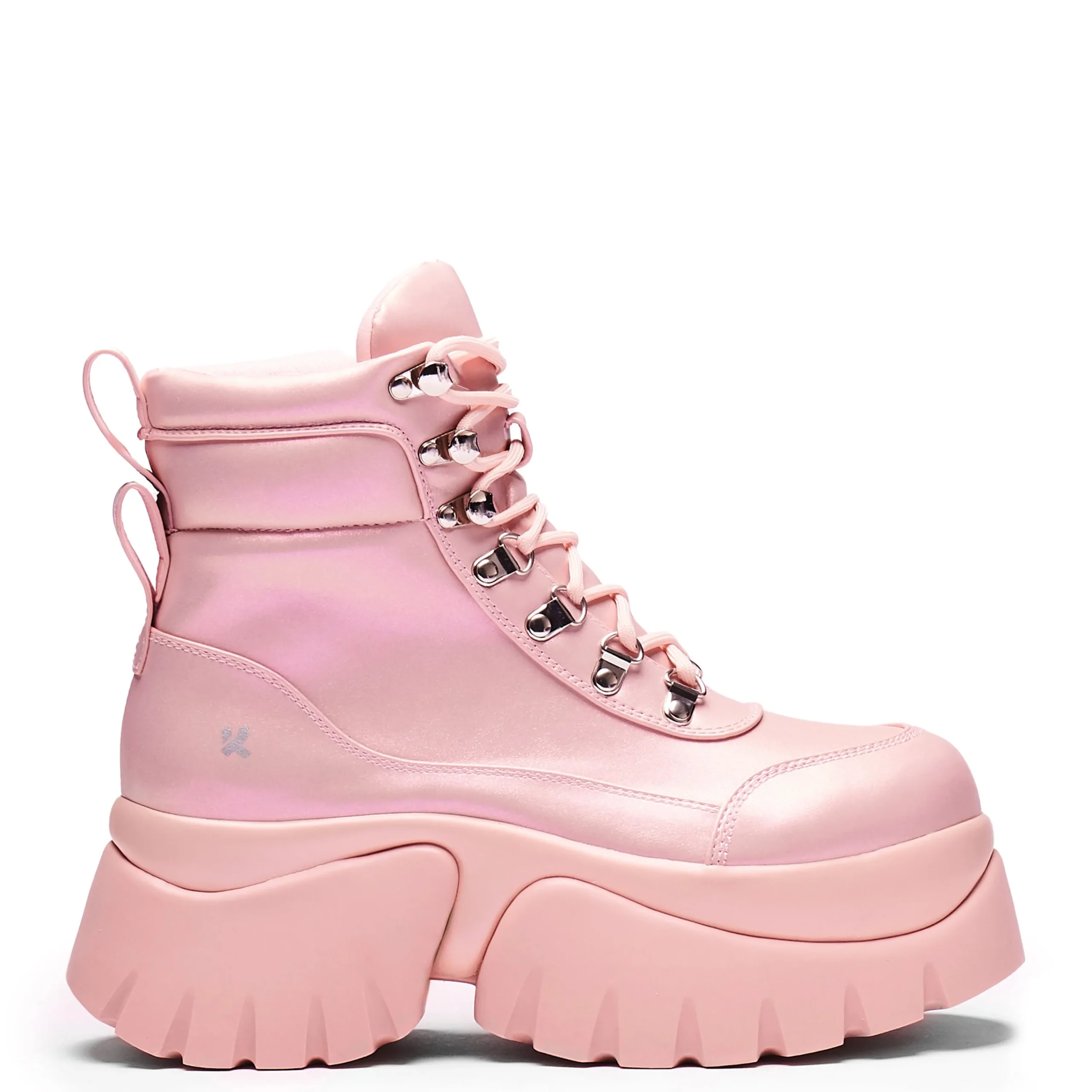 Marshmallow goo vibes, that’s what we’re serving here. A pastel colour to brighten your winter wardrobe with a platform sure to keep your head in the clouds.