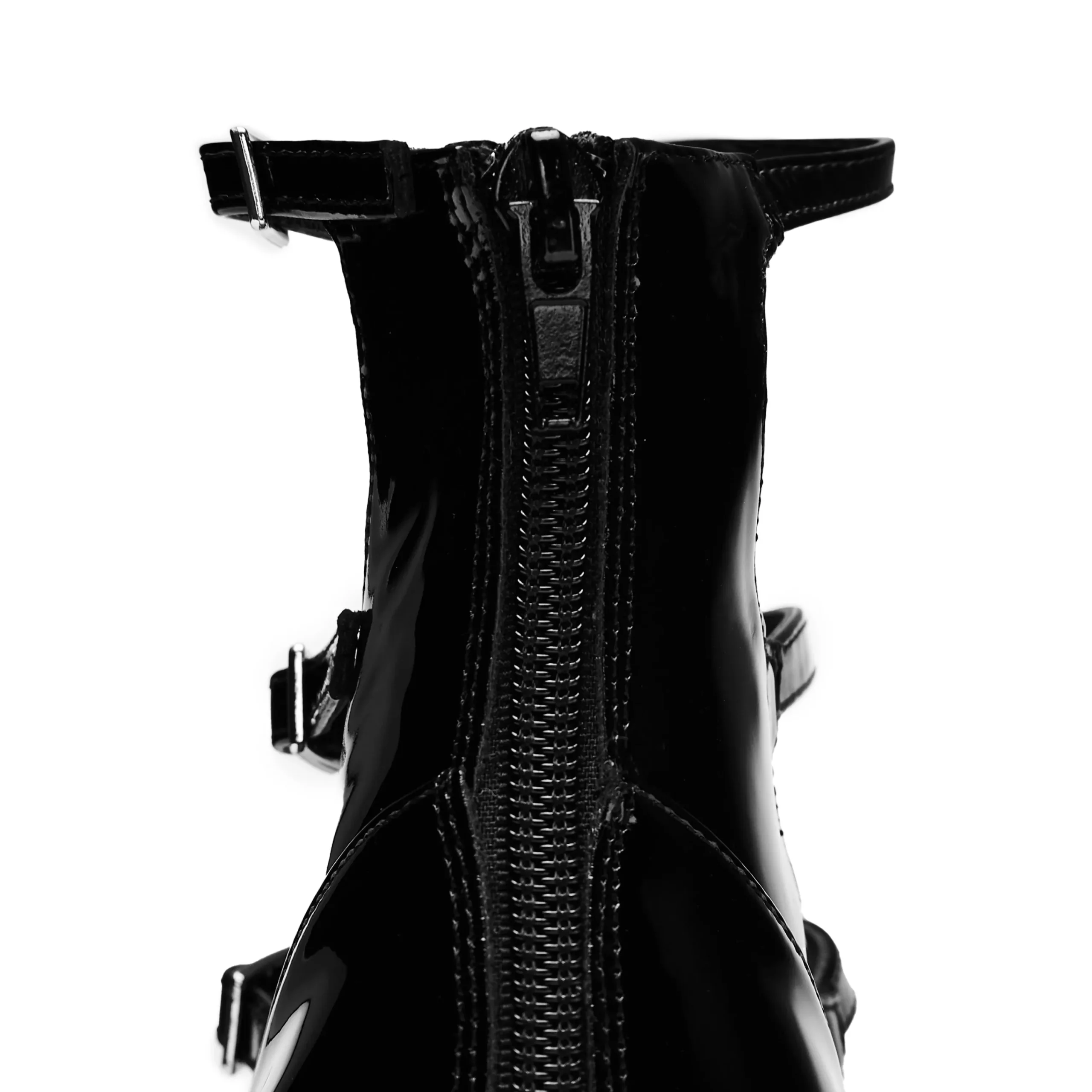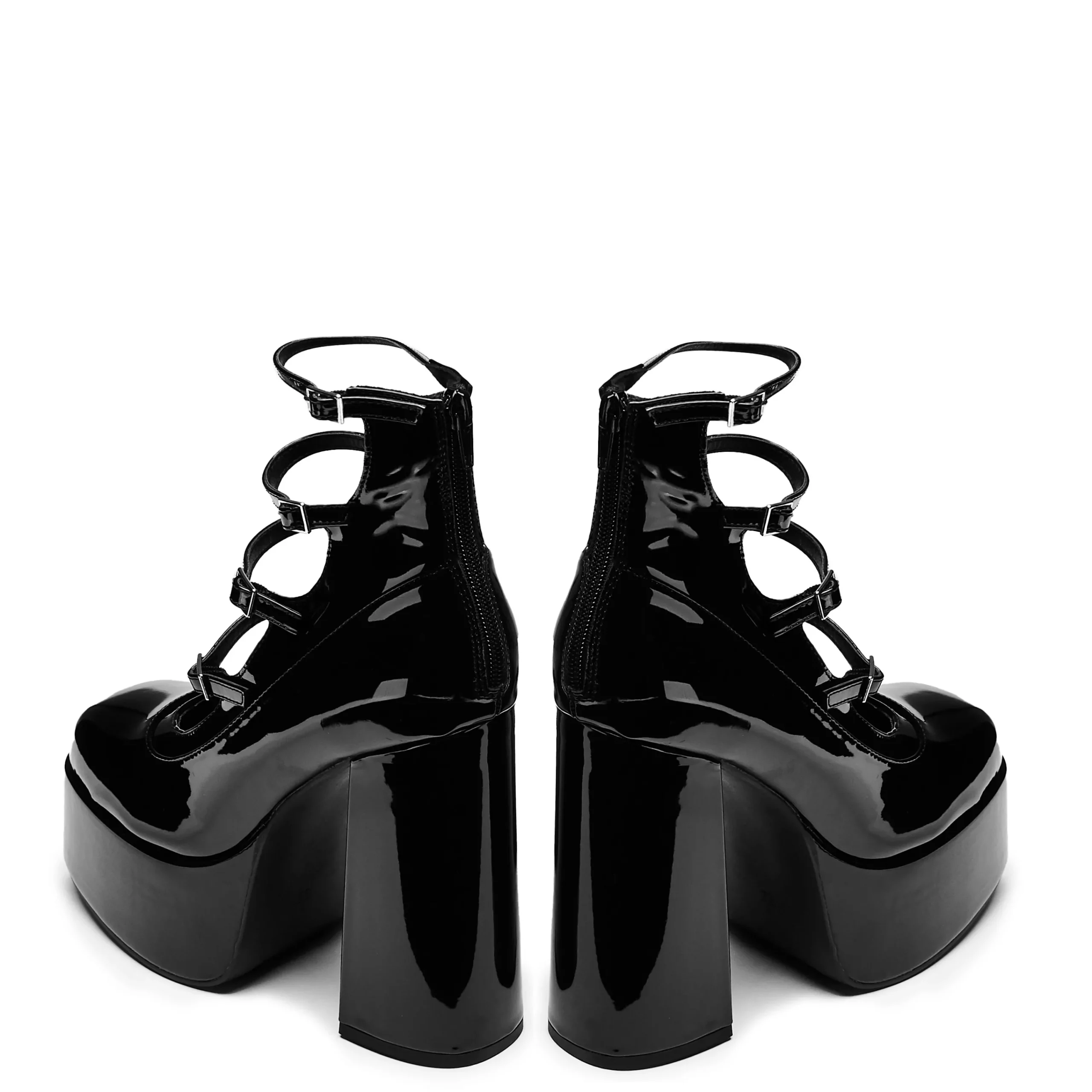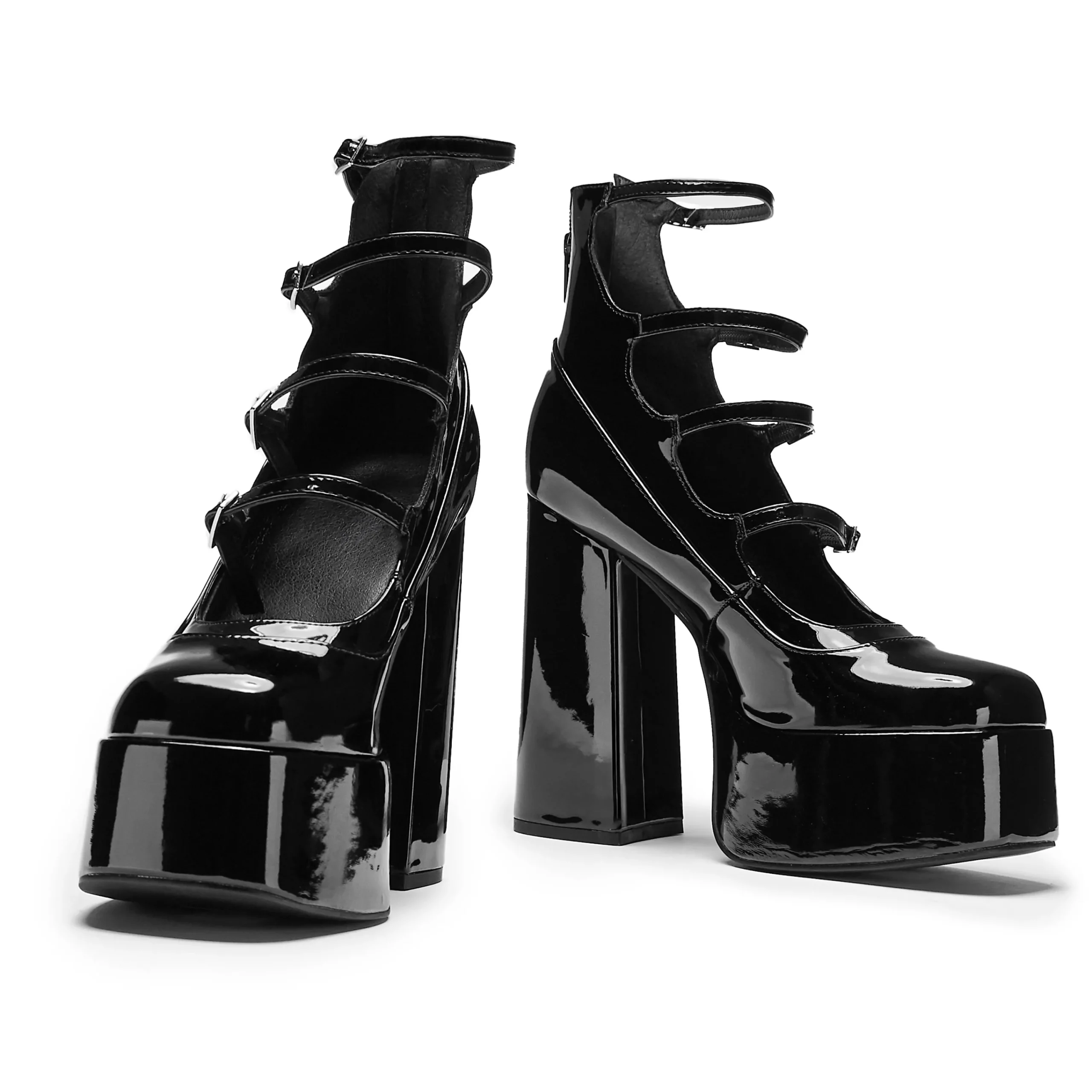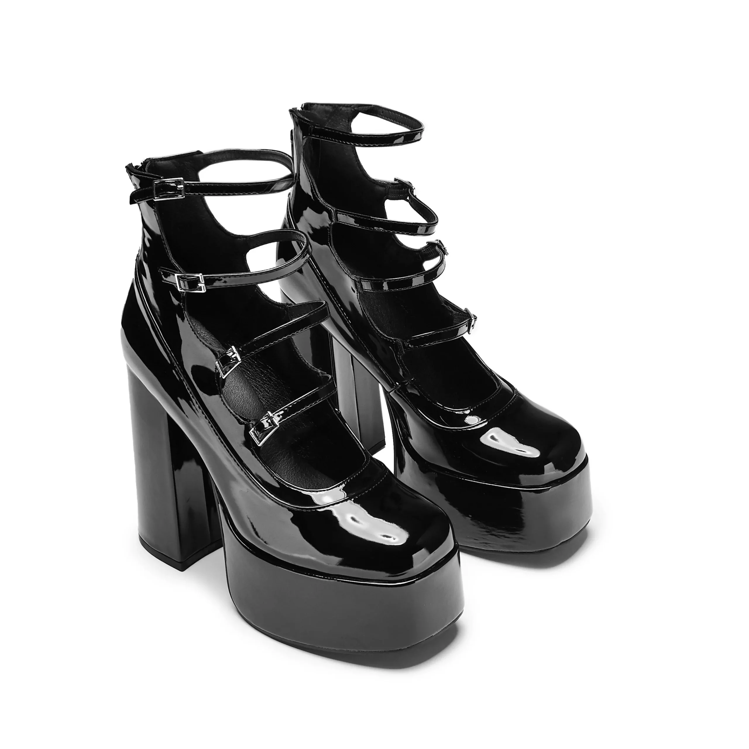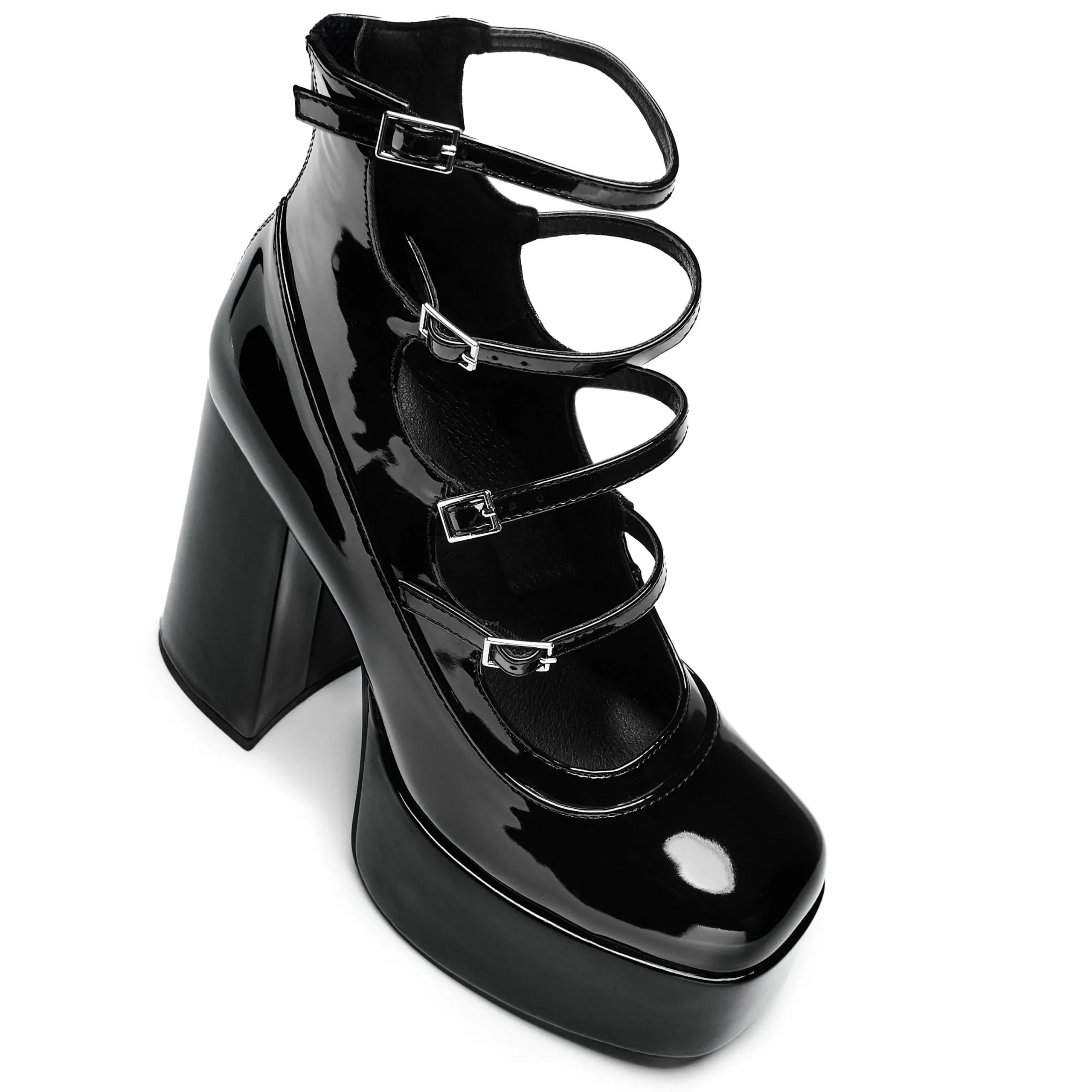 Feeling like a sexy killer with the Gurren Platform Heels. The black heels feature vegan leather construction, 3 thin adjustable buckle and square toe. Elevate your look in style and comfort