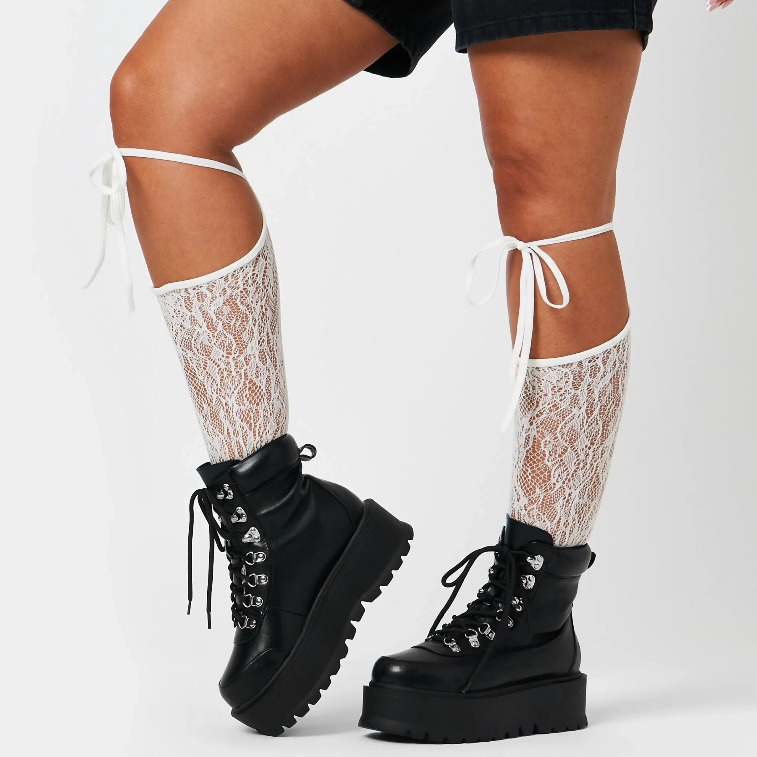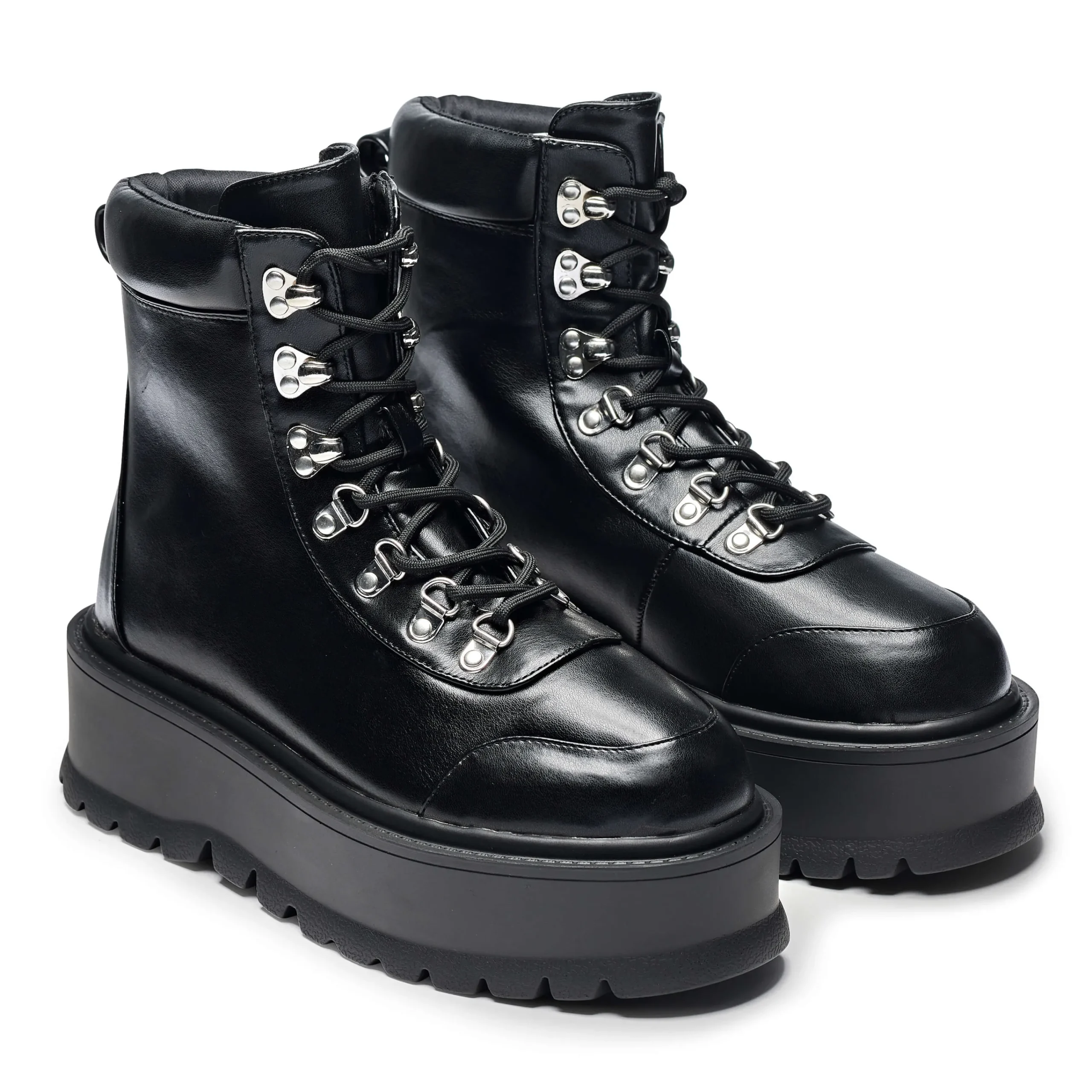 Embrace Wednesday Addams’ edgy style with our HYDRA Platform Boots. With a bold, chunky design and elevated height, these boots embody Wednesday’s fearless spirit. Whether you’re headed to a Halloween party or just want to add a touch of her style to your everyday look, our HYDRA Platform Boots are a must-have for any true fan of the macabre.