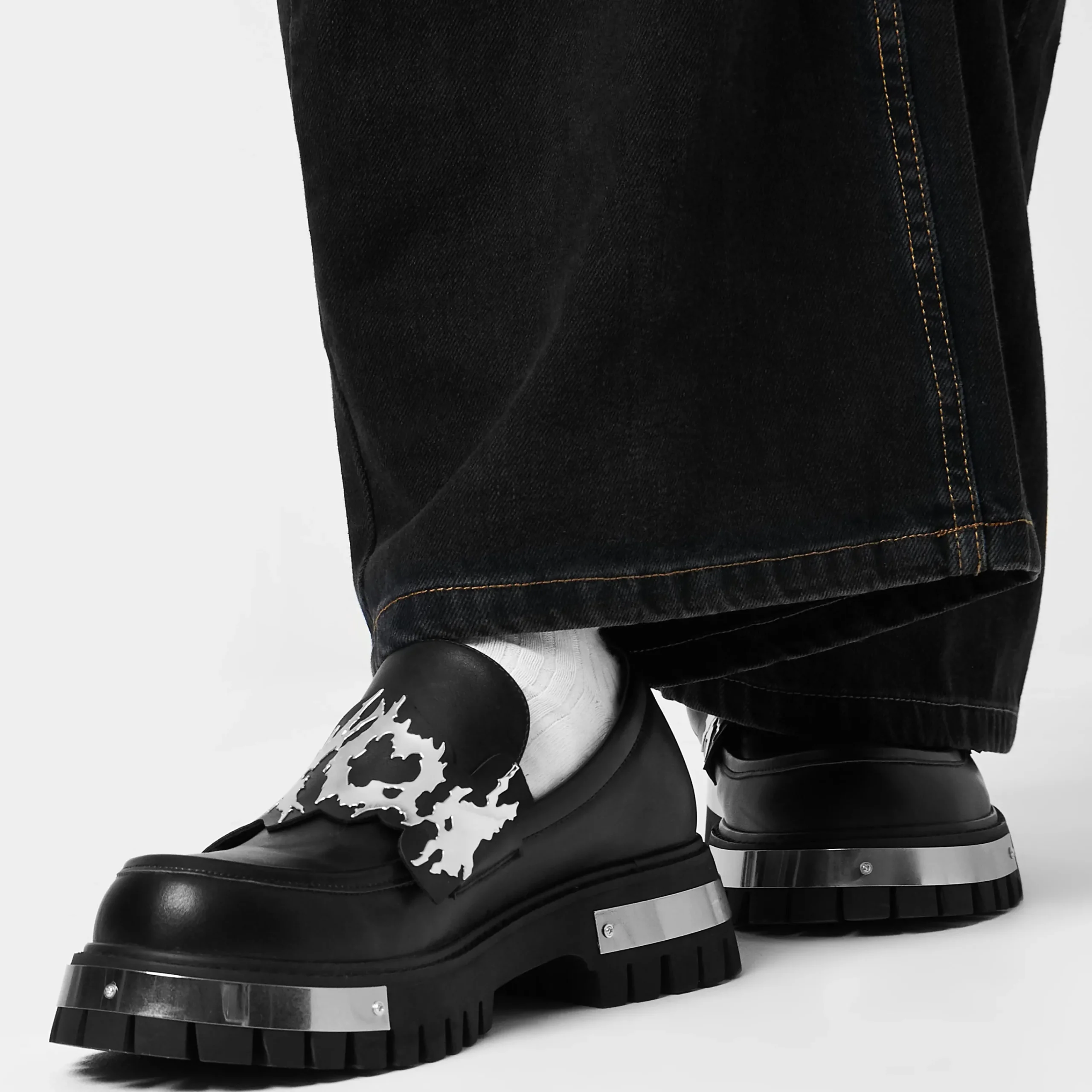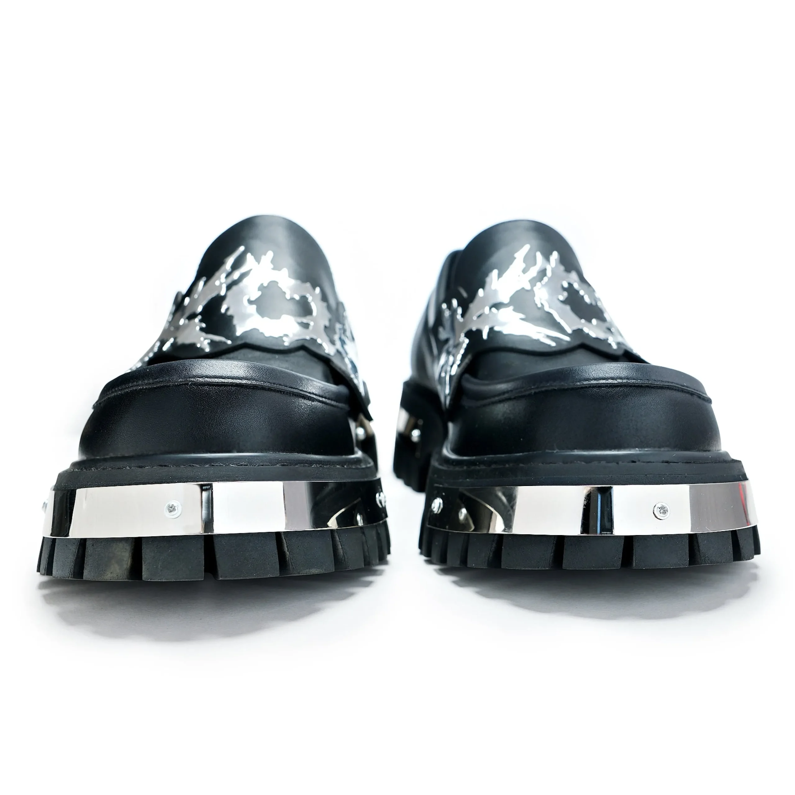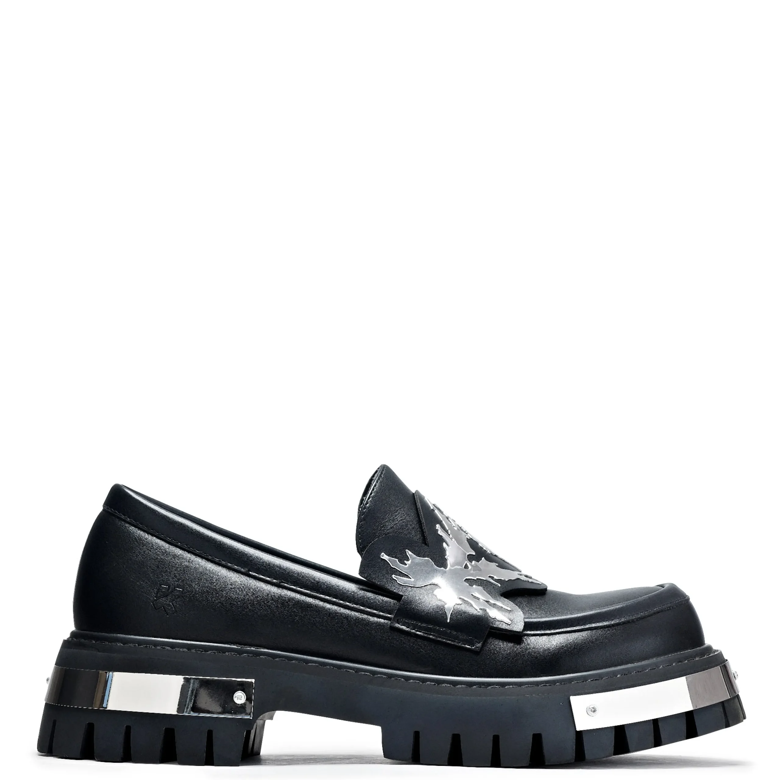 Upgrade your look with these stylish Metal Loafers. An edgy black hue meets a statement-making “KOI” detail and chunky platform fit for any modern man. Whether you’re on the go or dressing up for a night out, these metal bad boys will be turning heads for a second glance!!