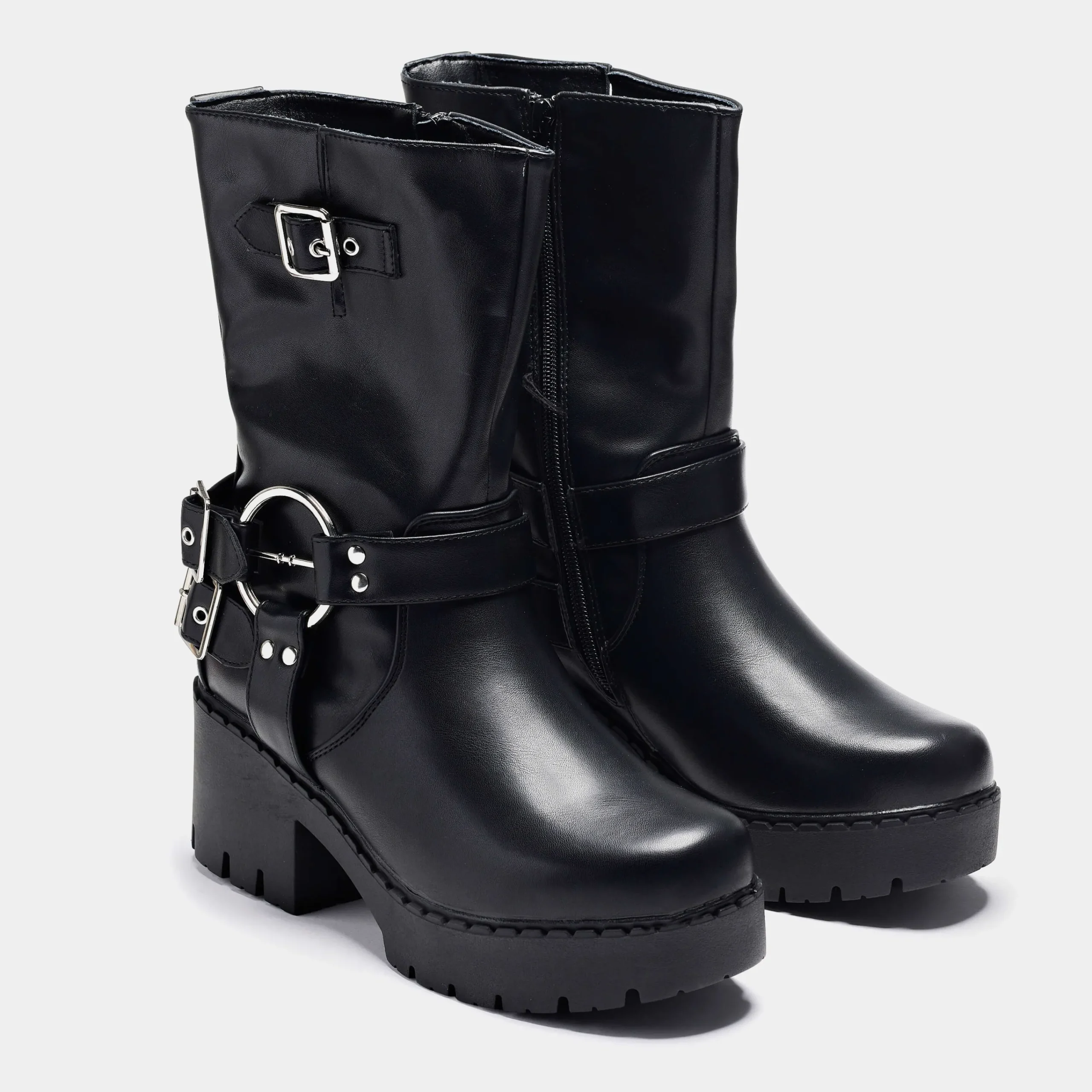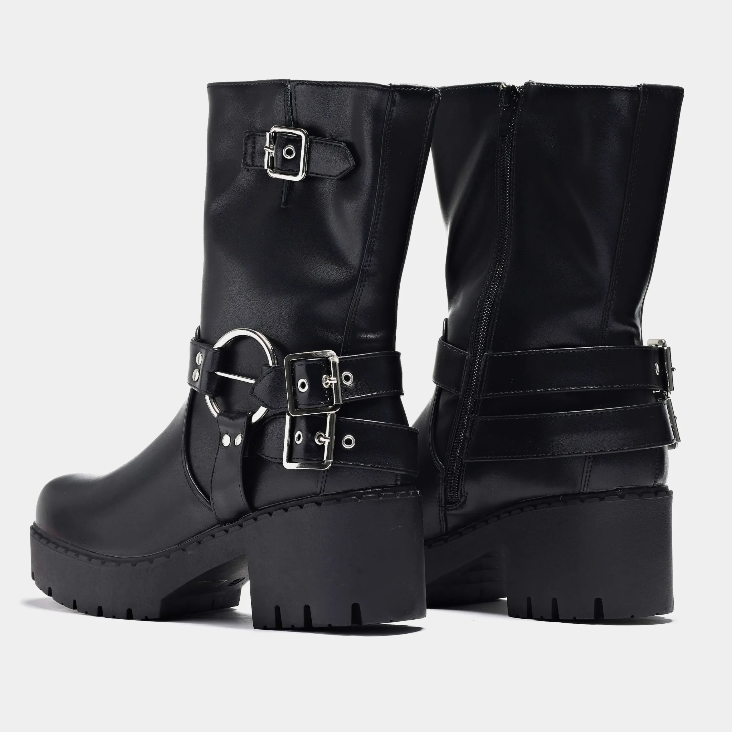 The Oblivion Grunge Switch Boots feature an edgy, grunge-style design, with buckles to make a statement. Crafted with black faux leather, these boots are sure to deliver an unforgettable look.
