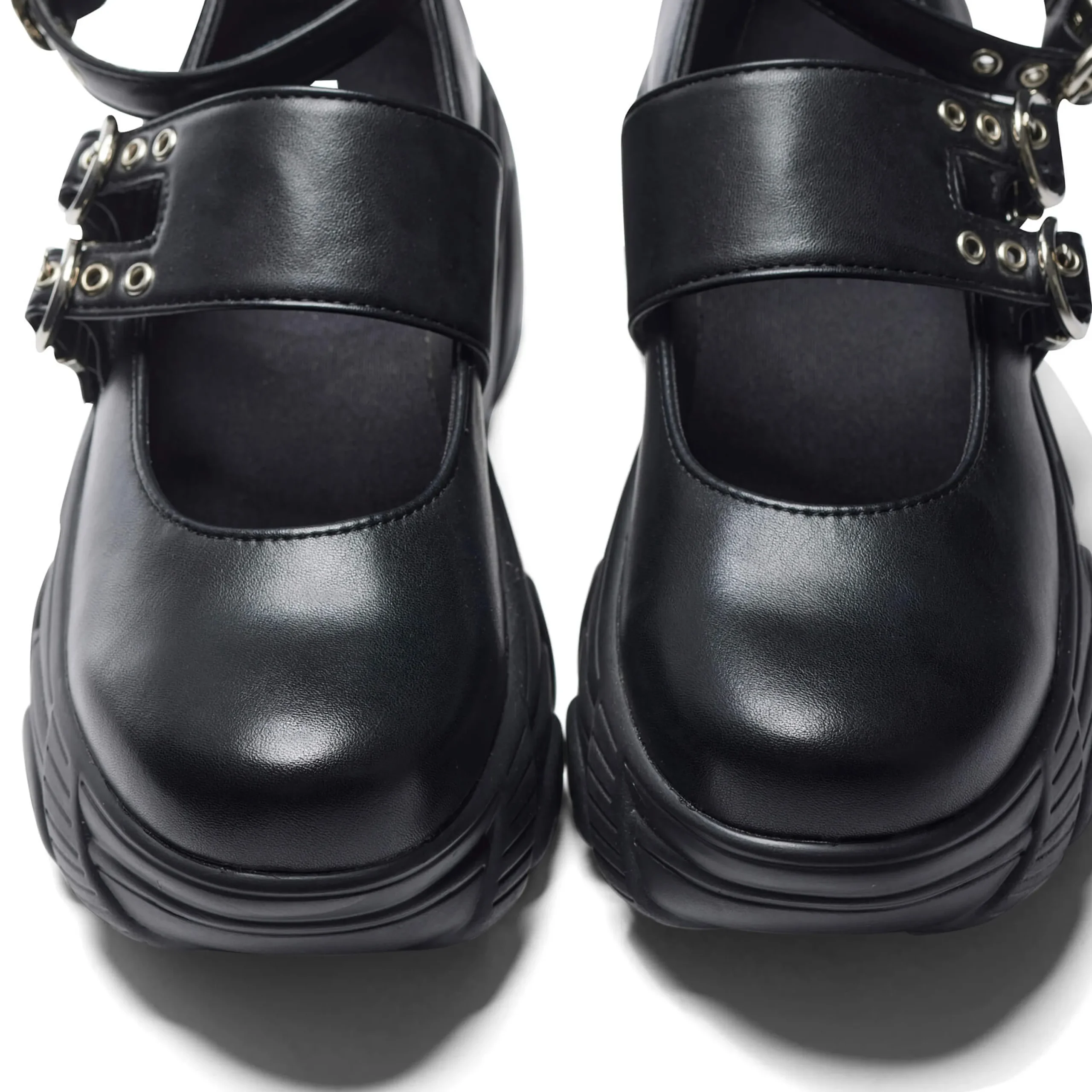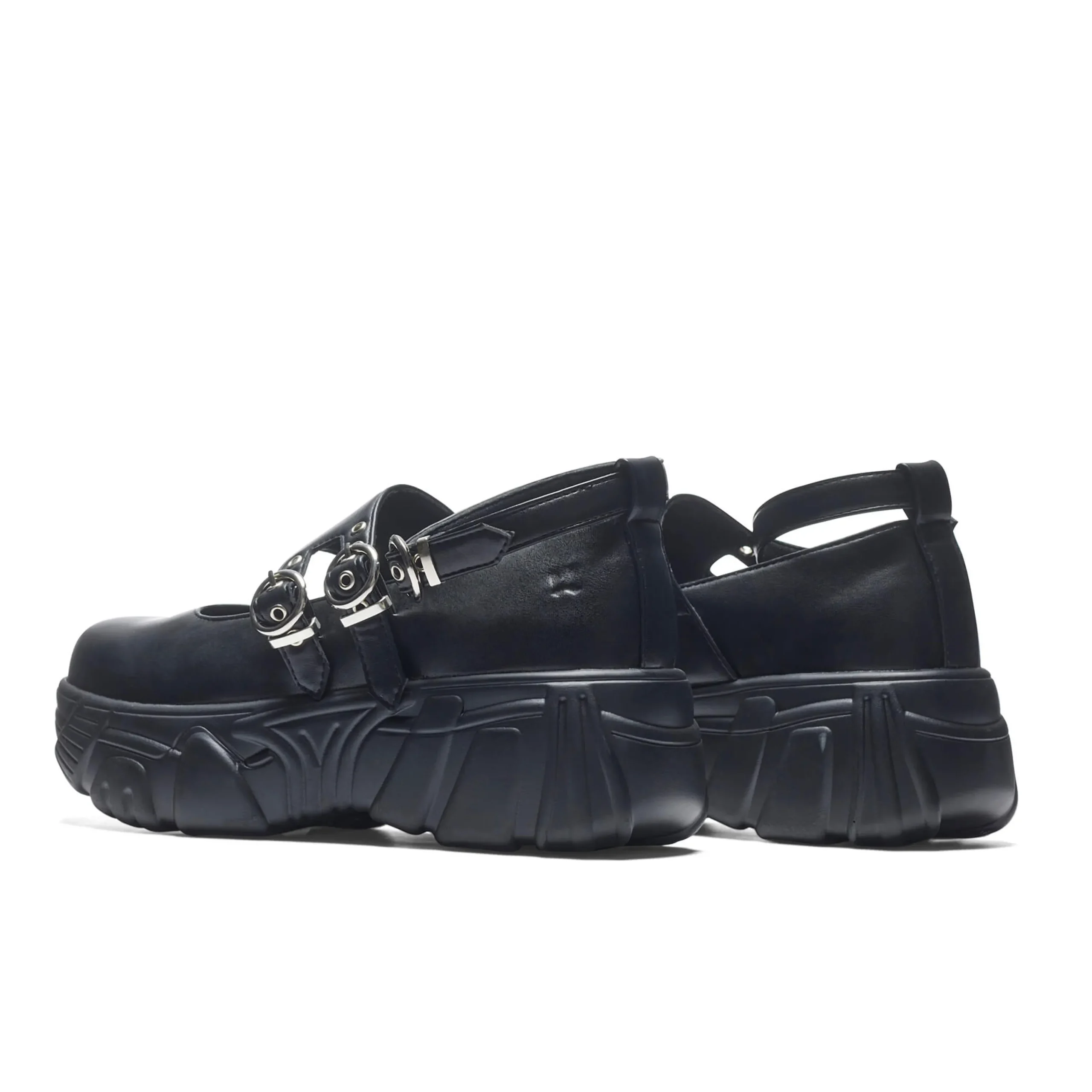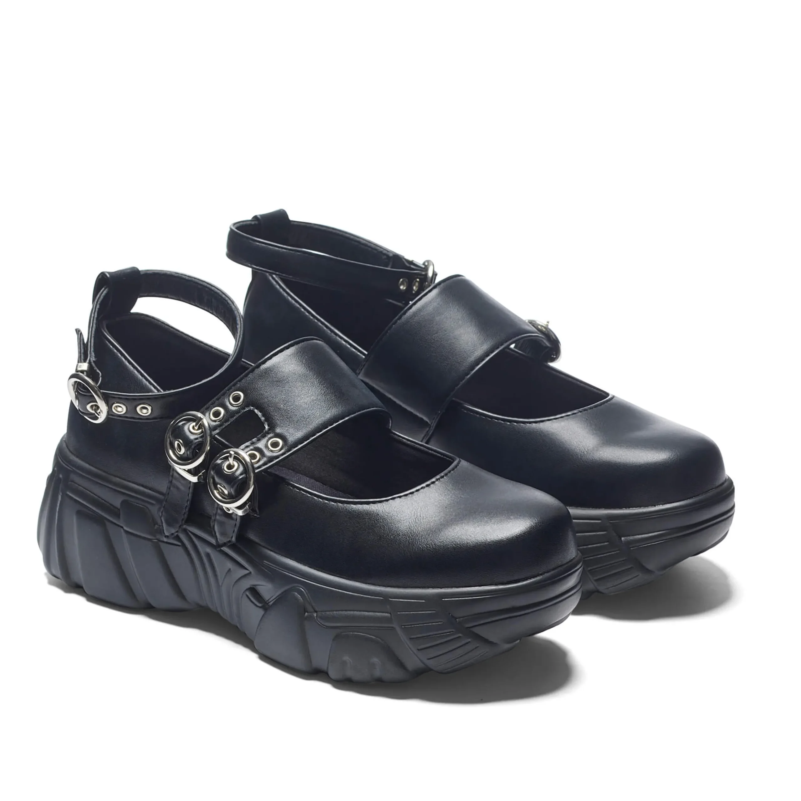 The Seraphon Mystic Buckle Chunky Shoes offer a bold yet refined look with their chunky platform and sleek buckles. Crafted from vegan leather, these black shoes are perfect for those looking for cruelty-free and fashion-forward options. Elevate your style with these statement-making shoes.