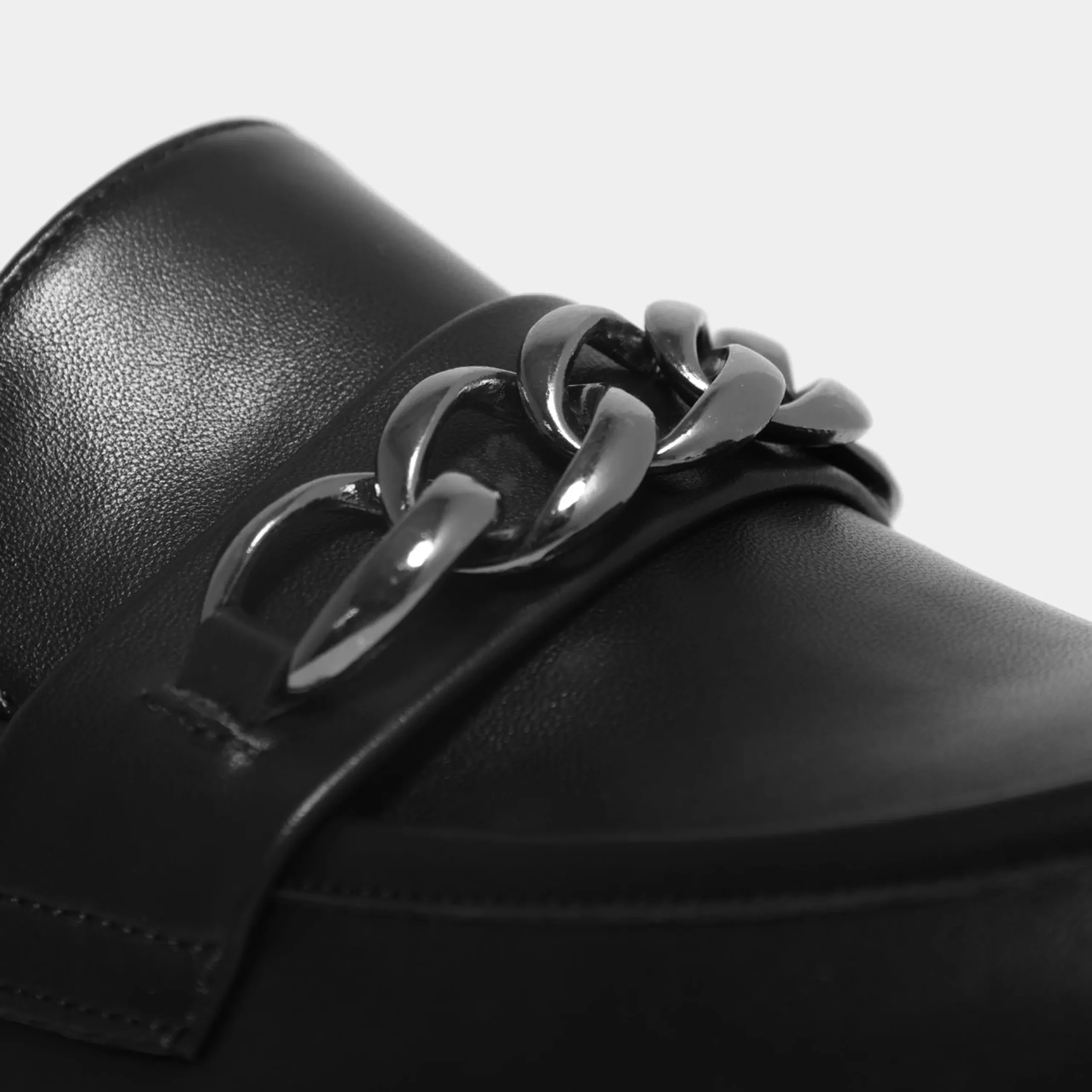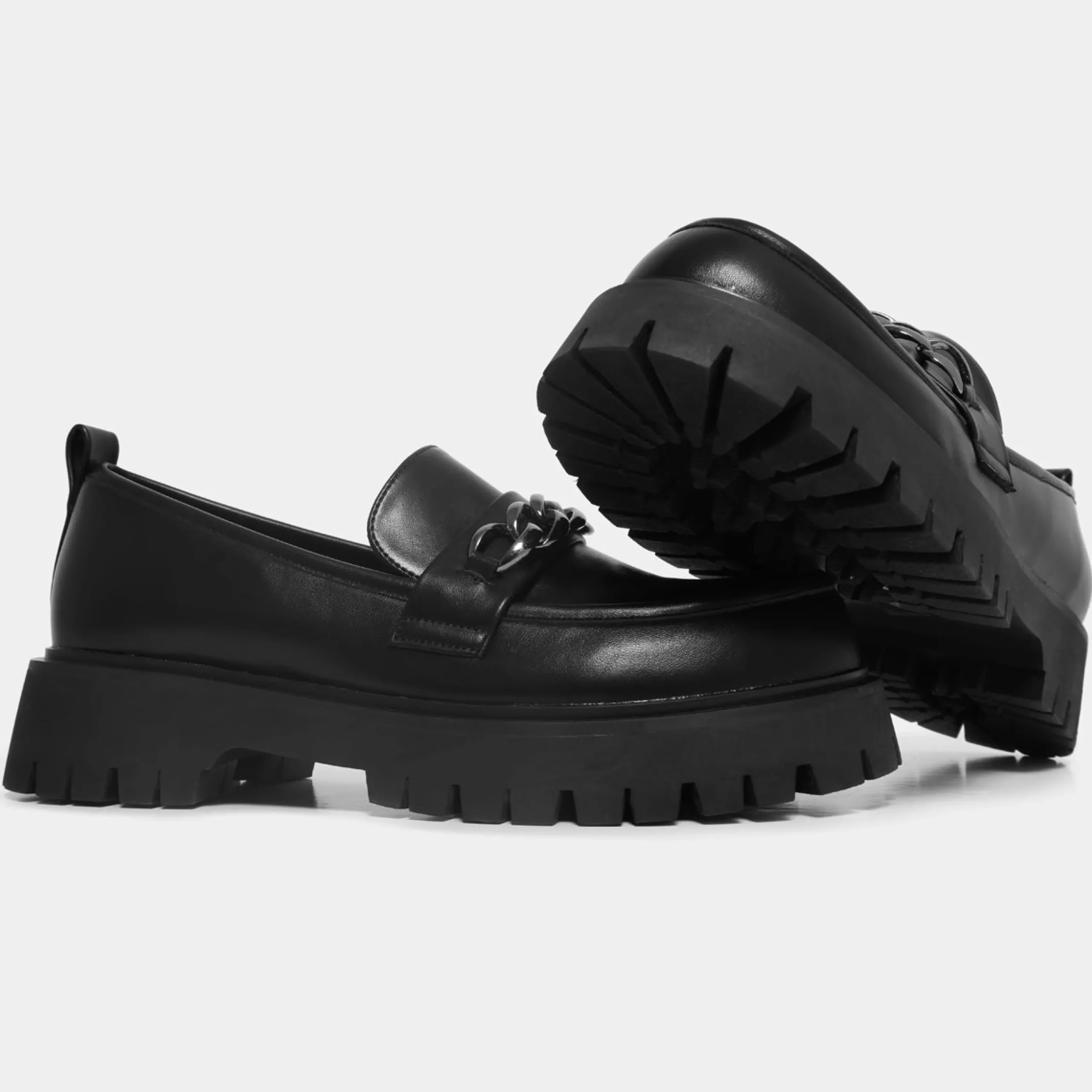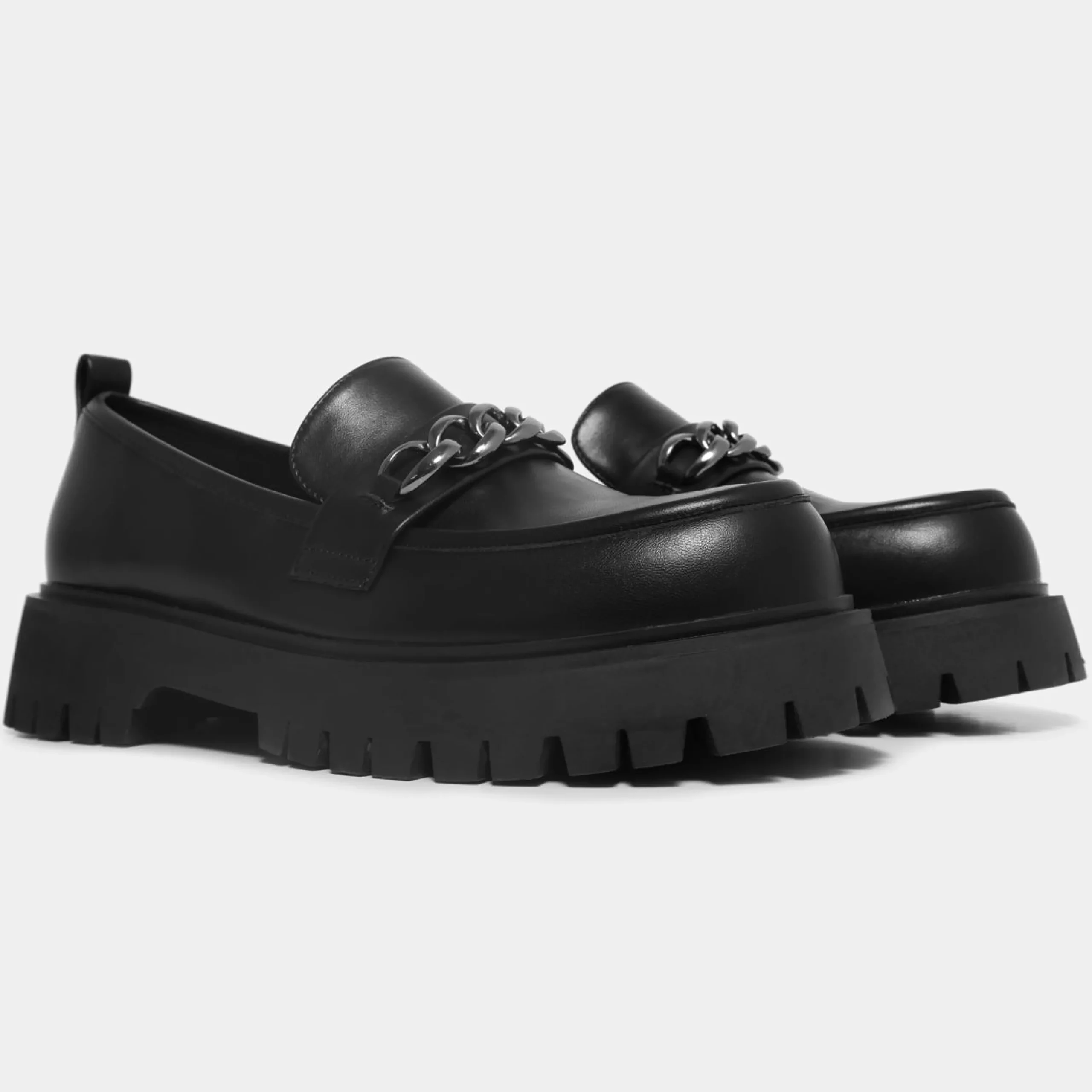 Oooh, he smart. We’re back with a brand new pair of men’s loafers. These chunky black slip on shoes are the best way to be cool but put-together on any given occasion. In all black vegan leather, these men’s shoes feature a chunky sole and chain detail, so you can wear these to work, then go shopping, then go for drinks.