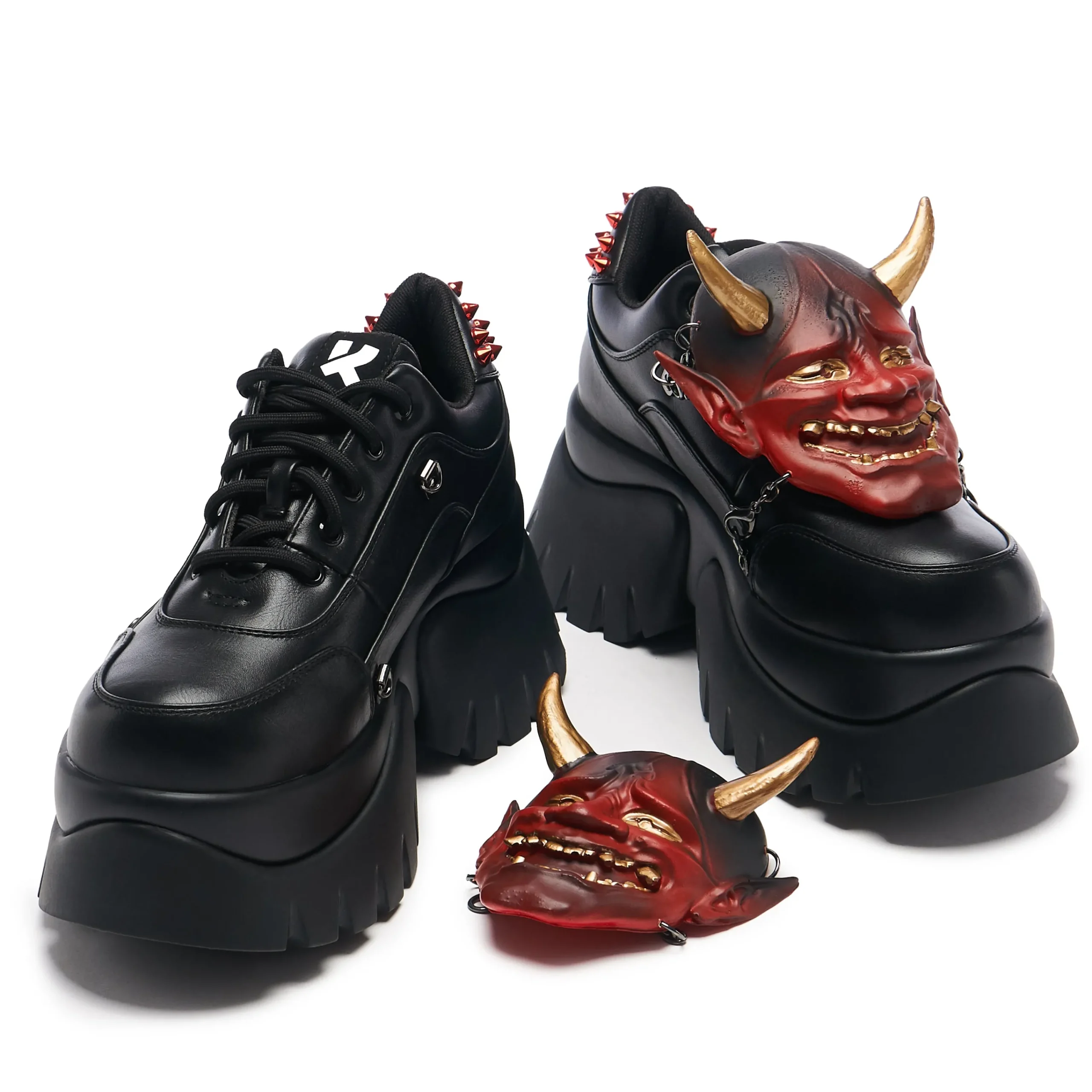 The mask is handpainted, you get a pair of them, and they’re attached using lobster clasps so they can be removed. These have been extensively tested in-house to ensure comfort during wear. Staying true to classic KOI design, the shoes boast a chunky, sturdy rubber outsole, cushioned insole, and extra padding around the ankle and tongue for maximum comfort.
