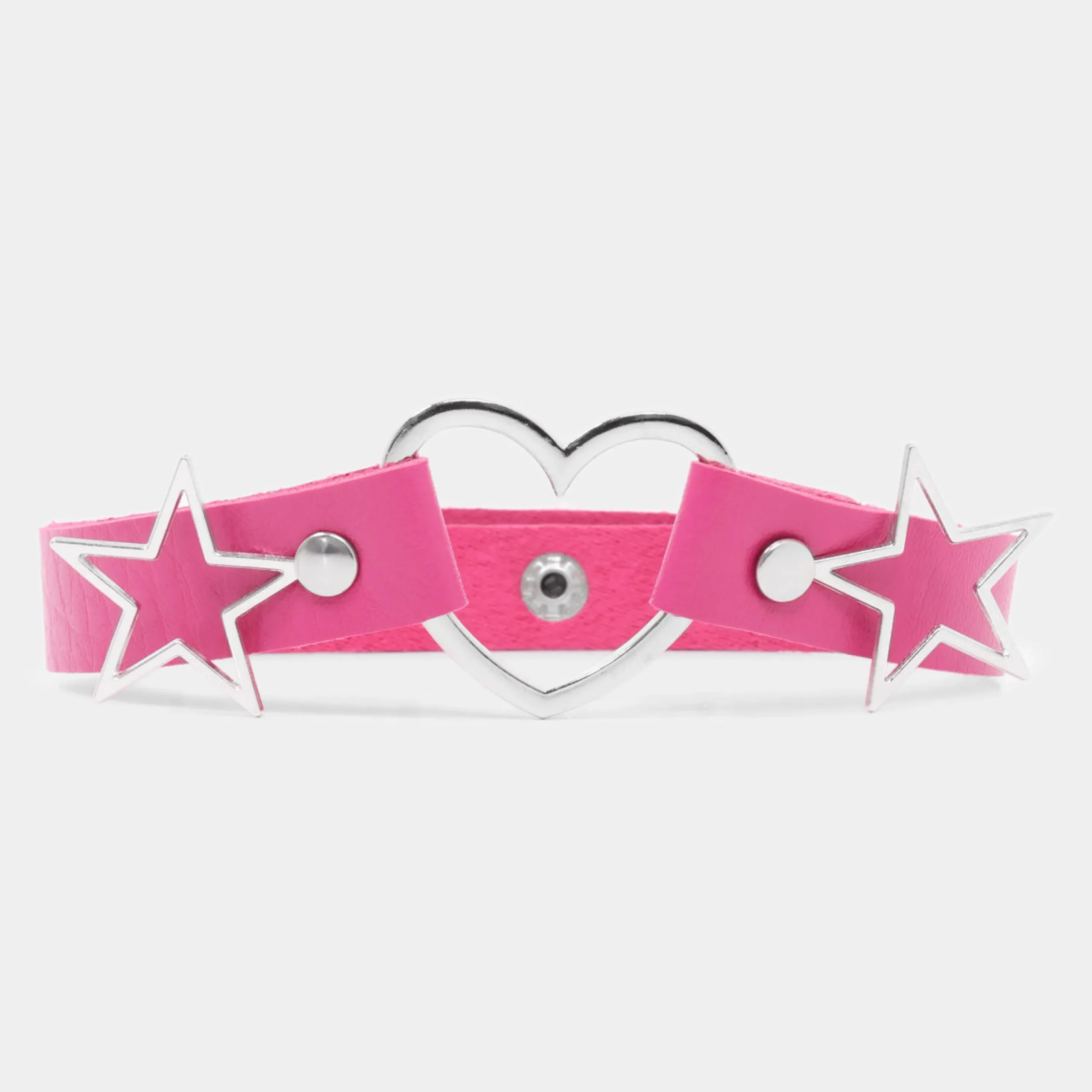 Catch me under the stars being a badass! This pink choker will elevate your vibe, featuring a heart center piece with stars attached.