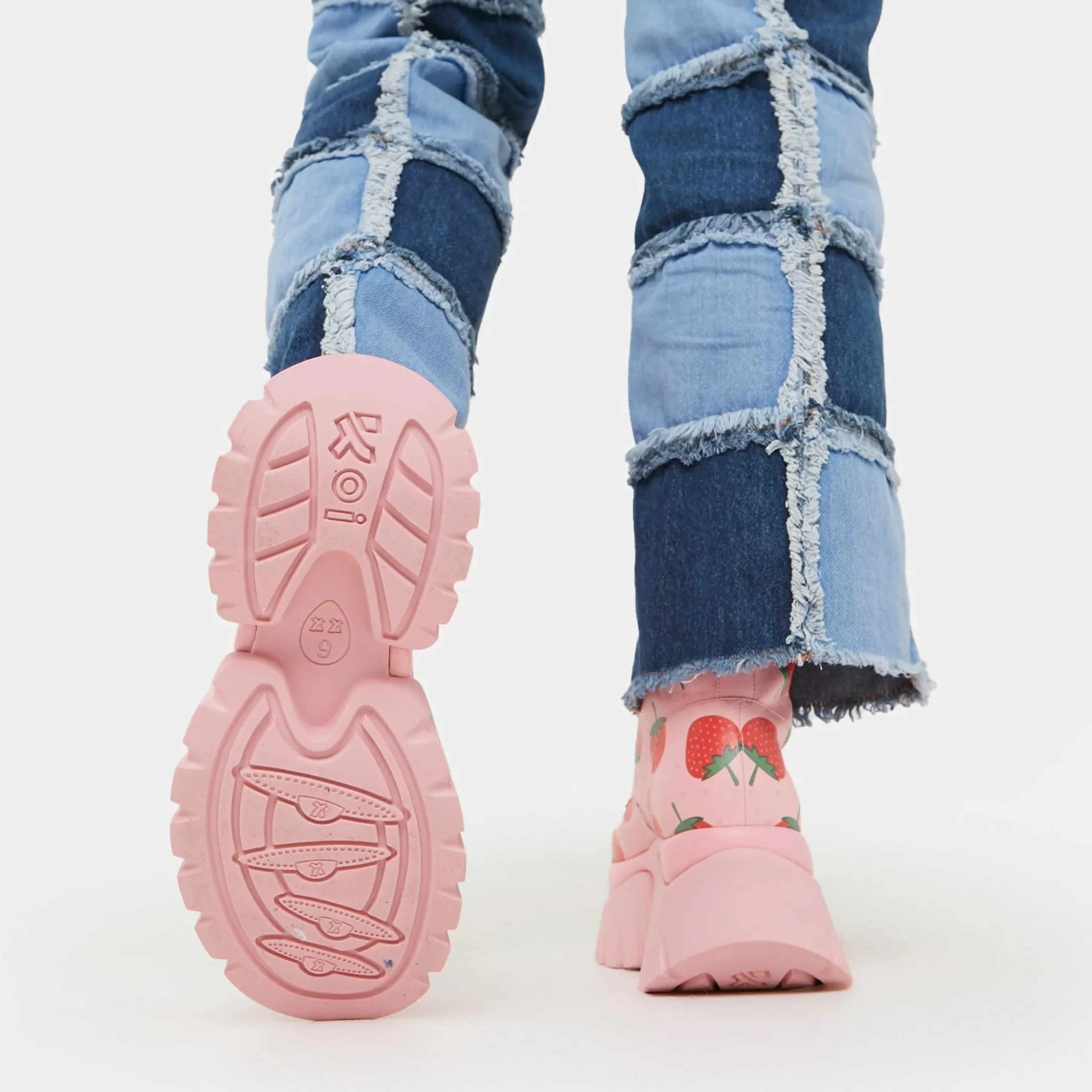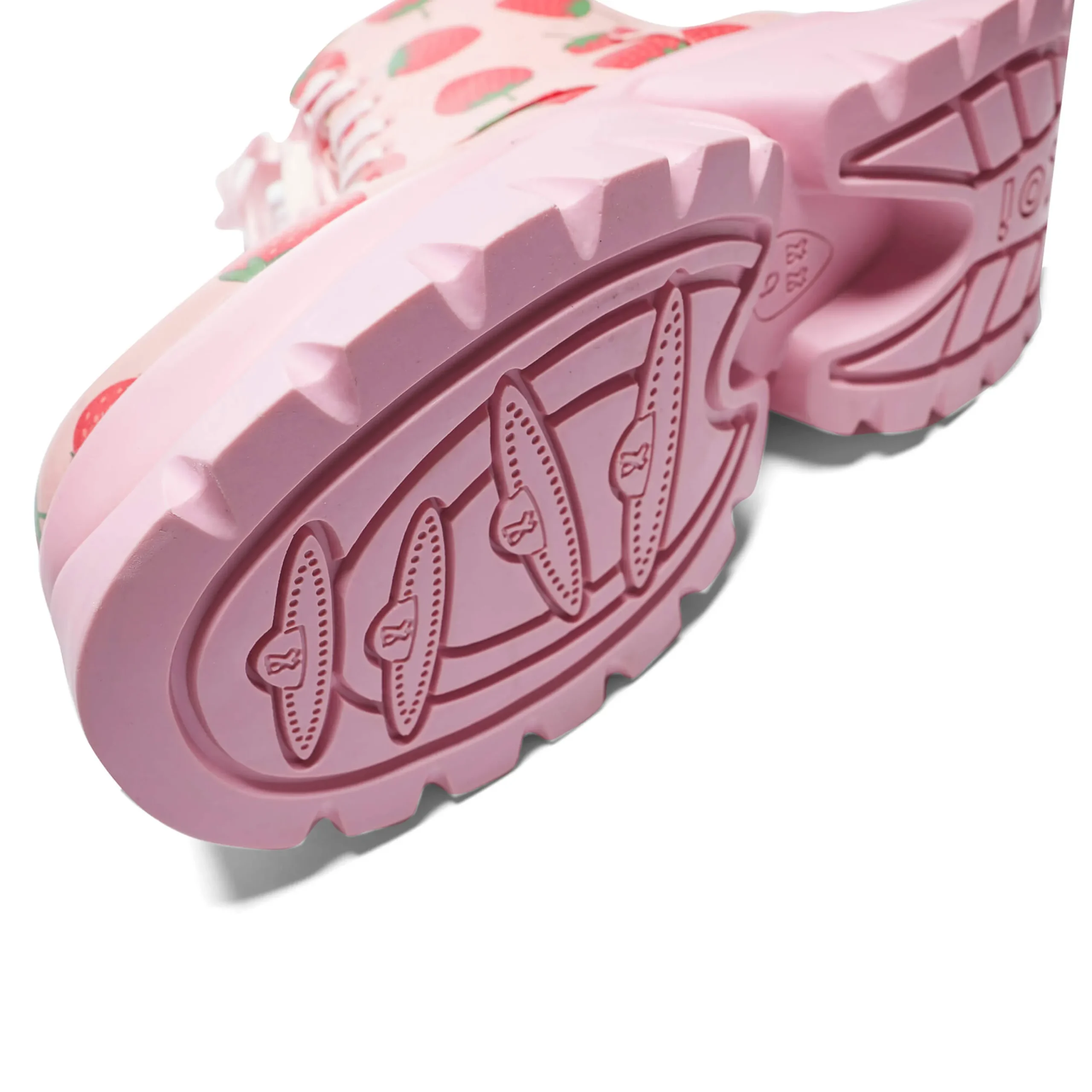 Koi Footwear’s very best pink vegan leather chunky combat boots are back in stock after a long wait! The Strawberry Shortcake Pink Vilun ankle boots lace up and are good enough to eat…Strawberry is the beloved food of goddesses like Venus, Aphrodite and You! So don’t miss out on these women’s platform boots before they sell out again, in the perfect shade of sweet pink to wear all through summer. Let’s get fruity in some cute boots for women!