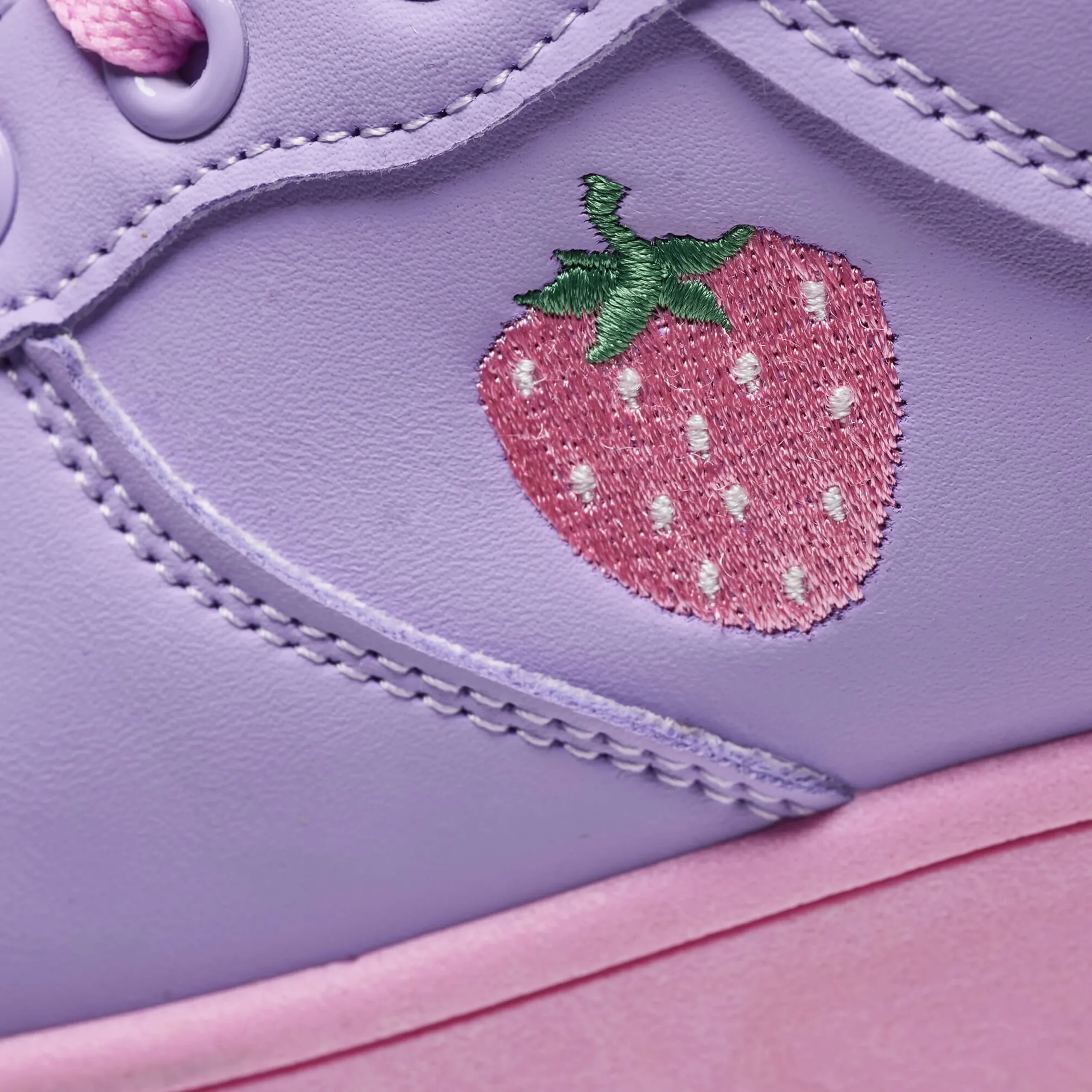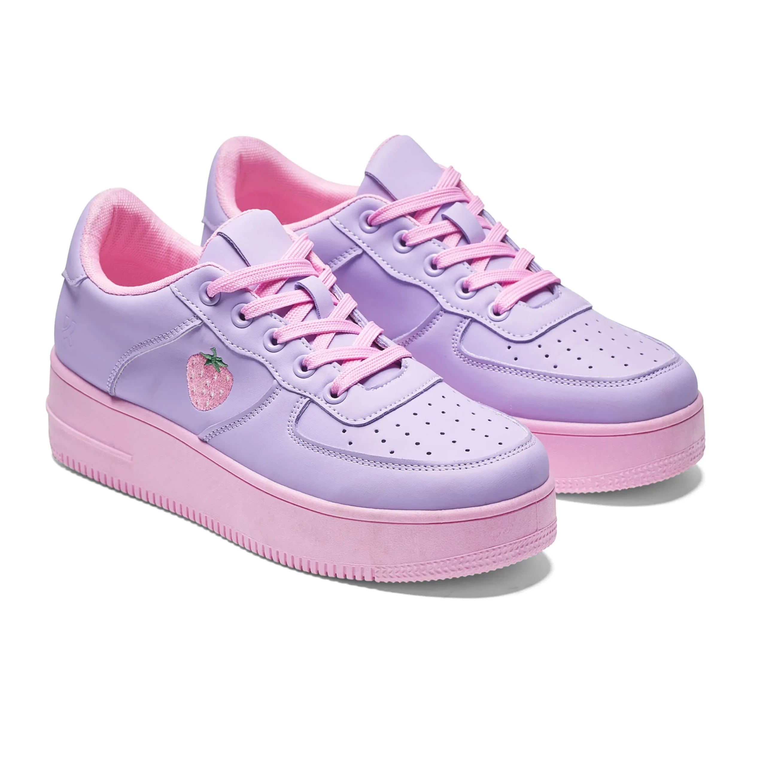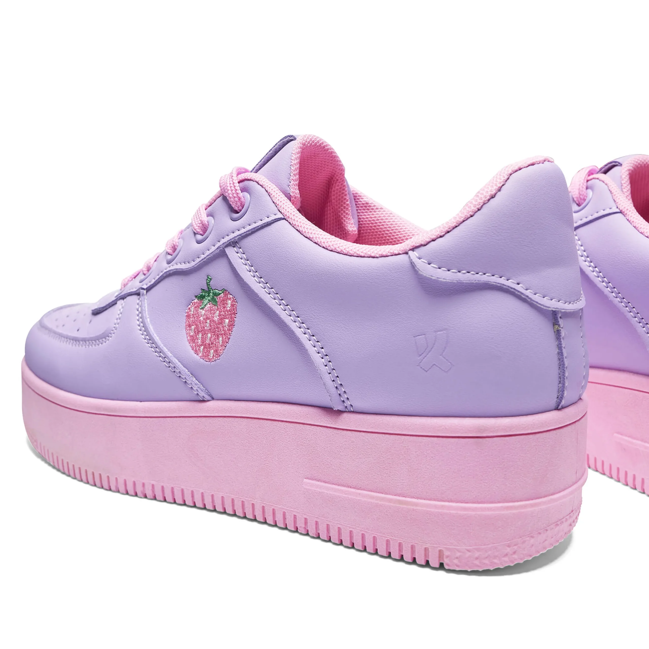 Walk around in these chunky trainers with a playful twist. The sweet strawberry embroidery adds a touch of fun to the vibrant purple and pink colors. With a lace-up design, these platform trainers will keep you stylish and comfortable all day long.