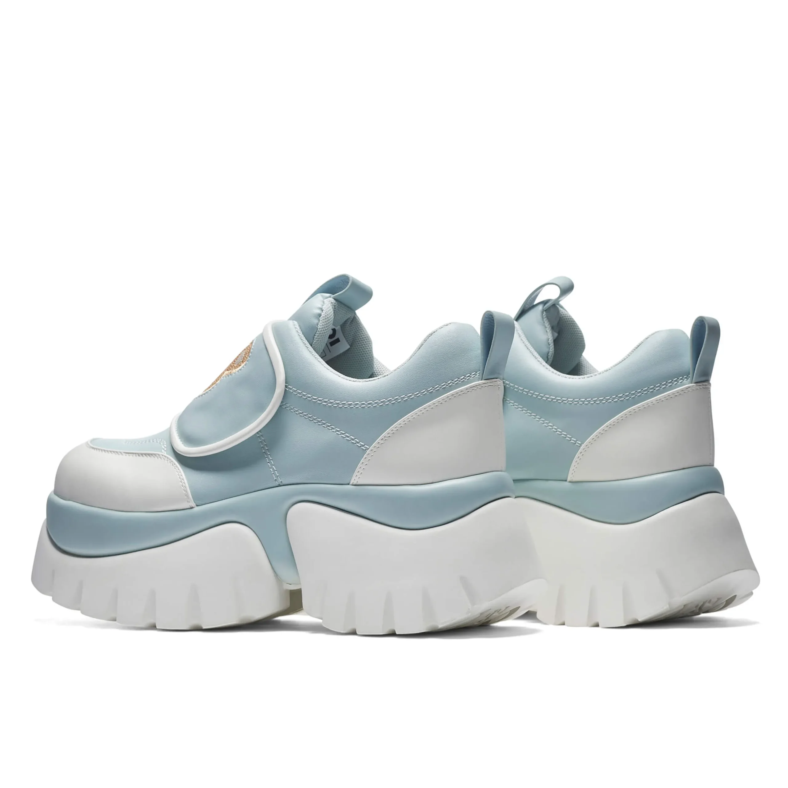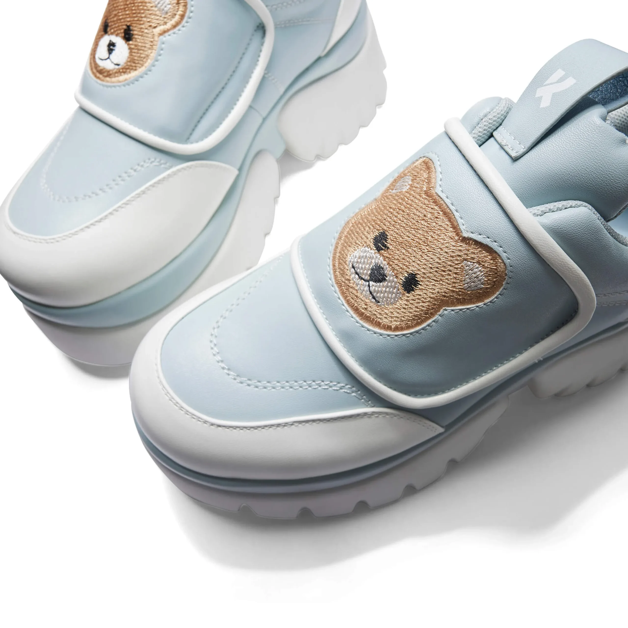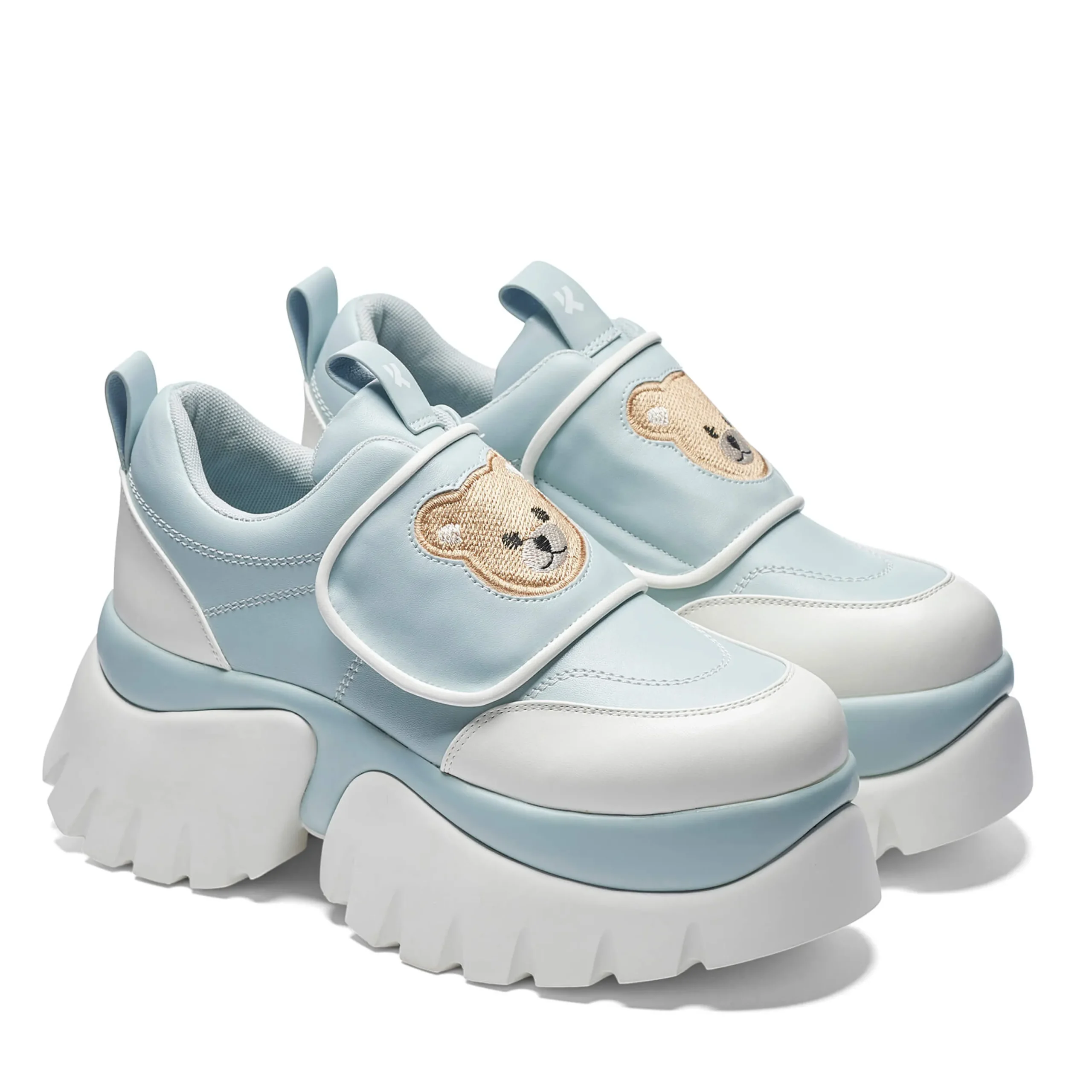Elevate your style with our Teddy Sura Blue Vilun Platform Trainers. These chunky platform trainers feature a playful teddy bear embroidery, adding a unique touch to your outfit. Their pastel blue color adds a pop of color, making them a must-have for any fashion-forward individual. Step into comfort and fashion with these coquette trainers.