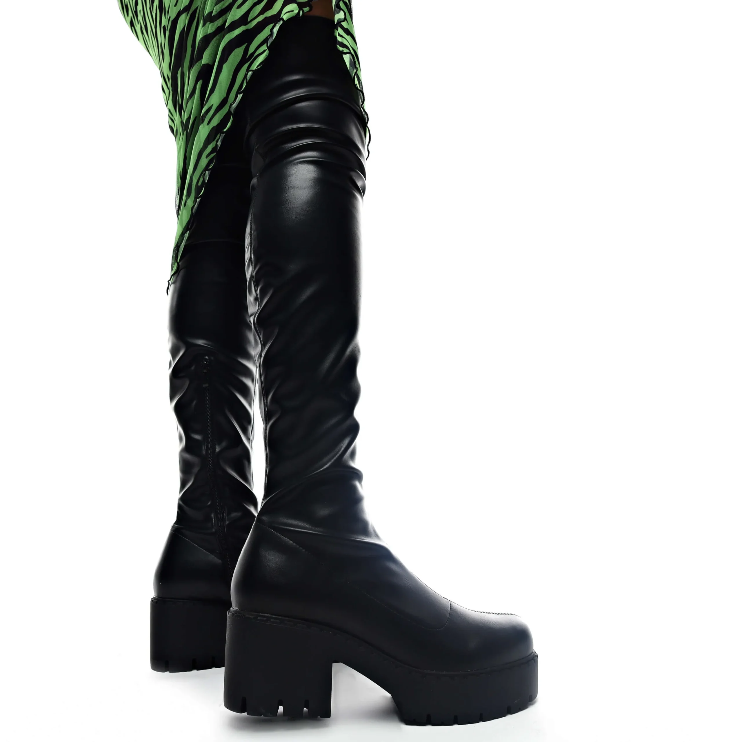 The Balanced UniFlex Plus Size Thigh High Boots was designed with that in mind ‘Balance’ we have fused together our iconic SWITCH sole with the UniFlex material offering a perfect balance of style and comfort making it the perfect pair for elevating any look, if you’re looking for something just a bit more platform and heel then our ’24/7′ option, which still has functionality in mind, then the Balanced UniFlex Boots are the right option for you!