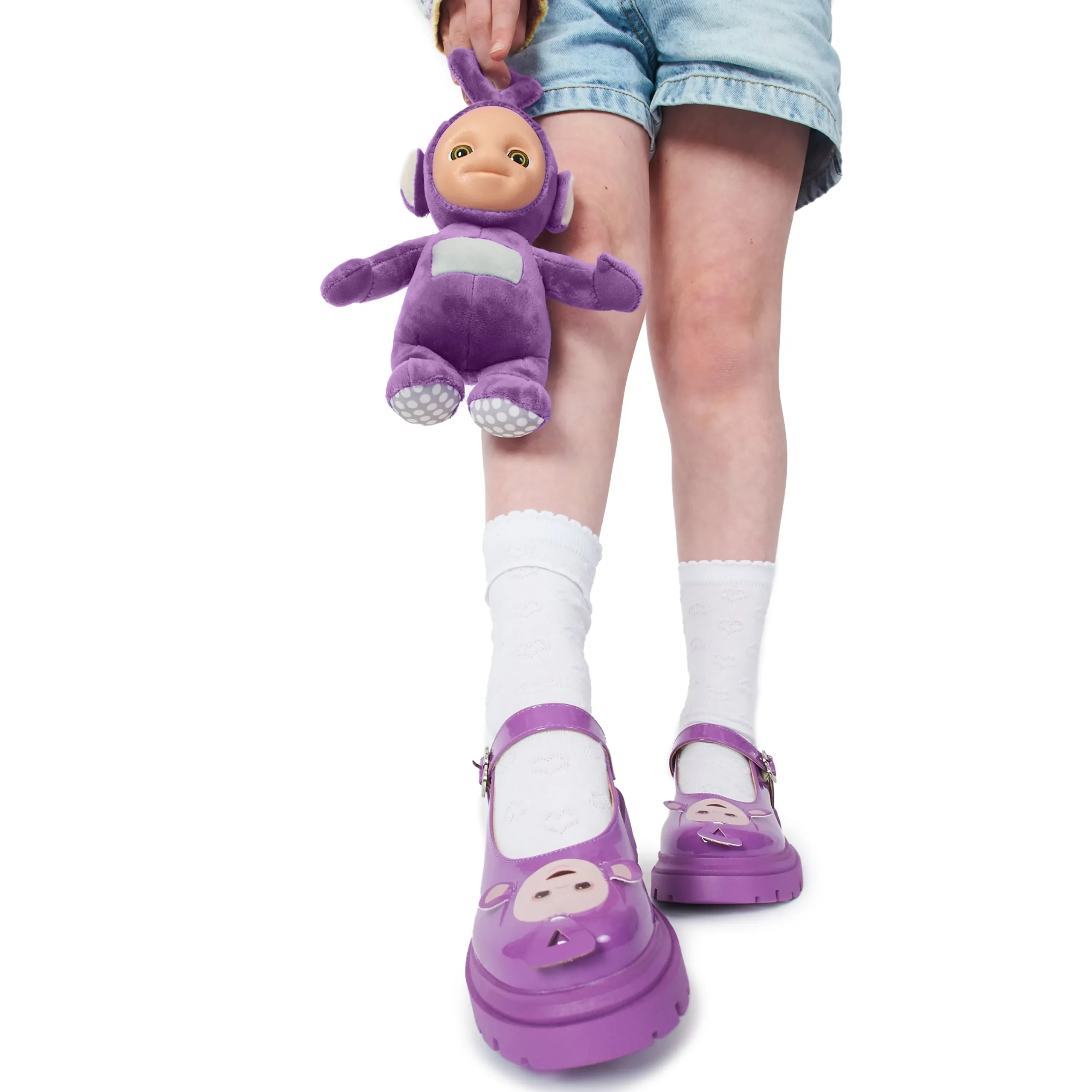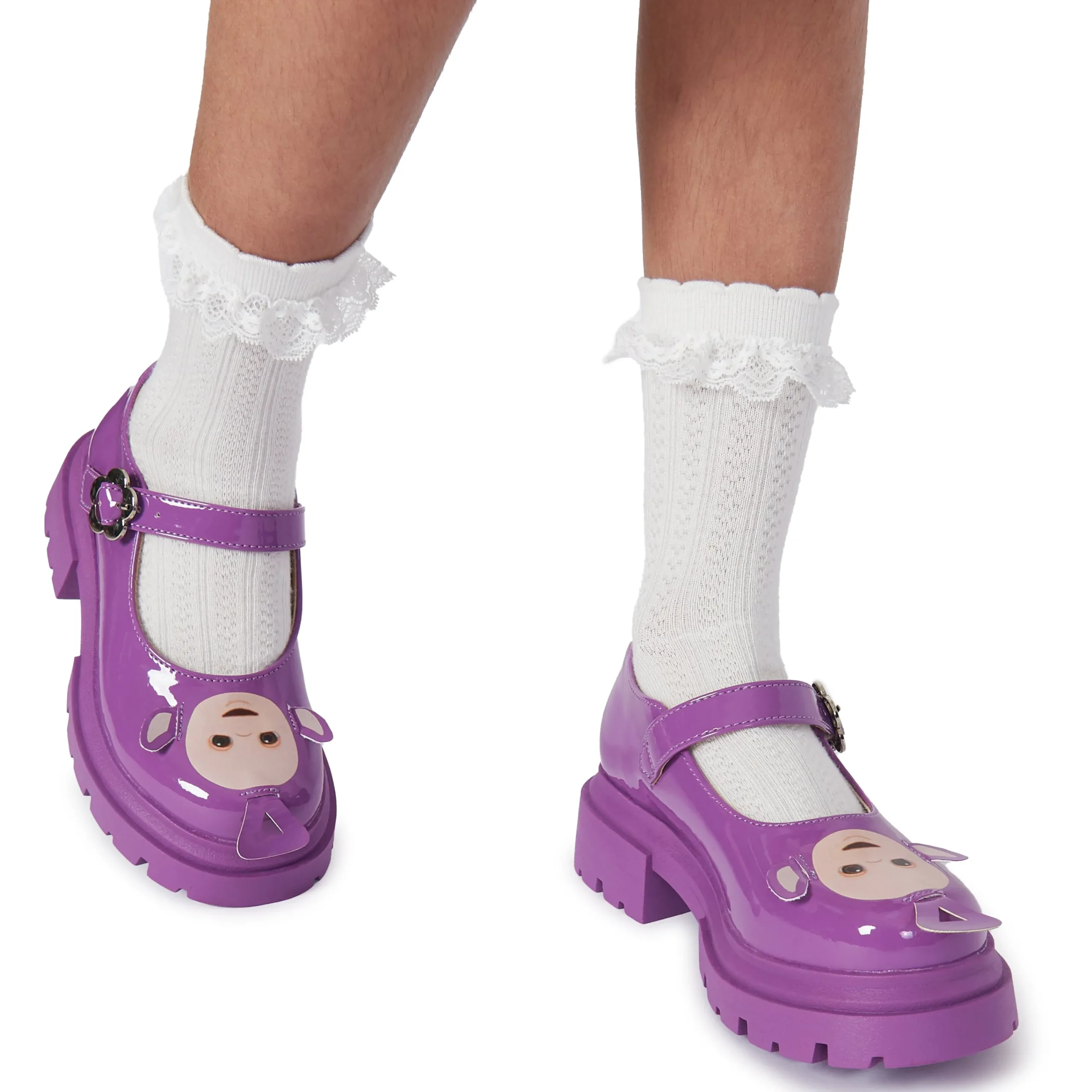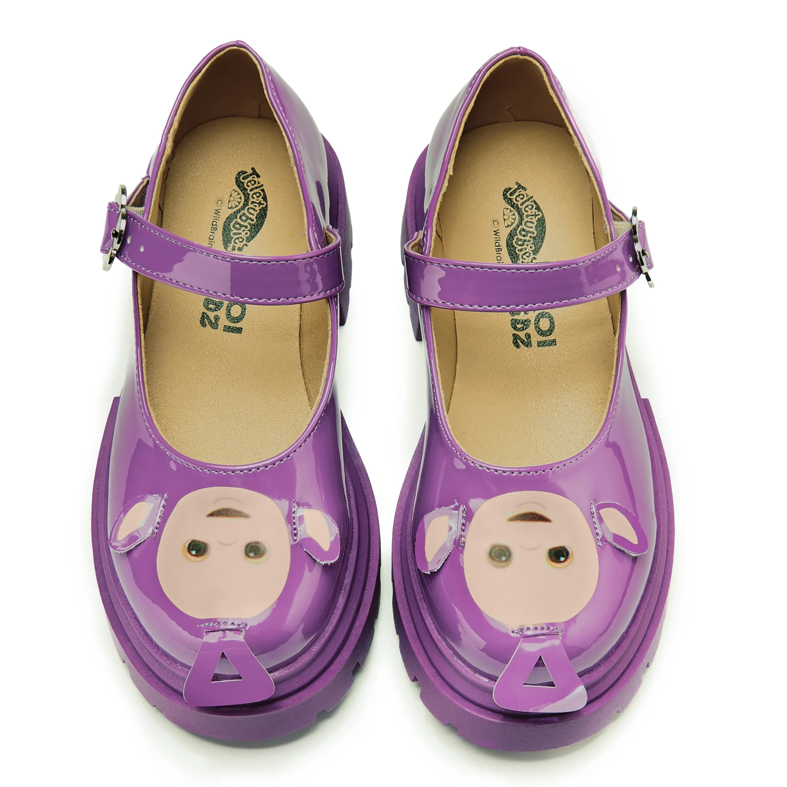 Step out in whimsical style with Tinky Winky Teletubbies Kidz Mary Janes! These playful purple shoes feature an adjustable strap for a comfortable fit and the lovable face of Tinky Winky himself. Perfect for little ones who love to have fun (and stand out).