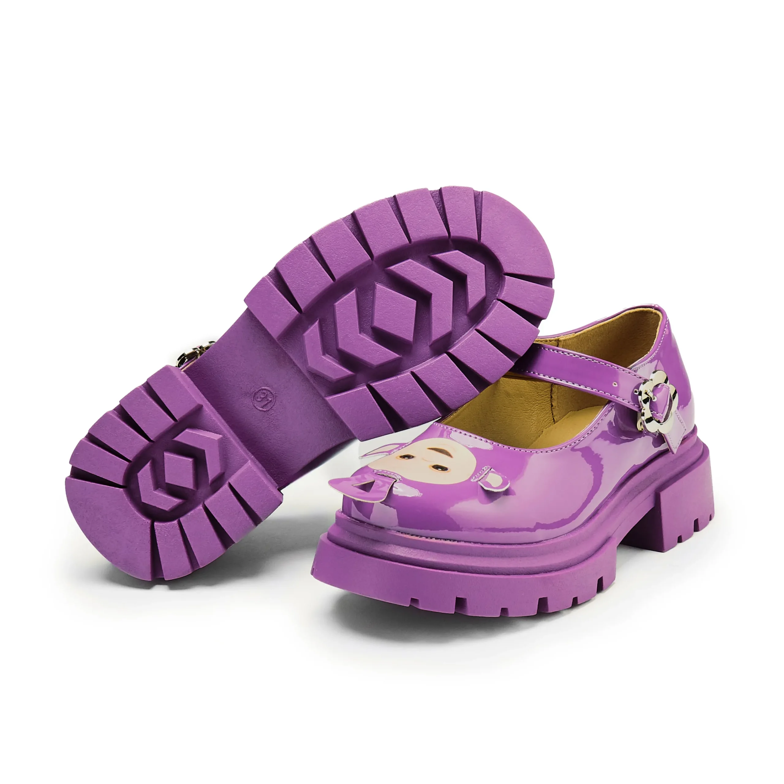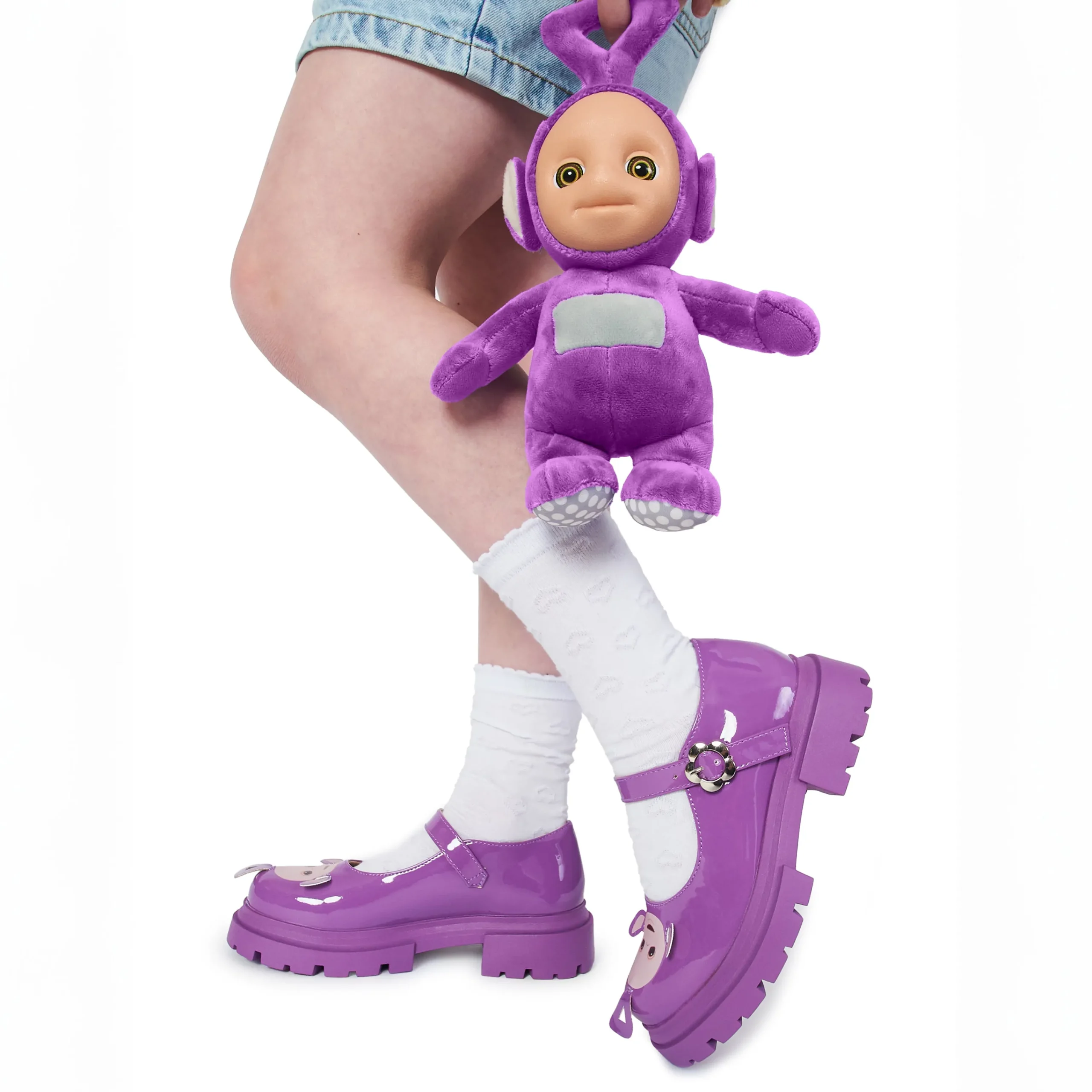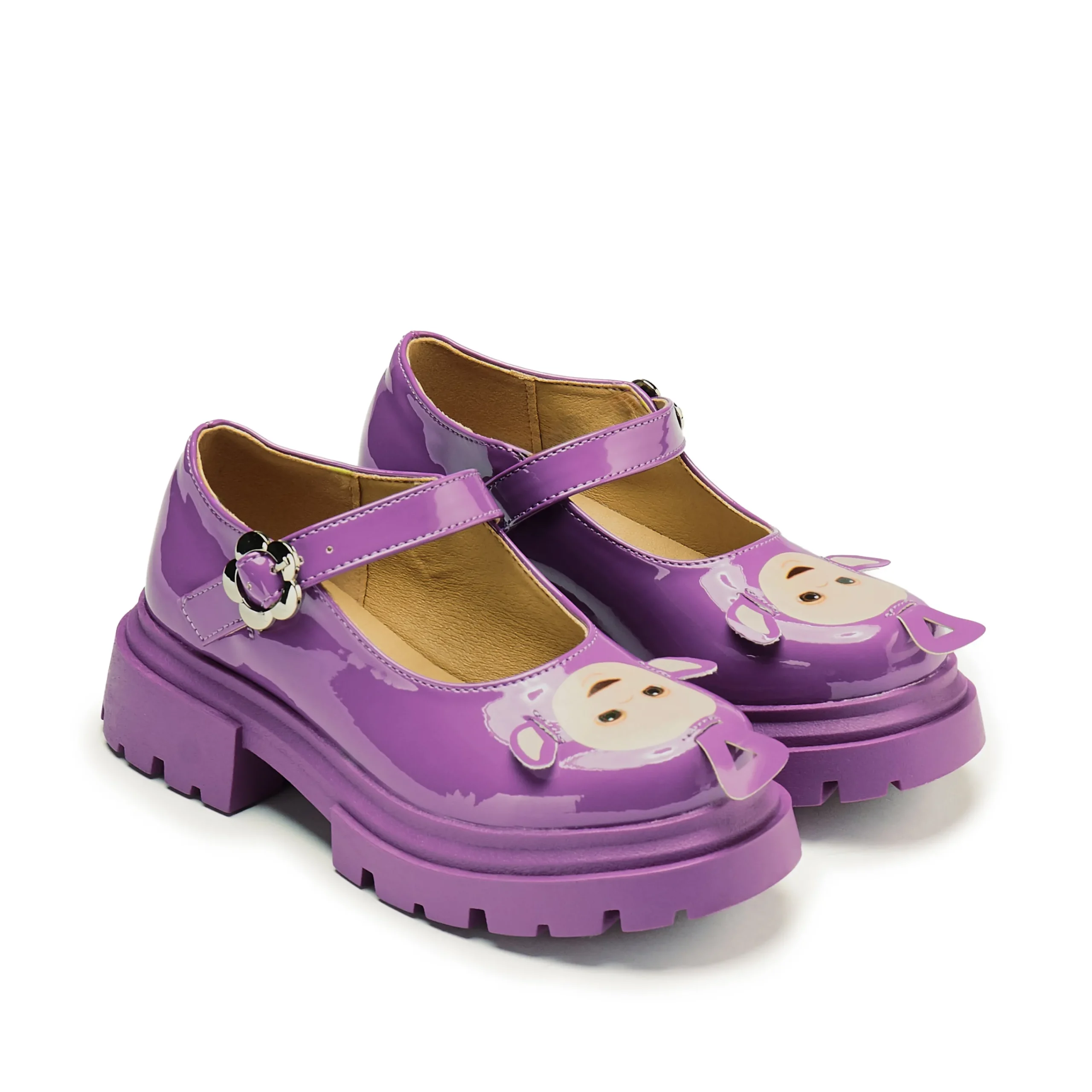 Step out in whimsical style with Tinky Winky Teletubbies Kidz Mary Janes! These playful purple shoes feature an adjustable strap for a comfortable fit and the lovable face of Tinky Winky himself. Perfect for little ones who love to have fun (and stand out).