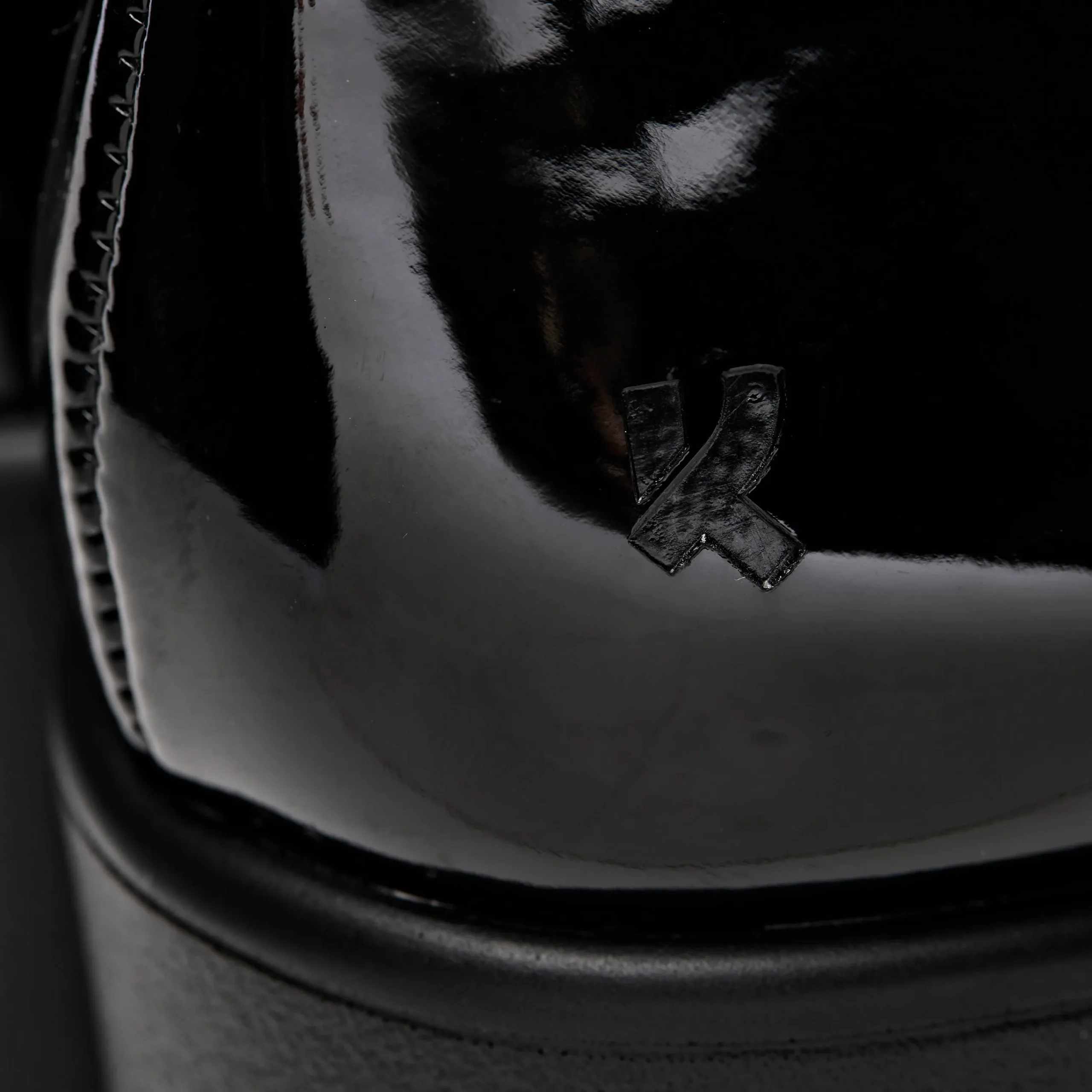 These Vegan Black Patent Single Strap Chunky Platform Mary Janes have been crafted from a faux leather patent offering a sleek and mirror like finish making these smooth to the touch. The padded insole and matching PU lining combined make these a pair you can wear comfortably throughout the day.