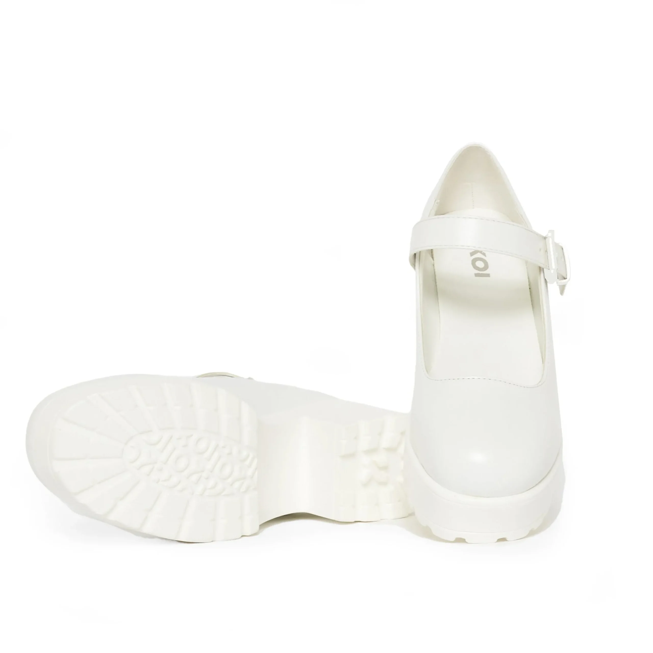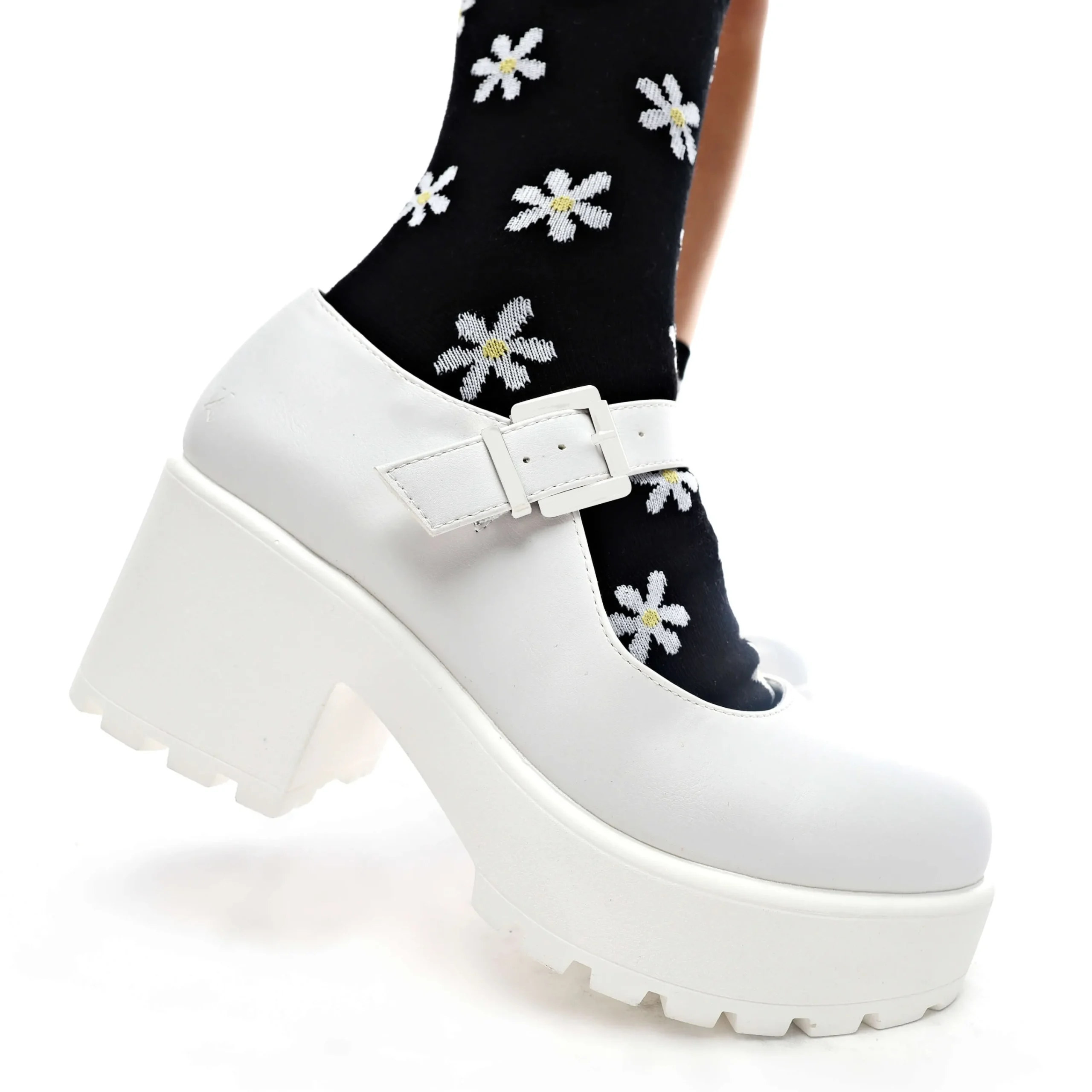 Step up your shoe game with the Tira Mary Jane Shoes in the ‘White Washout Edition’. These white mary janes feature a stylish buckle and strap, a comfortable low heel, and a chunky platform for added height. Perfect for adding some fun to any outfit. (Feet will thank you.)