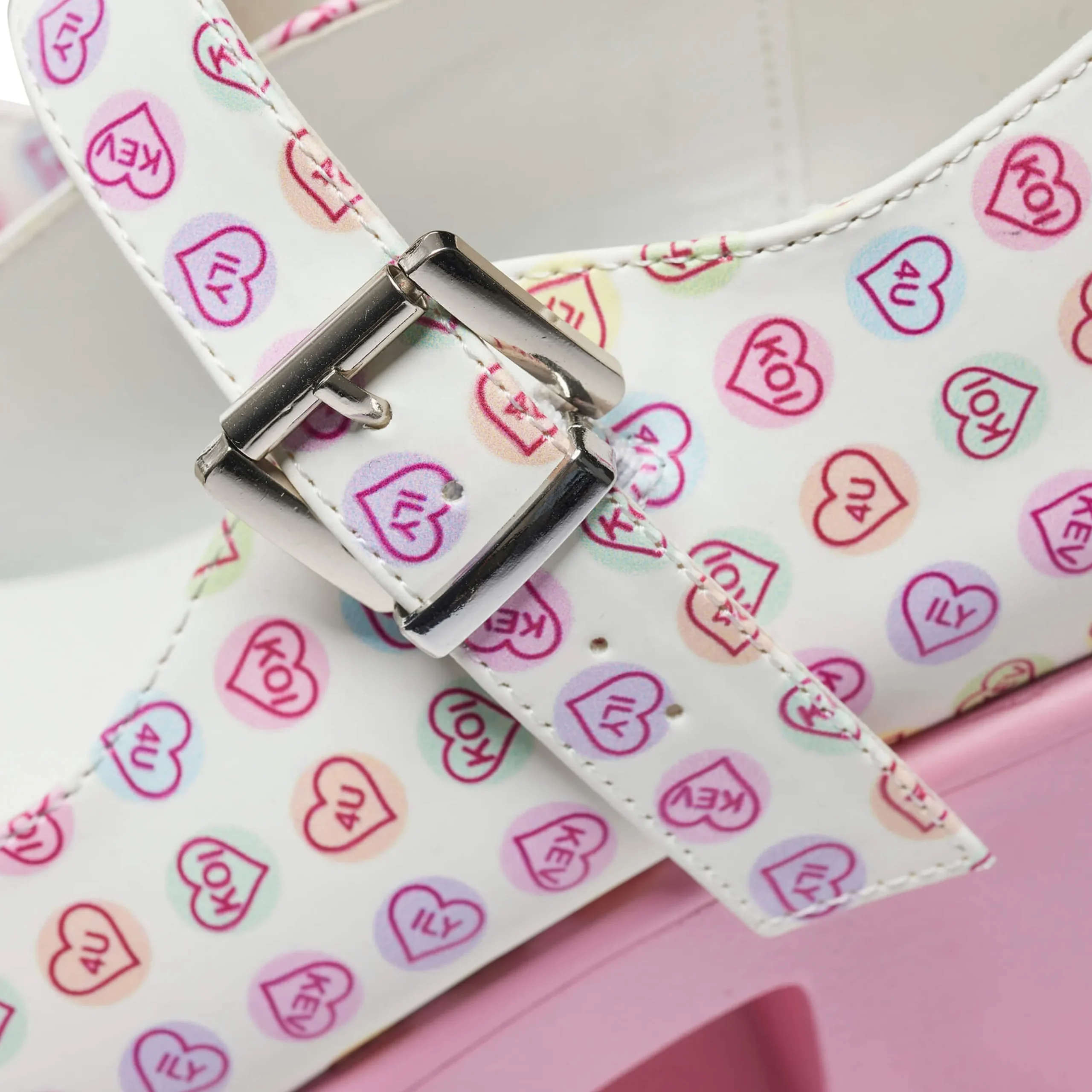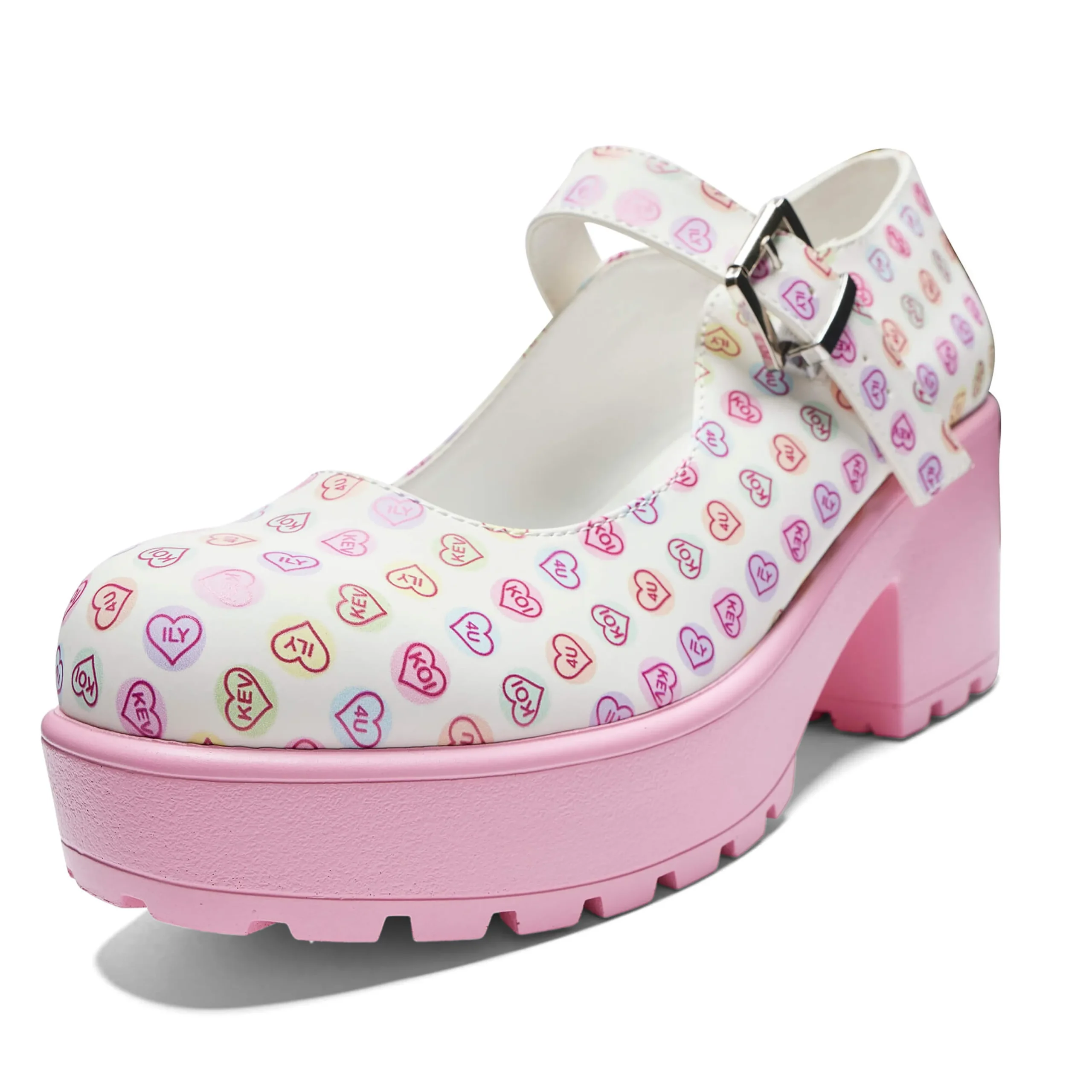 The Tira Mary Janes ‘Koi Love Hearts Edition’ are the perfect combination of style and comfort. With their classic mary jane design, chunky platform, and adorable heart print, these shoes are sure to make a statement. The buckle adds an extra touch of charm while also providing a secure fit. Elevate your shoe game with these fashionable and functional mary janes.