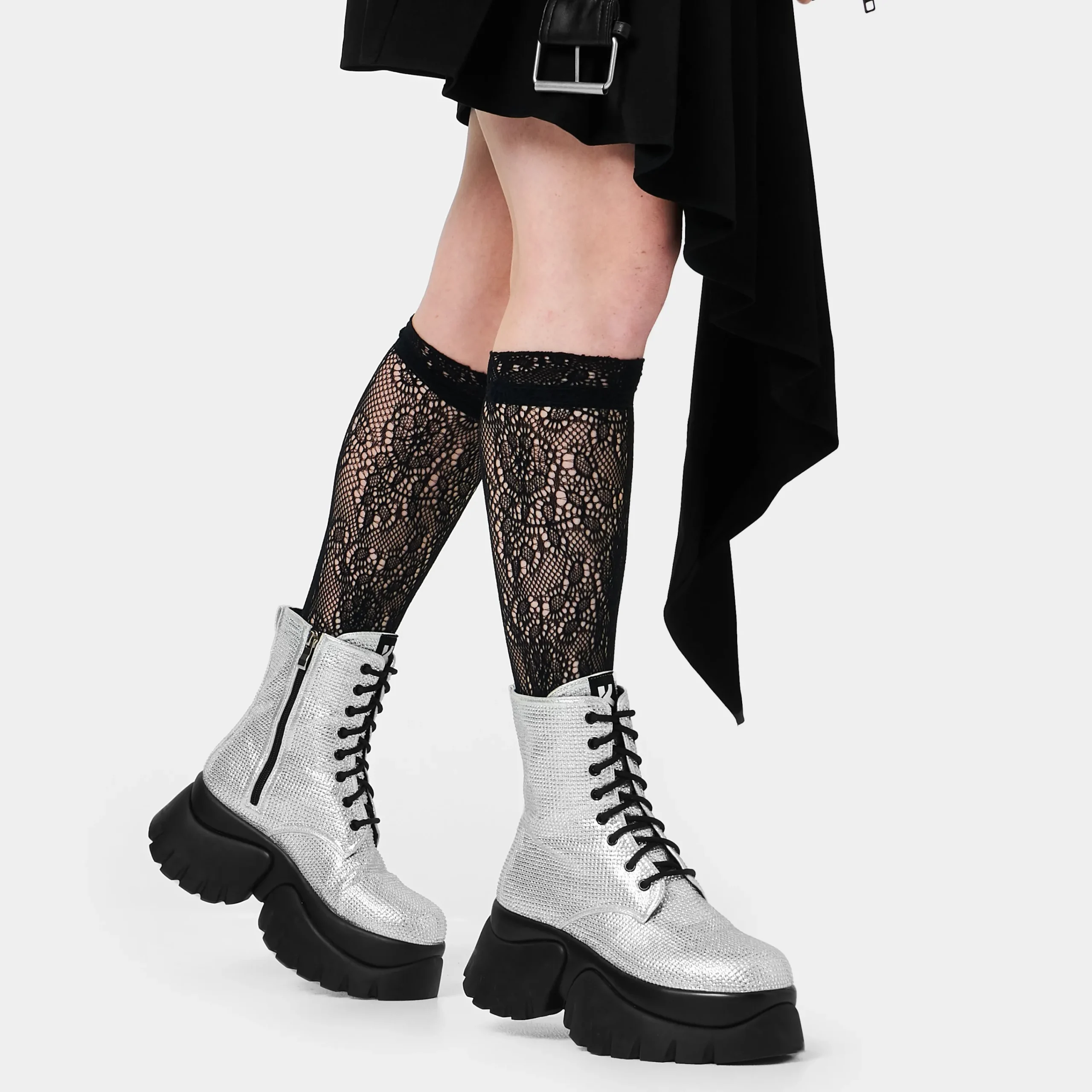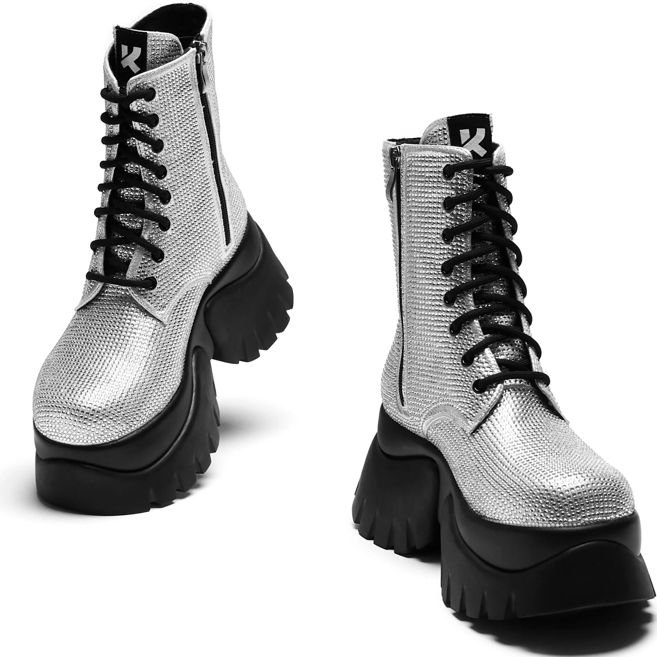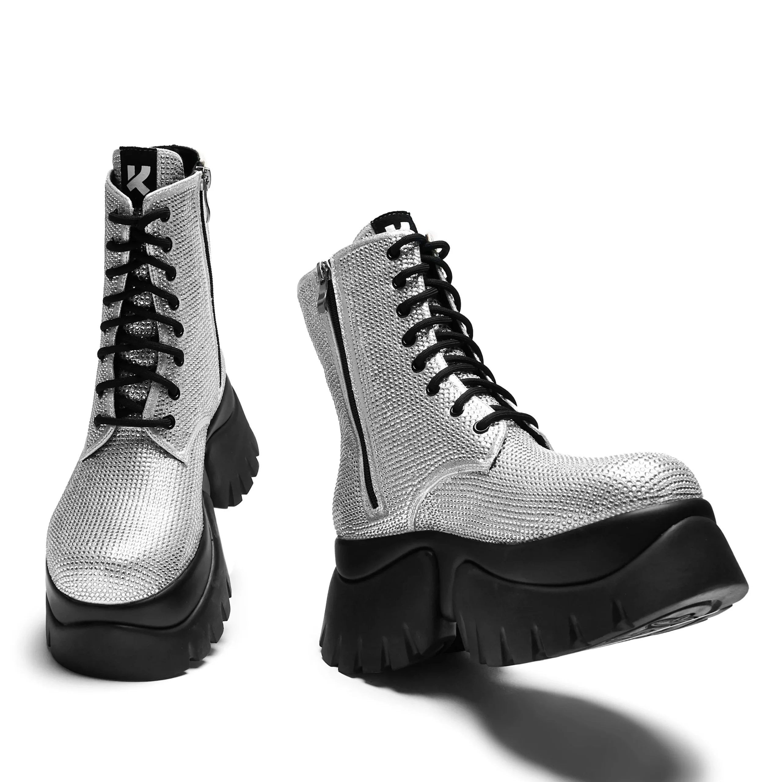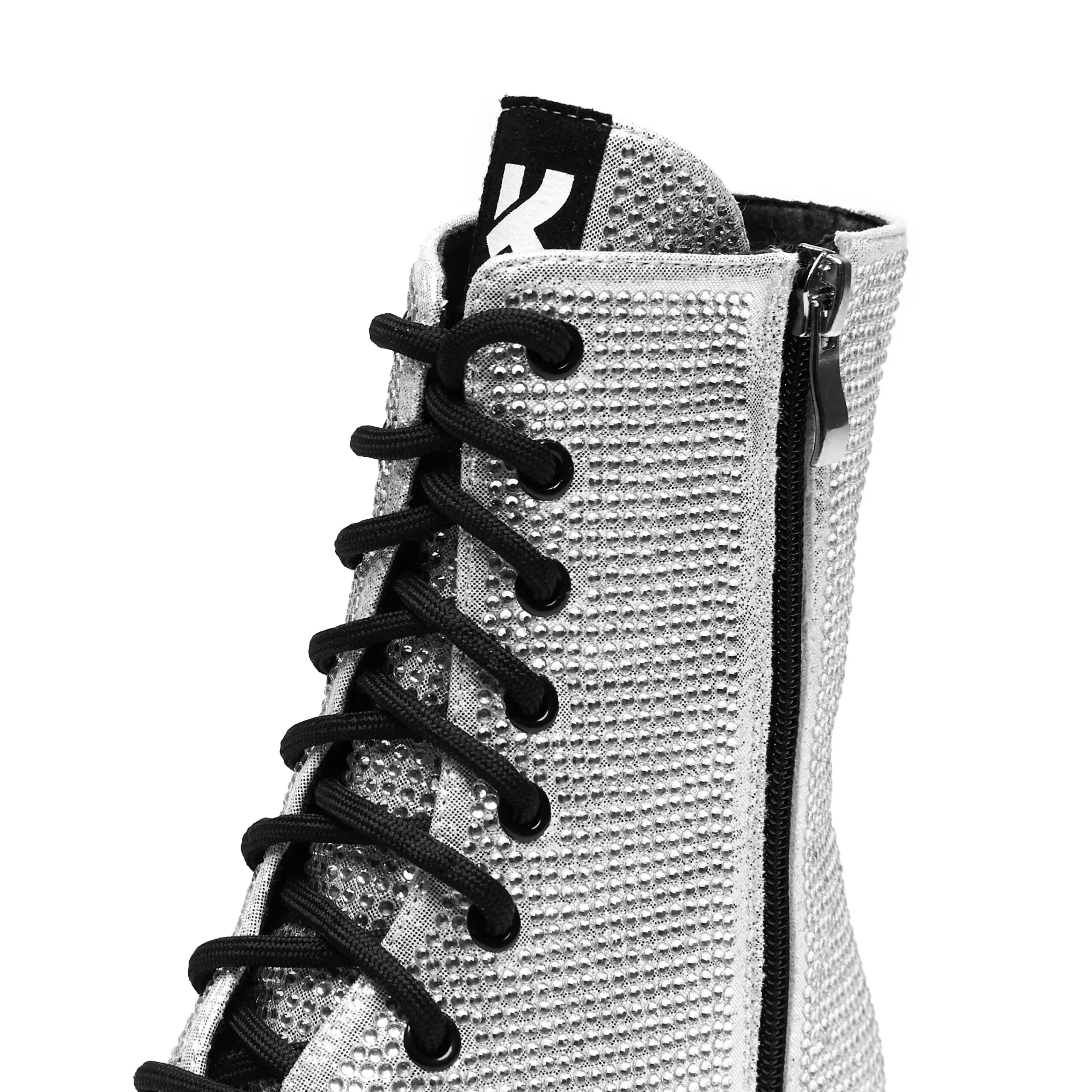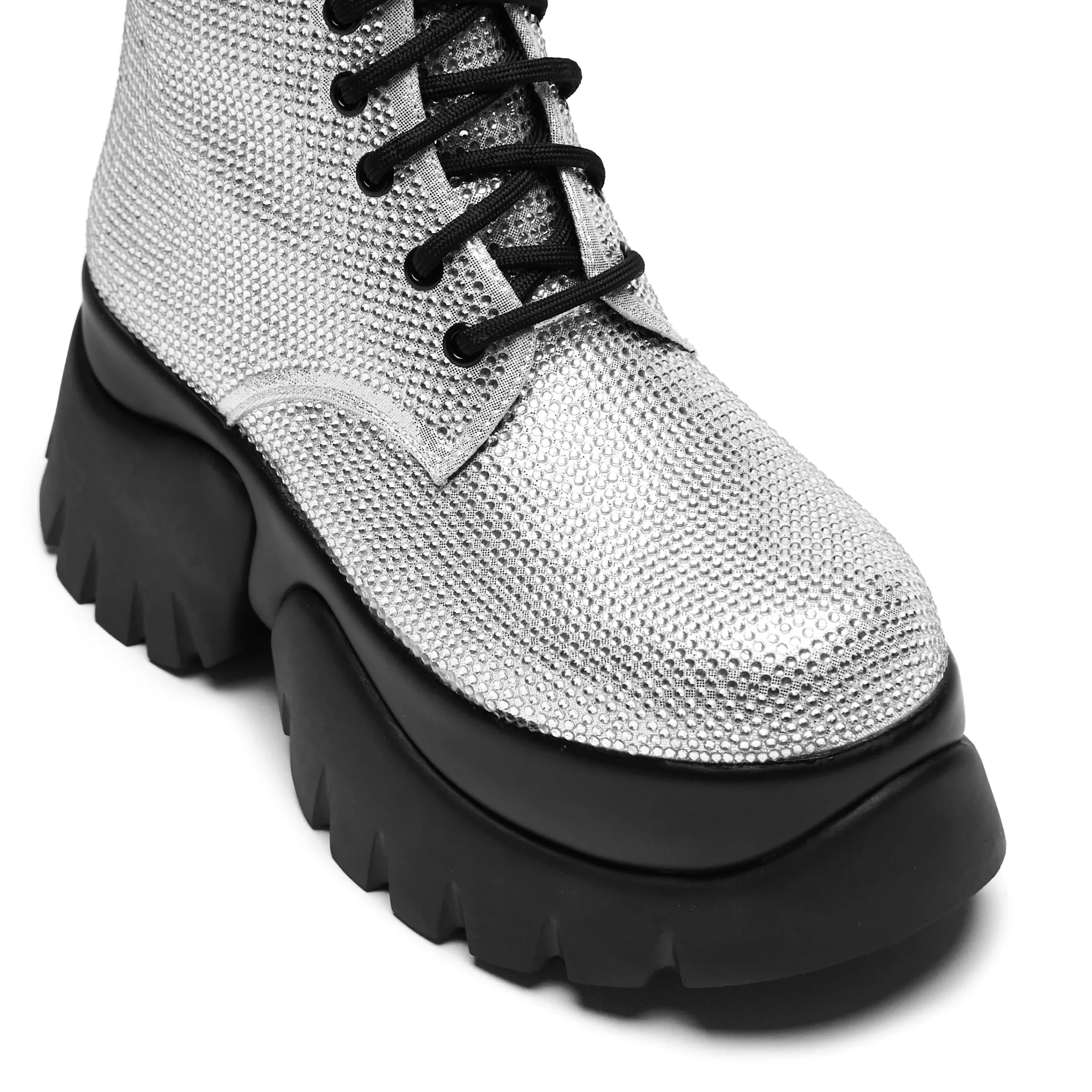 “It’s like diamonds… you’re beautiful” These iconic Twilight boots sit on our in-house ‘Monster’ platform sole, dripping with diamonds to mimic the Twilight vampires iconic sparkly skin. Rhinestone hotfix fabric all over the whole upper, contrasting with the black eyelets and laces. Simple but bright with a big impact, if you go out in the sunlight (or any light) this material will sparkle like crazy so you can shine like a 104 year old vampire.