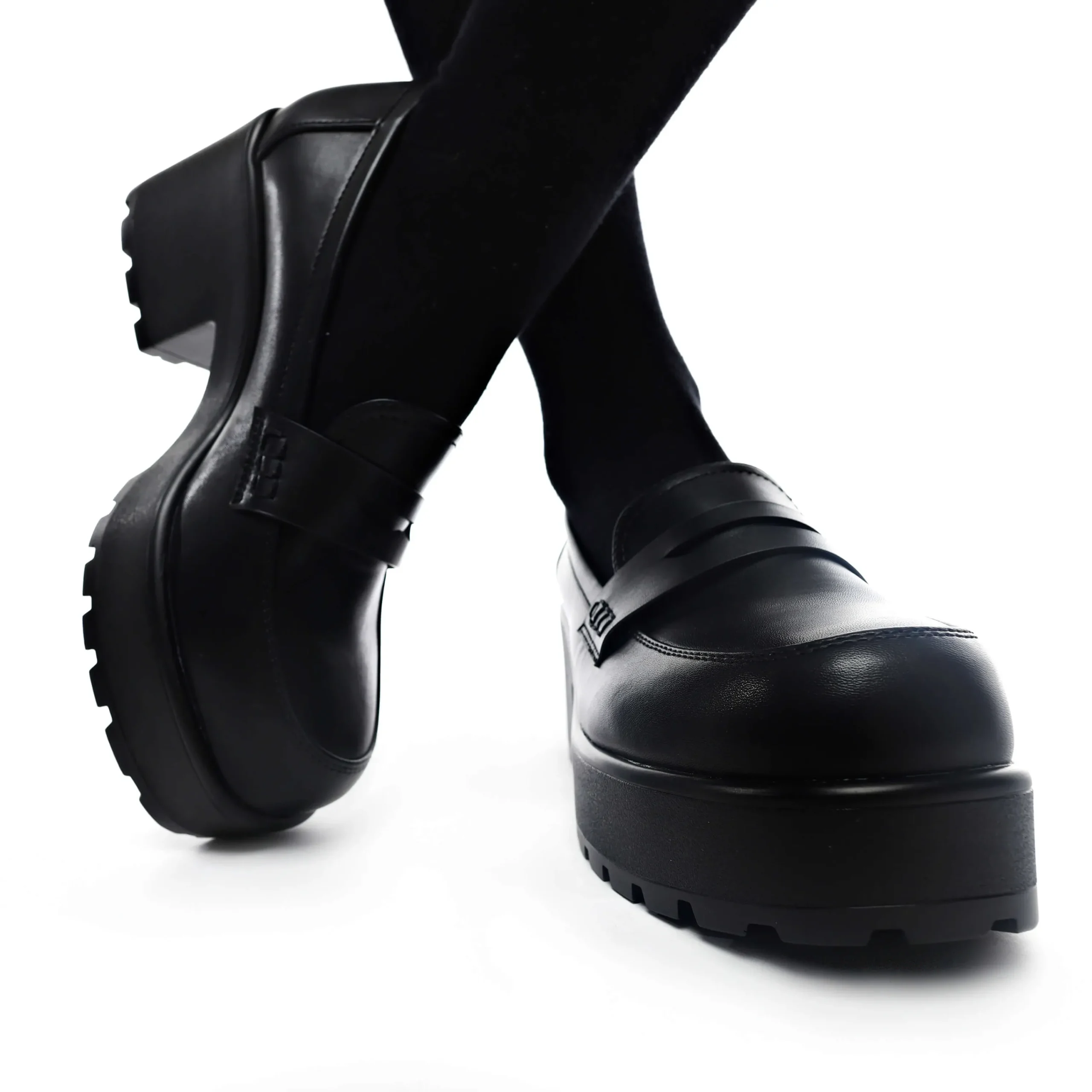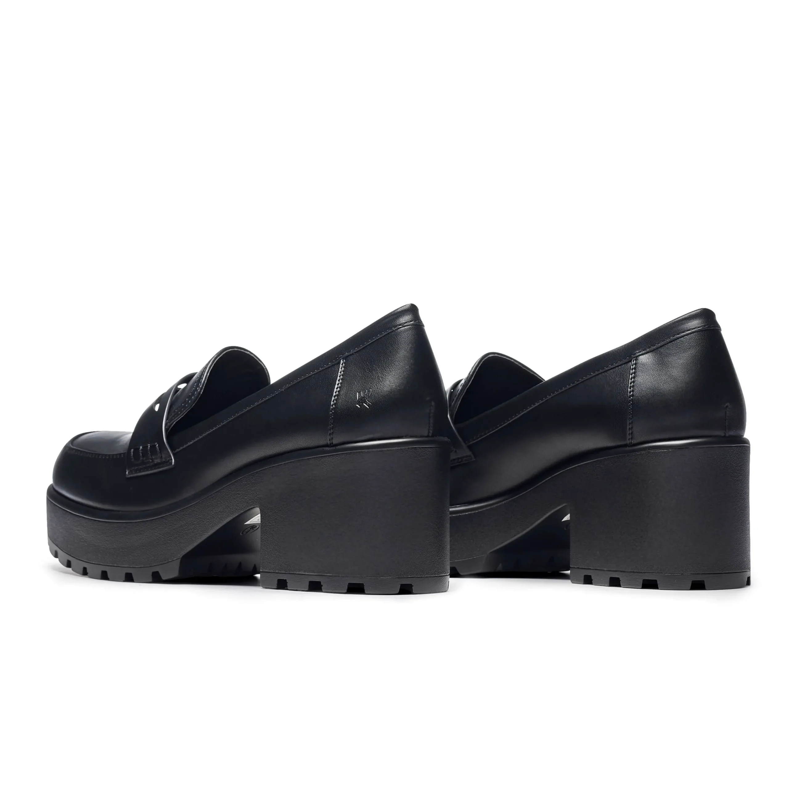Classic black shoes turned cool, in true Koi Footwear style. These black vegan leather chunky heels are an absolute wardrobe staple – get ready to wear these to the office and straight to the party! The versatility is insane…goth meets librarian meets back to school. Everyone takes a different vibe from these, but one thing that’s certain is that you’ll be unstoppable with these loafer-style platforms.
